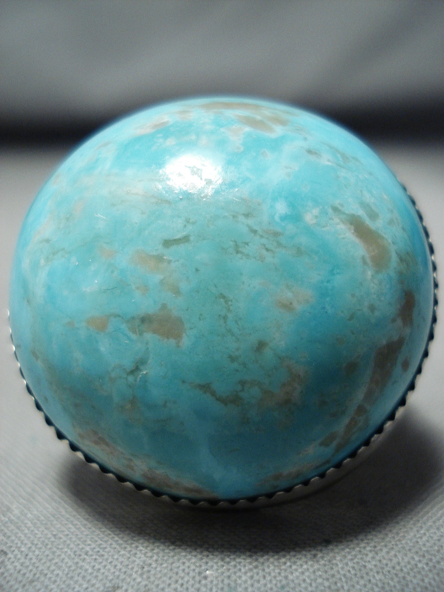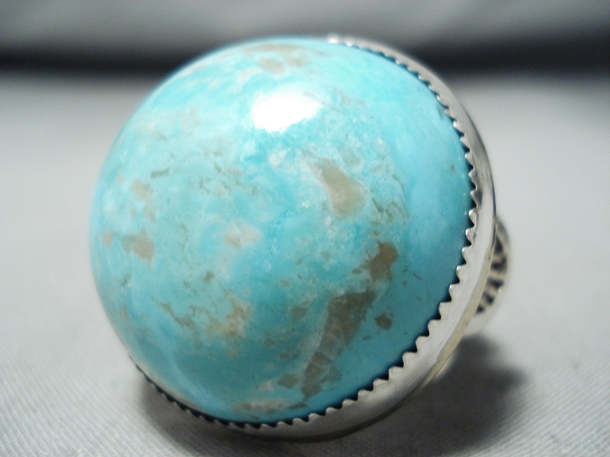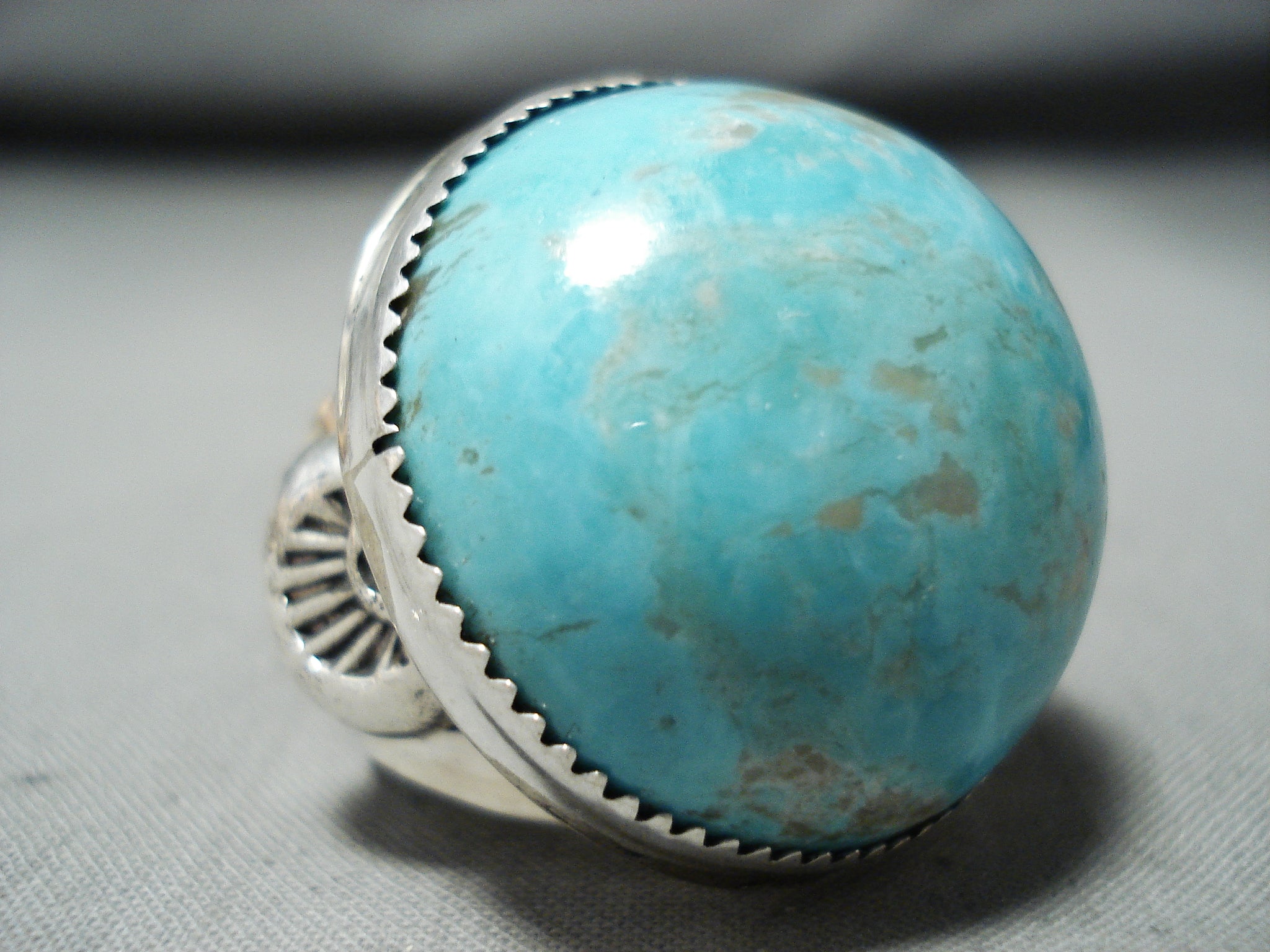 Huge Bulbous Domed Native American Navajo Pilot Mountain Turquoise Sterling Silver Ring