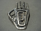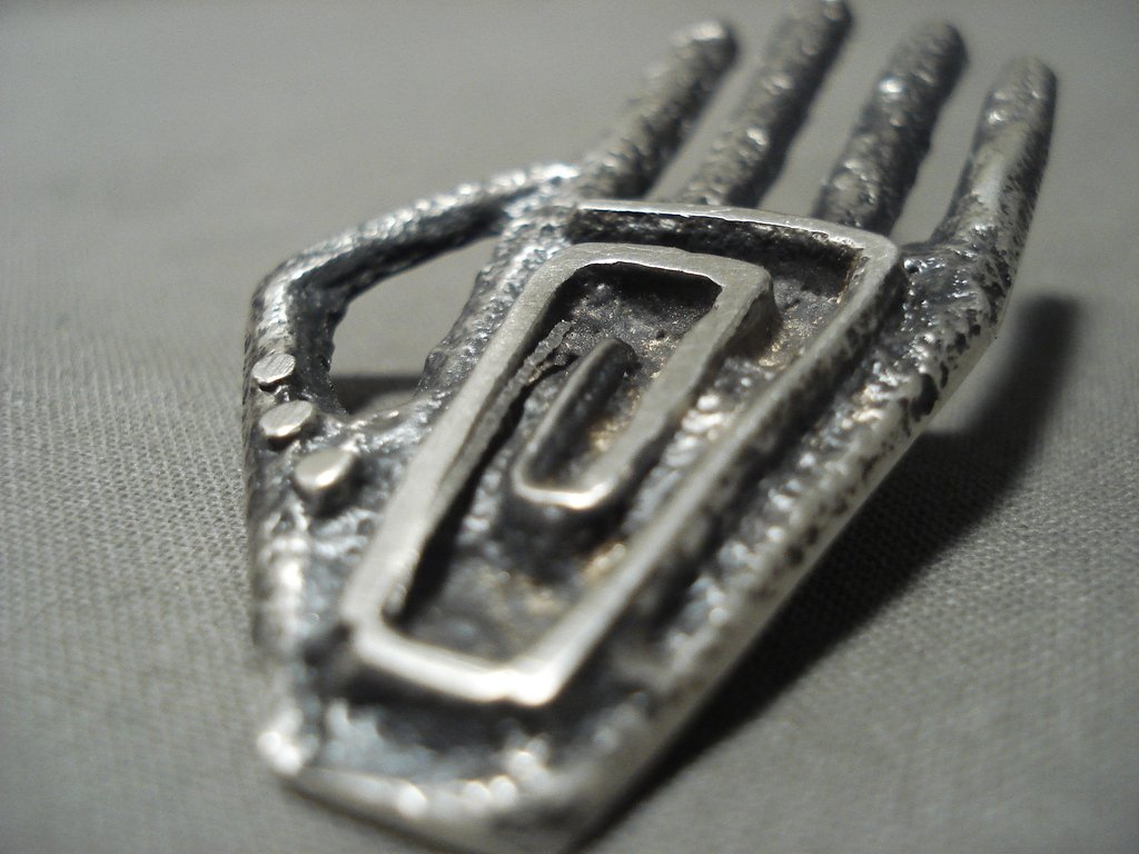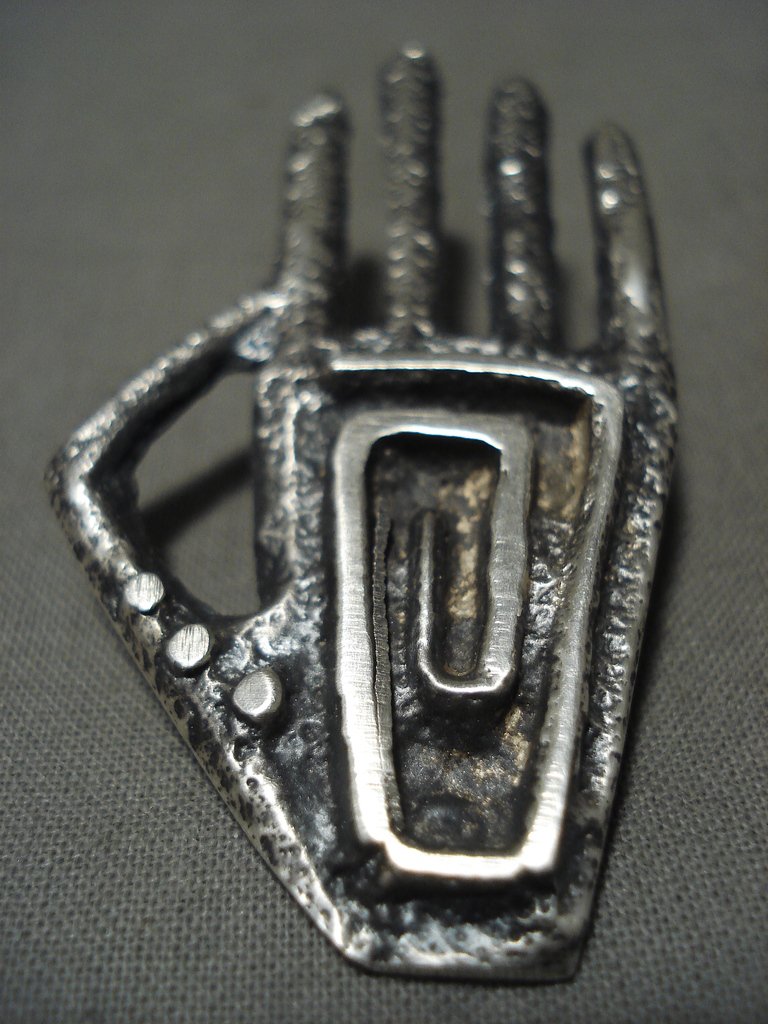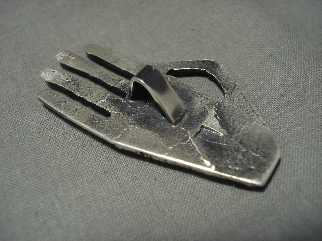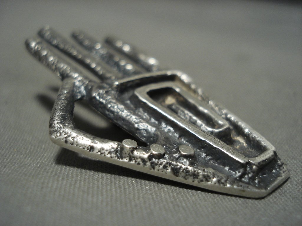 Huge 'Charles Loloma Style' Geometric Hand Native American Jewelry Silver Tufa Casted Native American Jewelry Silver Pendant