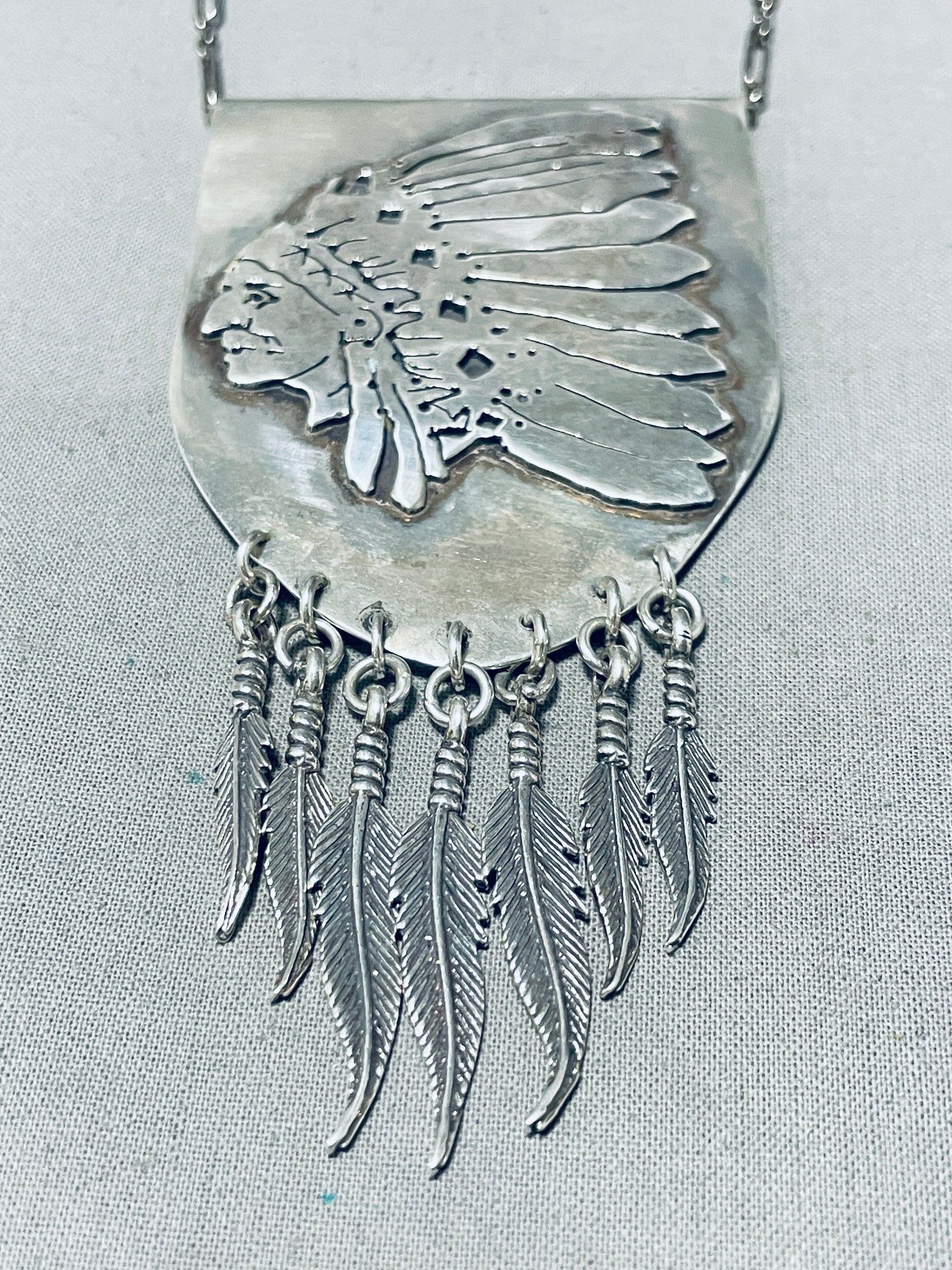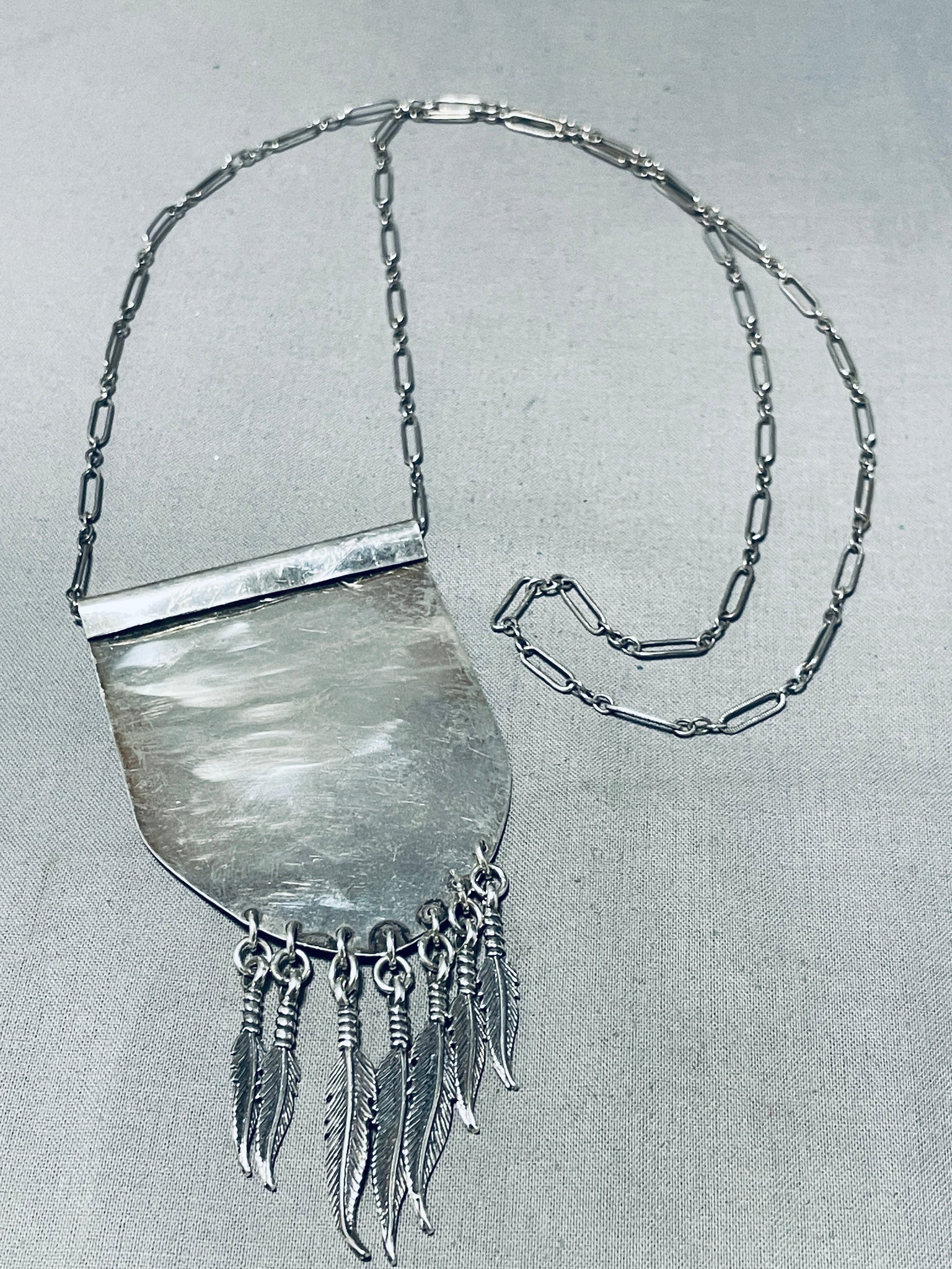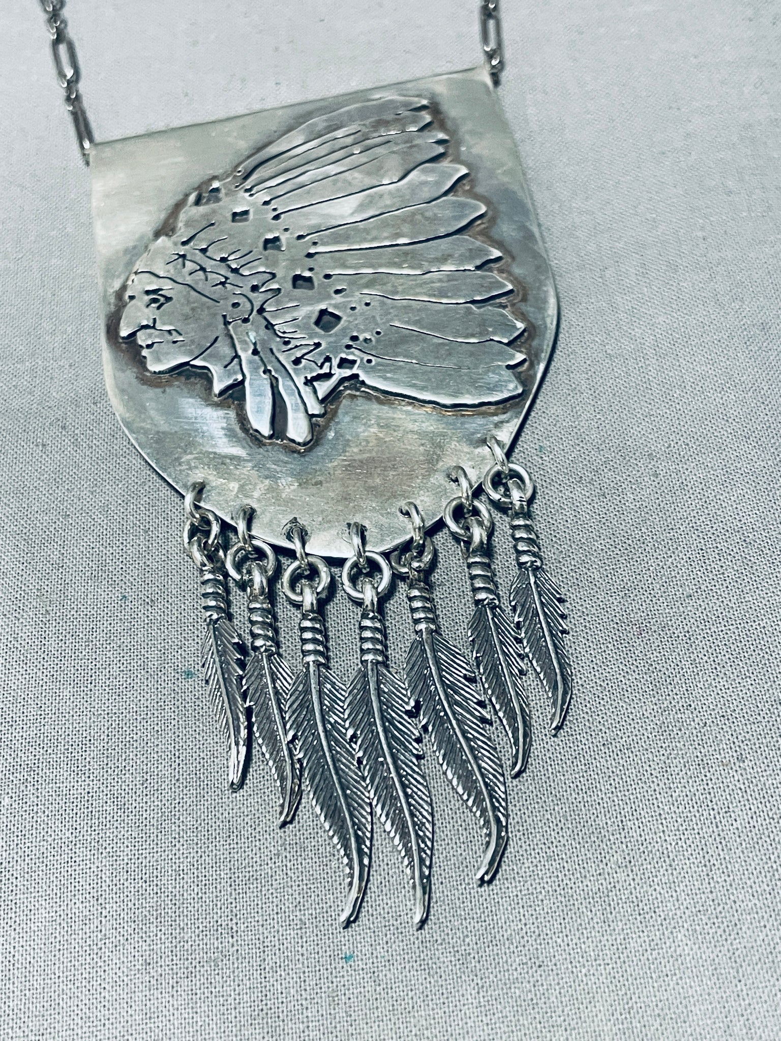 Huge Chief Vintage Native American Navajo Sterling Silver Feather Necklace Wow!!