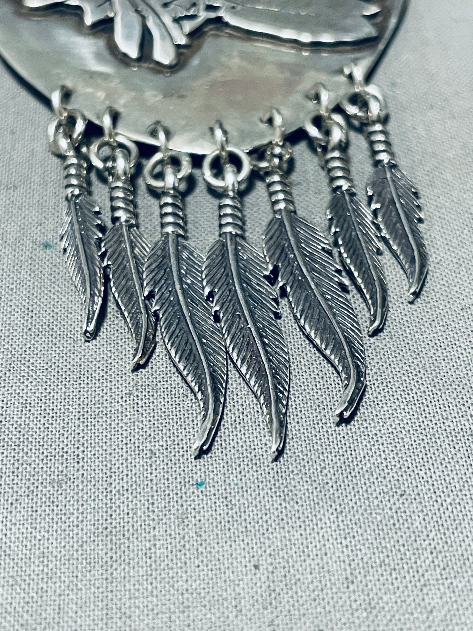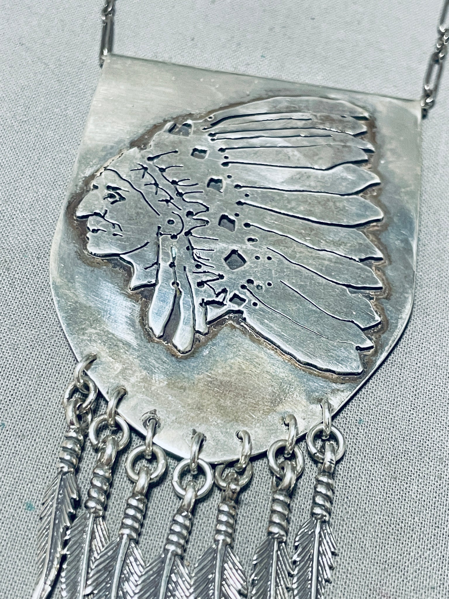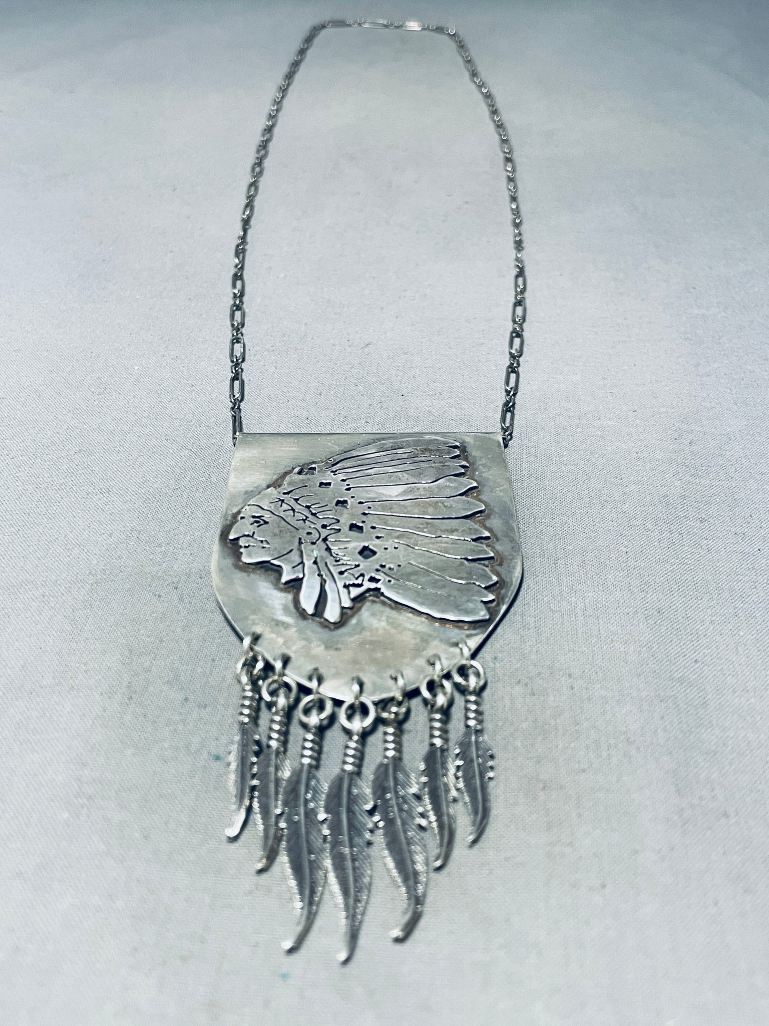 Huge Chief Vintage Native American Navajo Sterling Silver Feather Necklace Wow!!