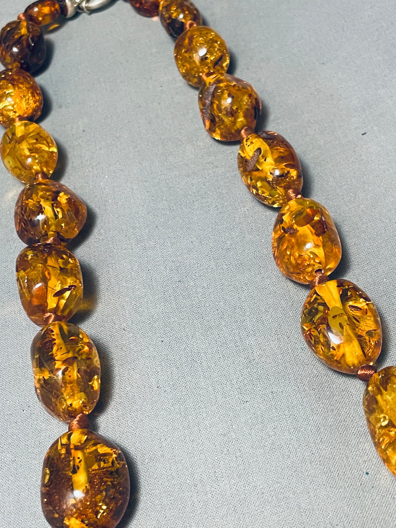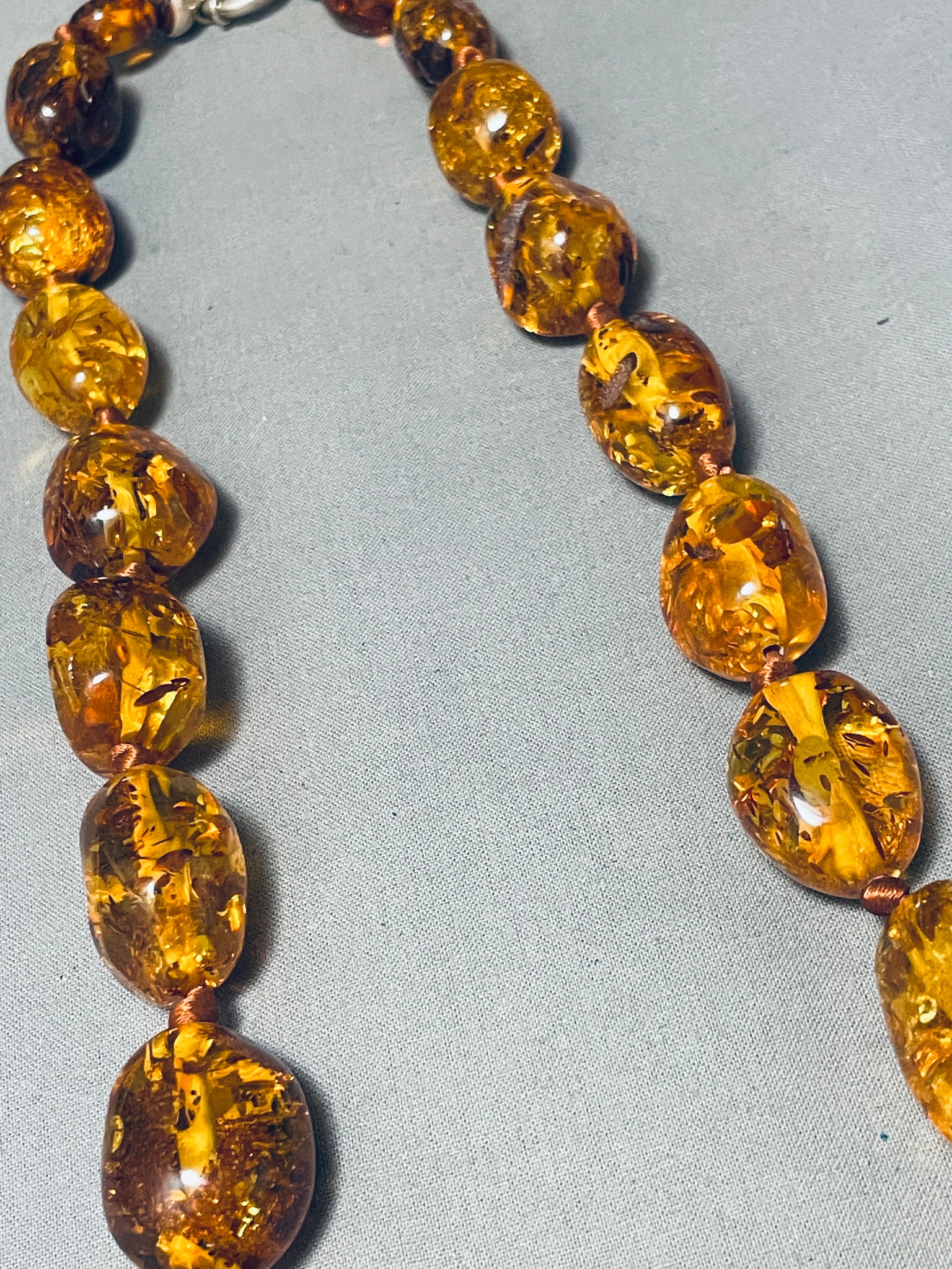 Huge Chunky Vintage Native American Navajo Ancient Tree Sap Sterling Silver Necklace