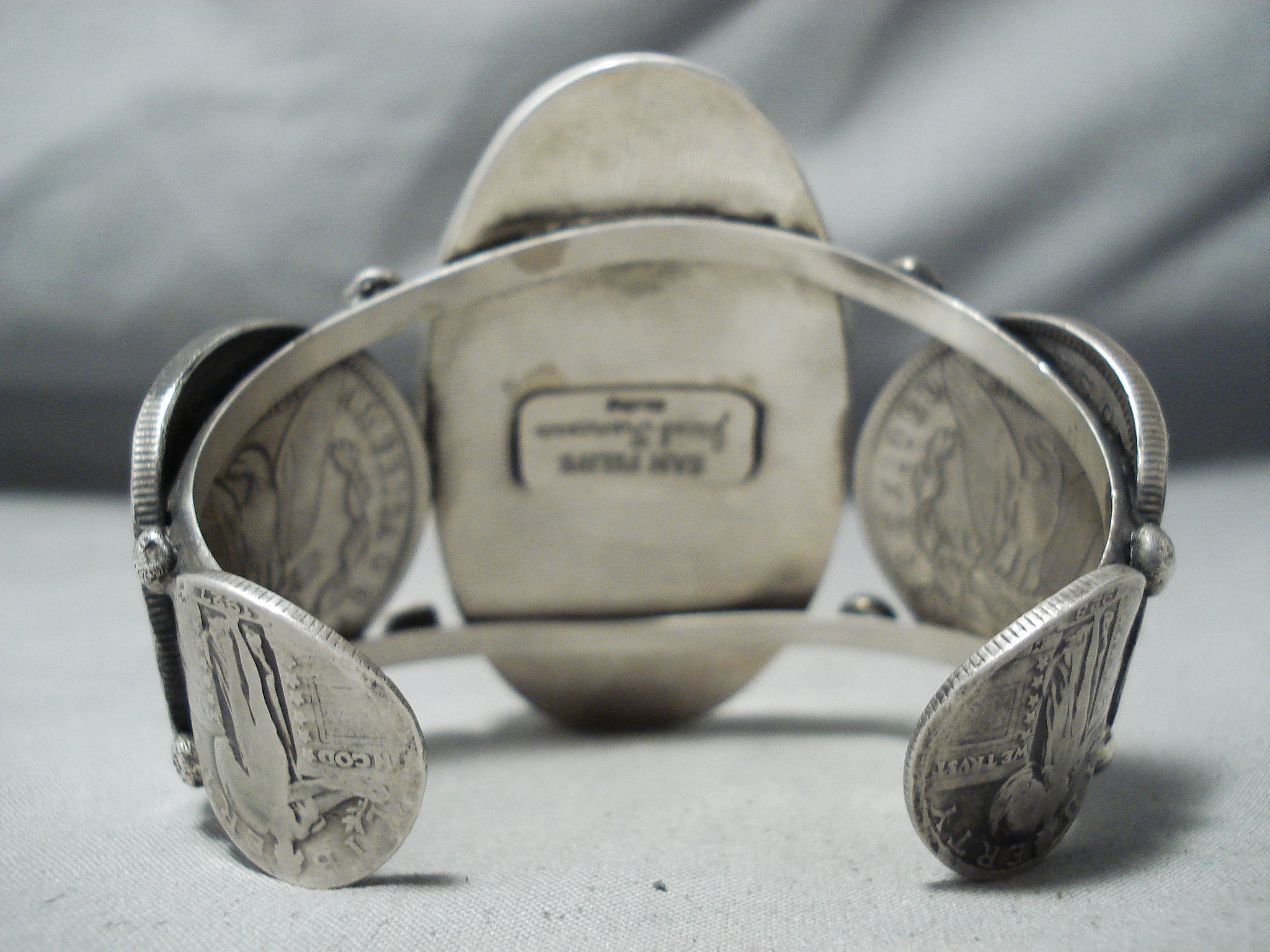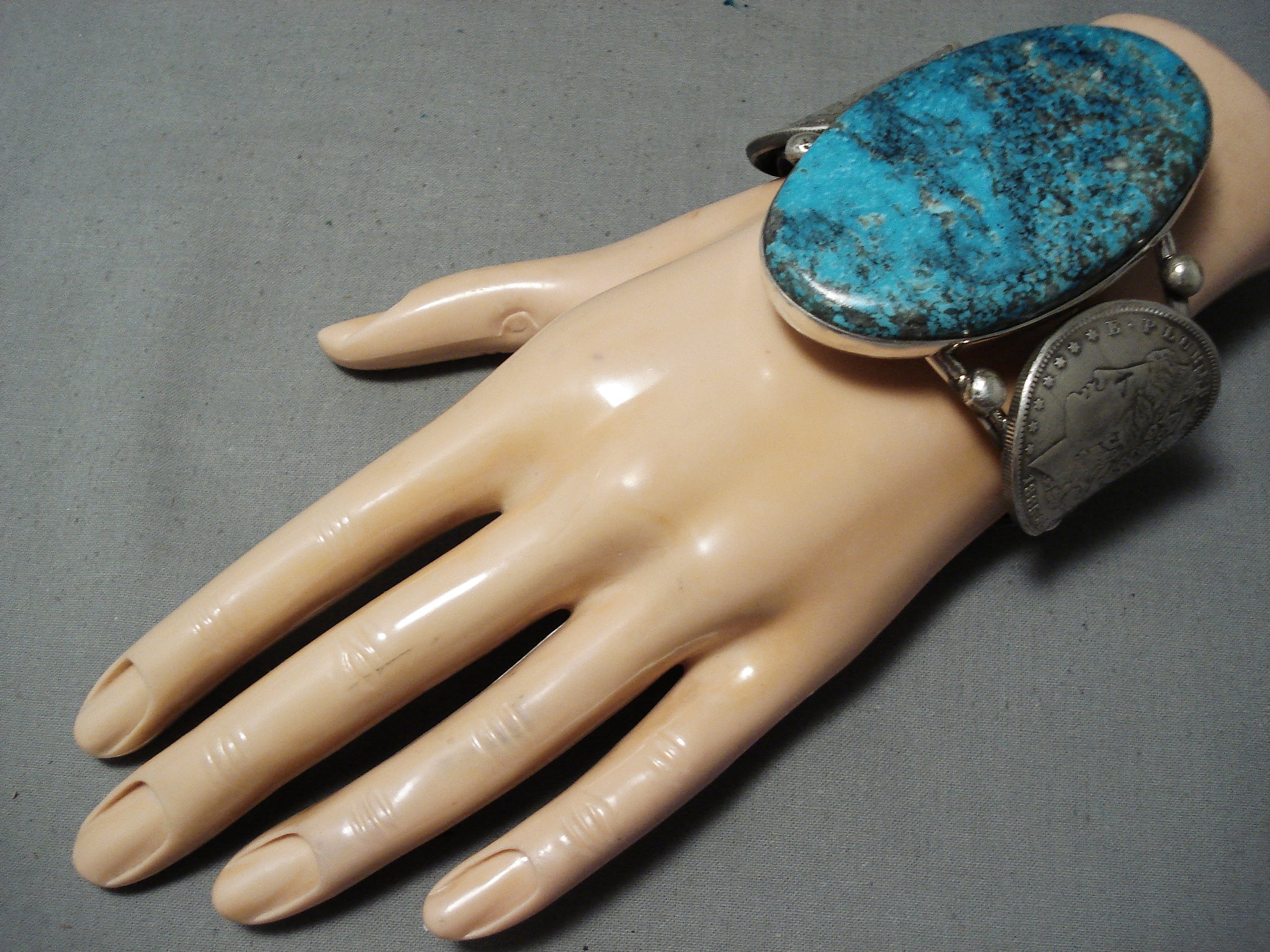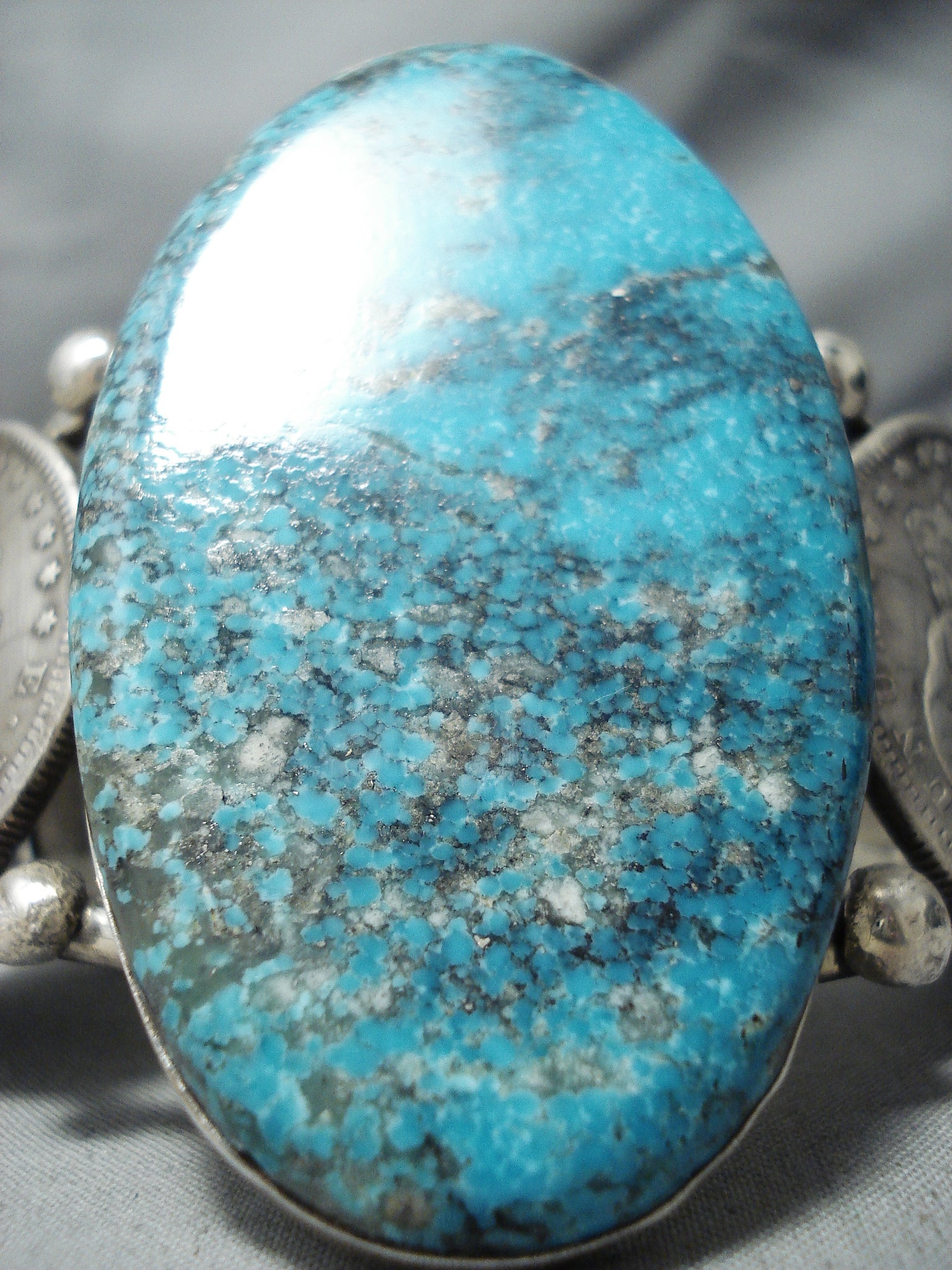 Huge Coin San Felipe Old Kingman Turquoise Sterling Silver Dollar Bracelet