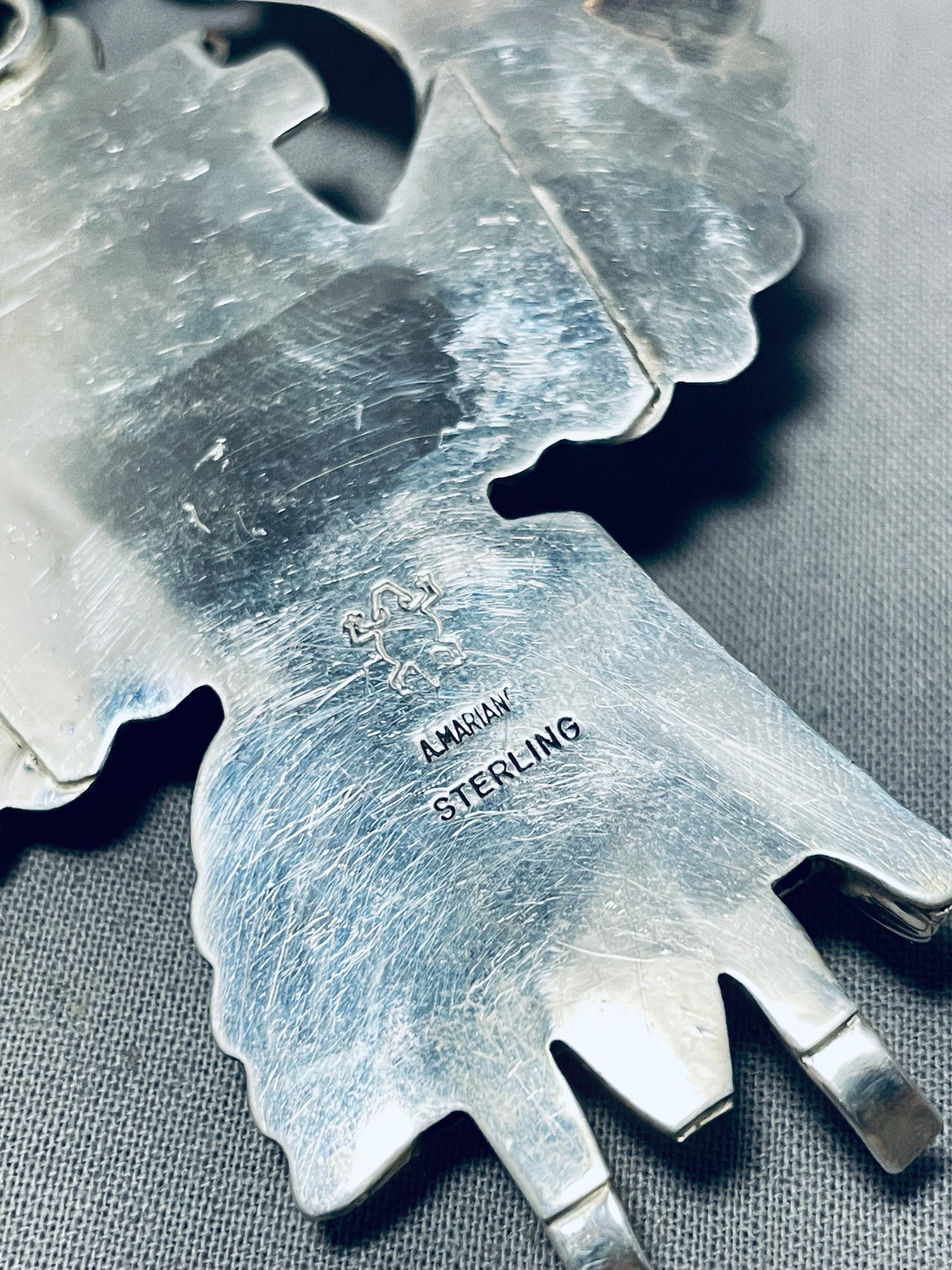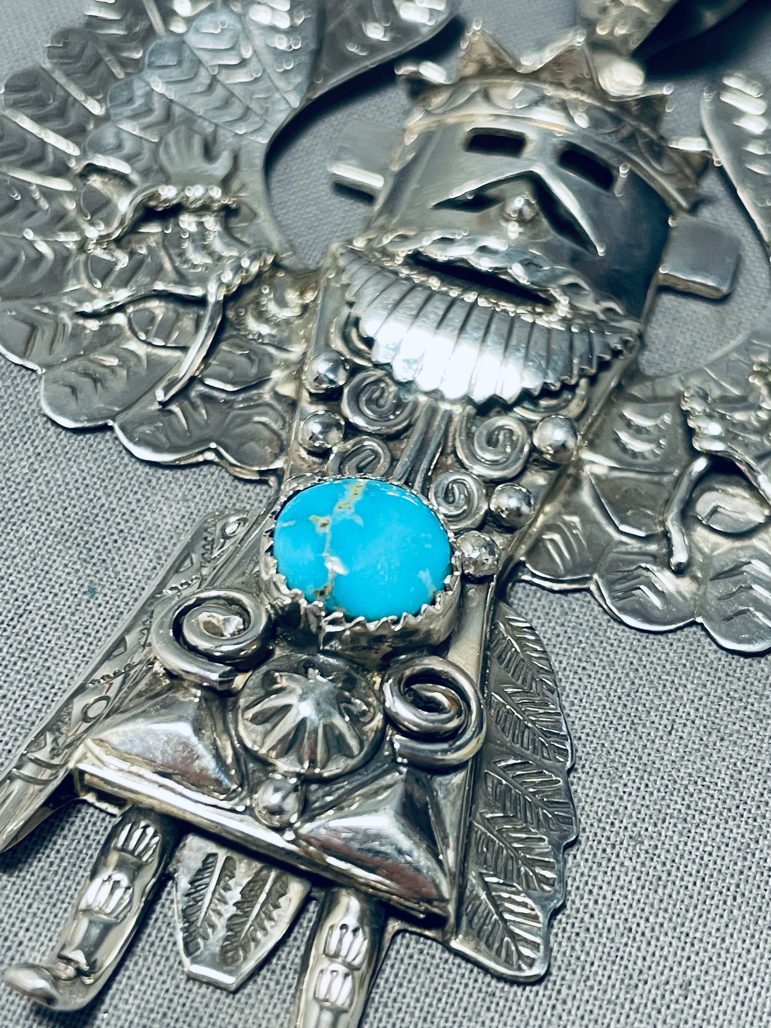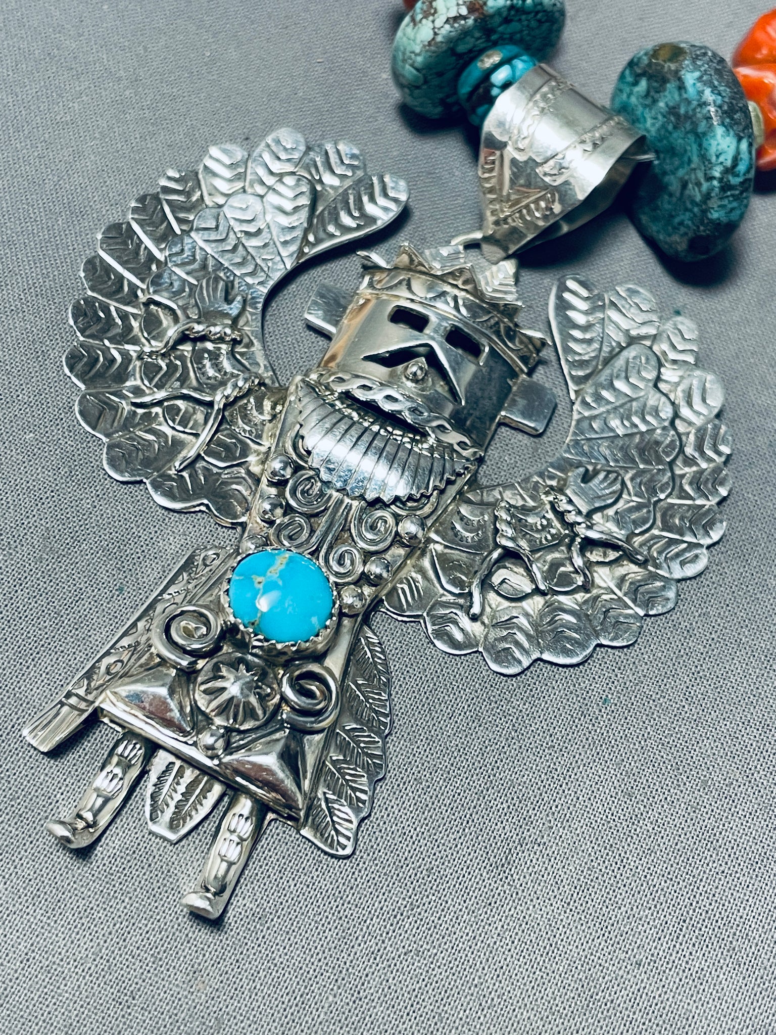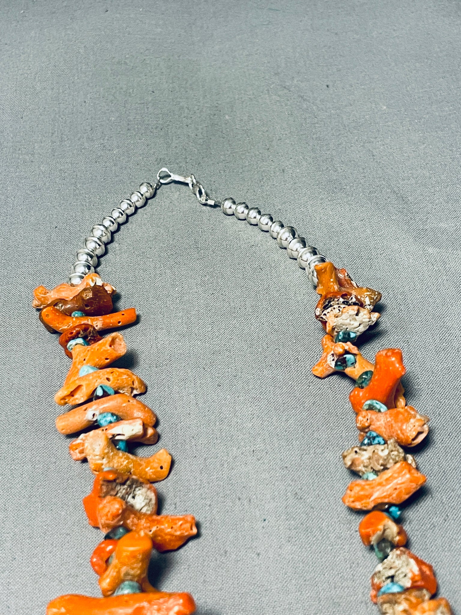 Huge Coral Chunk Native American Navajo Sterling Silver Kachina Doll Necklace