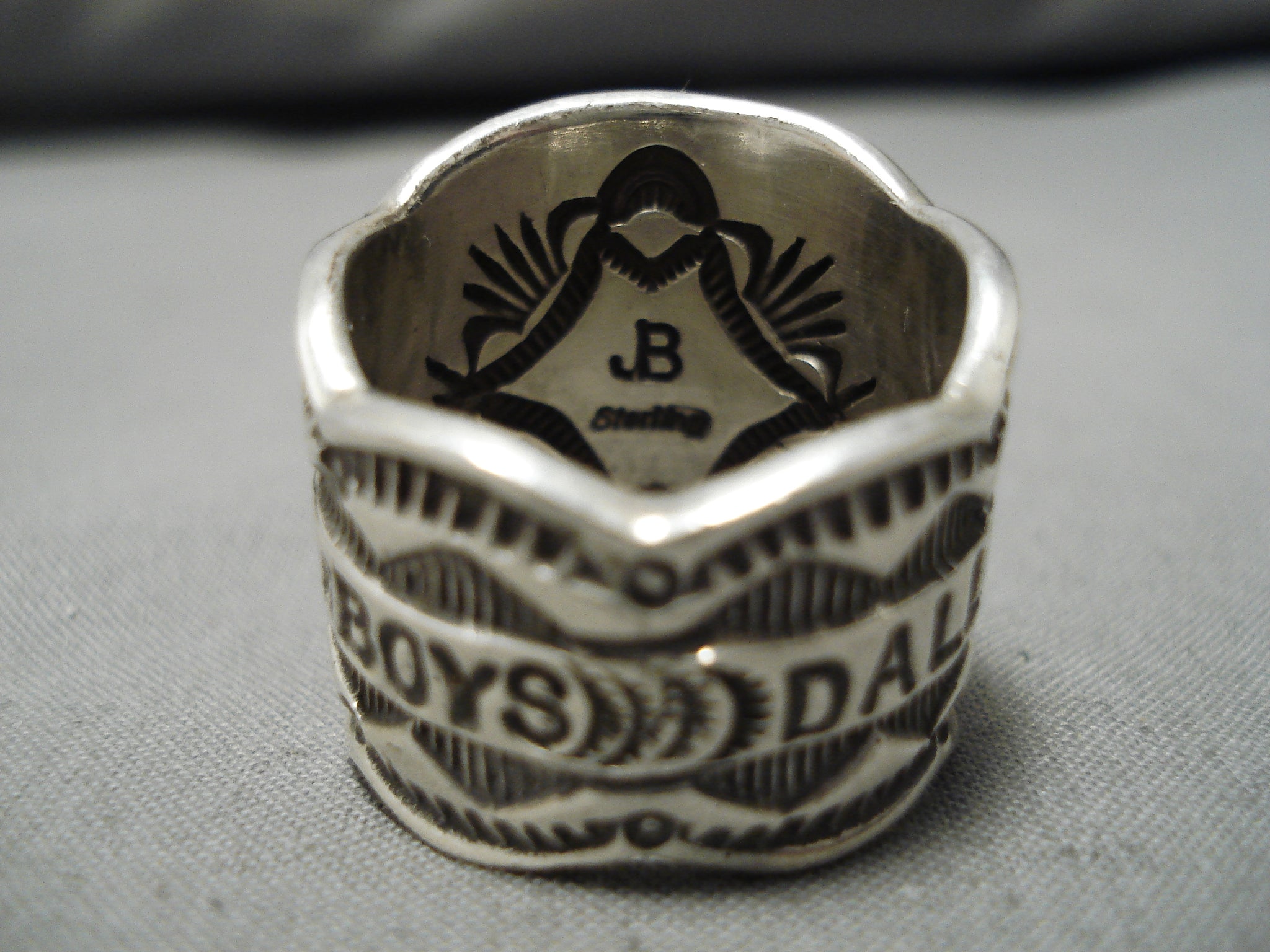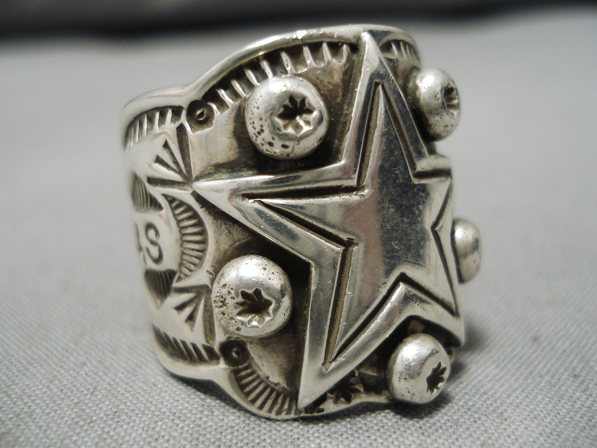Huge Detailed Heavy Men's Vintage Native American Navajo Dallas Cowboys Sterling Silver Ring