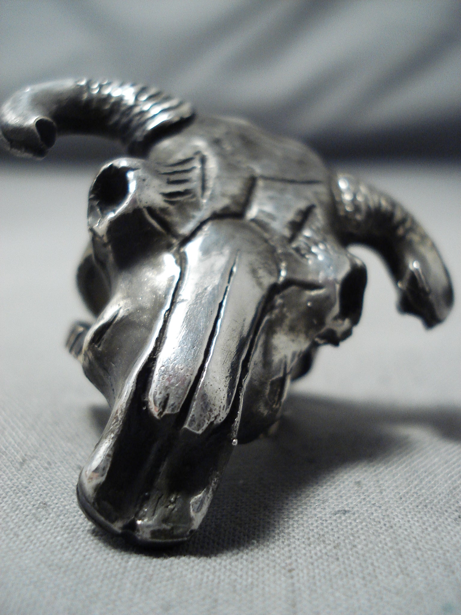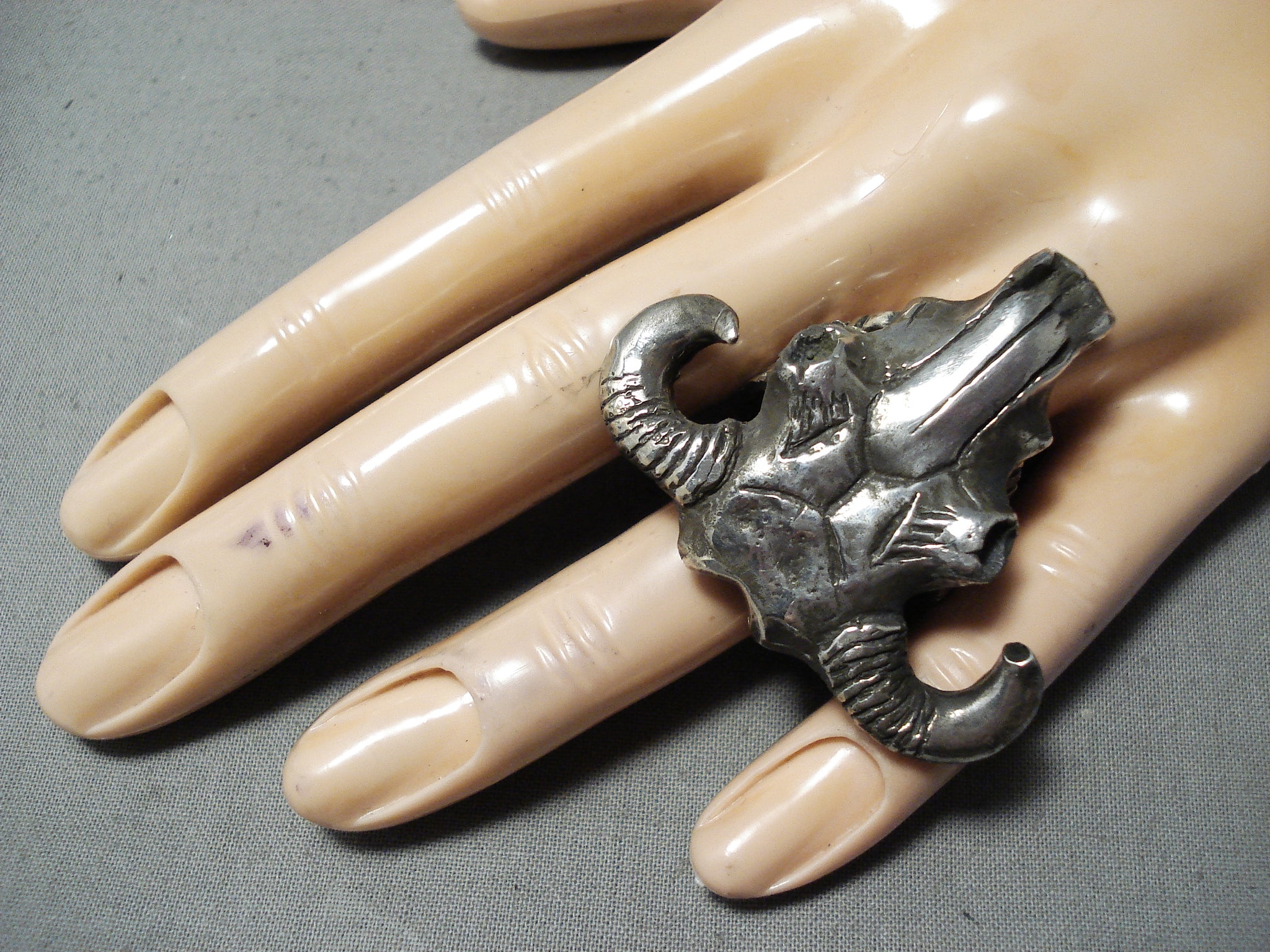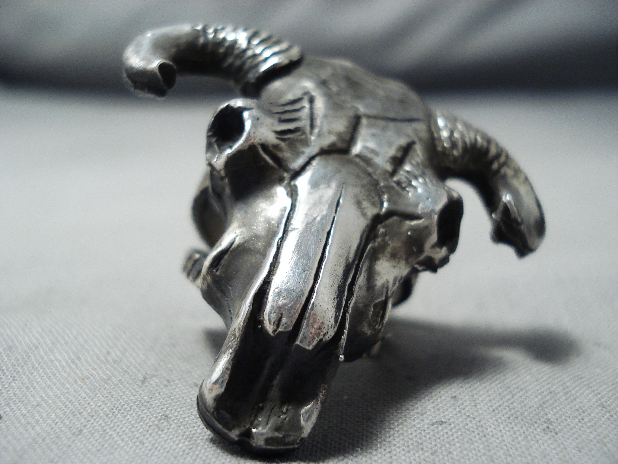 Huge Detailed Navajo Sterling Silver Cowskull Ring Native American