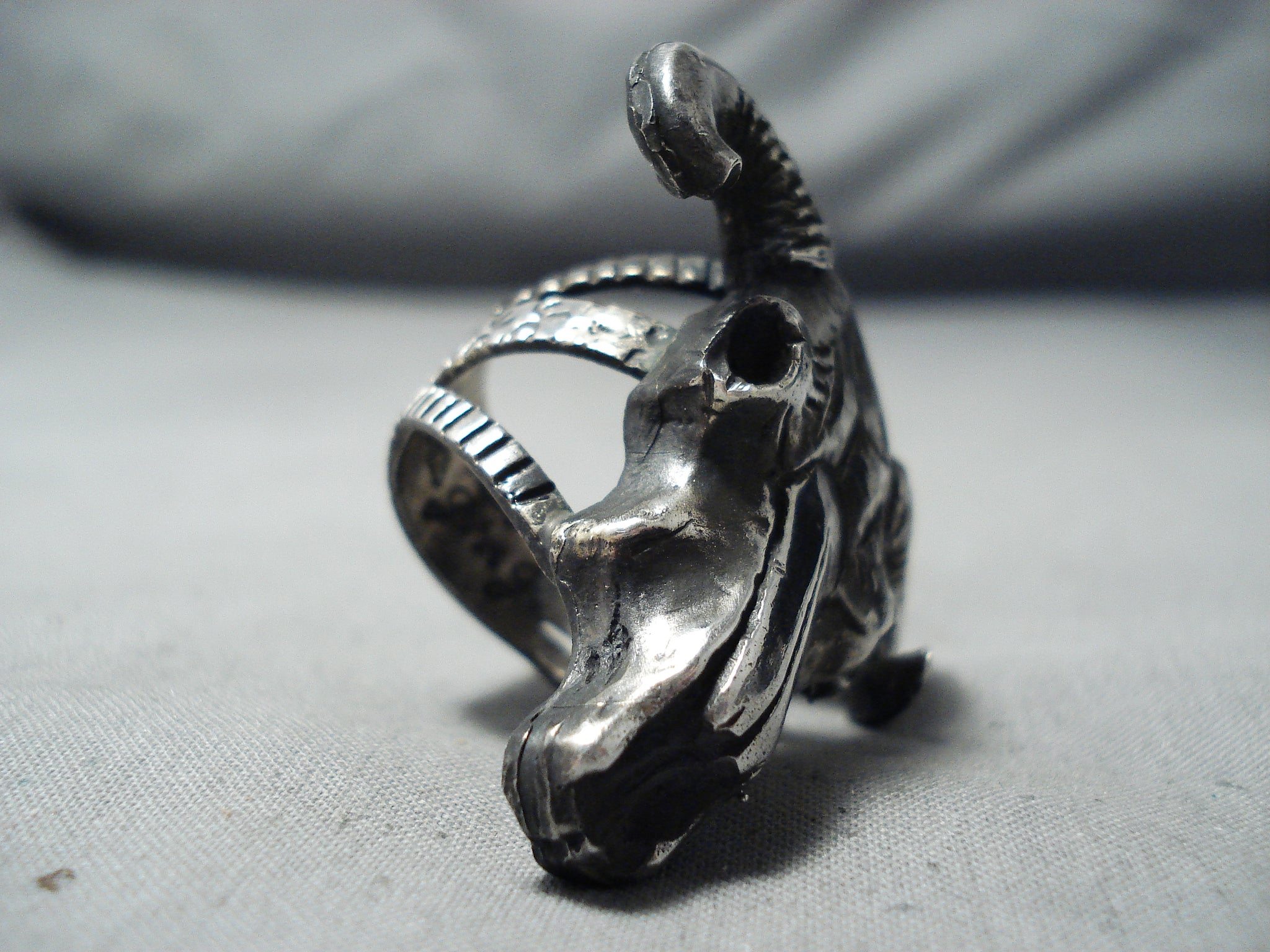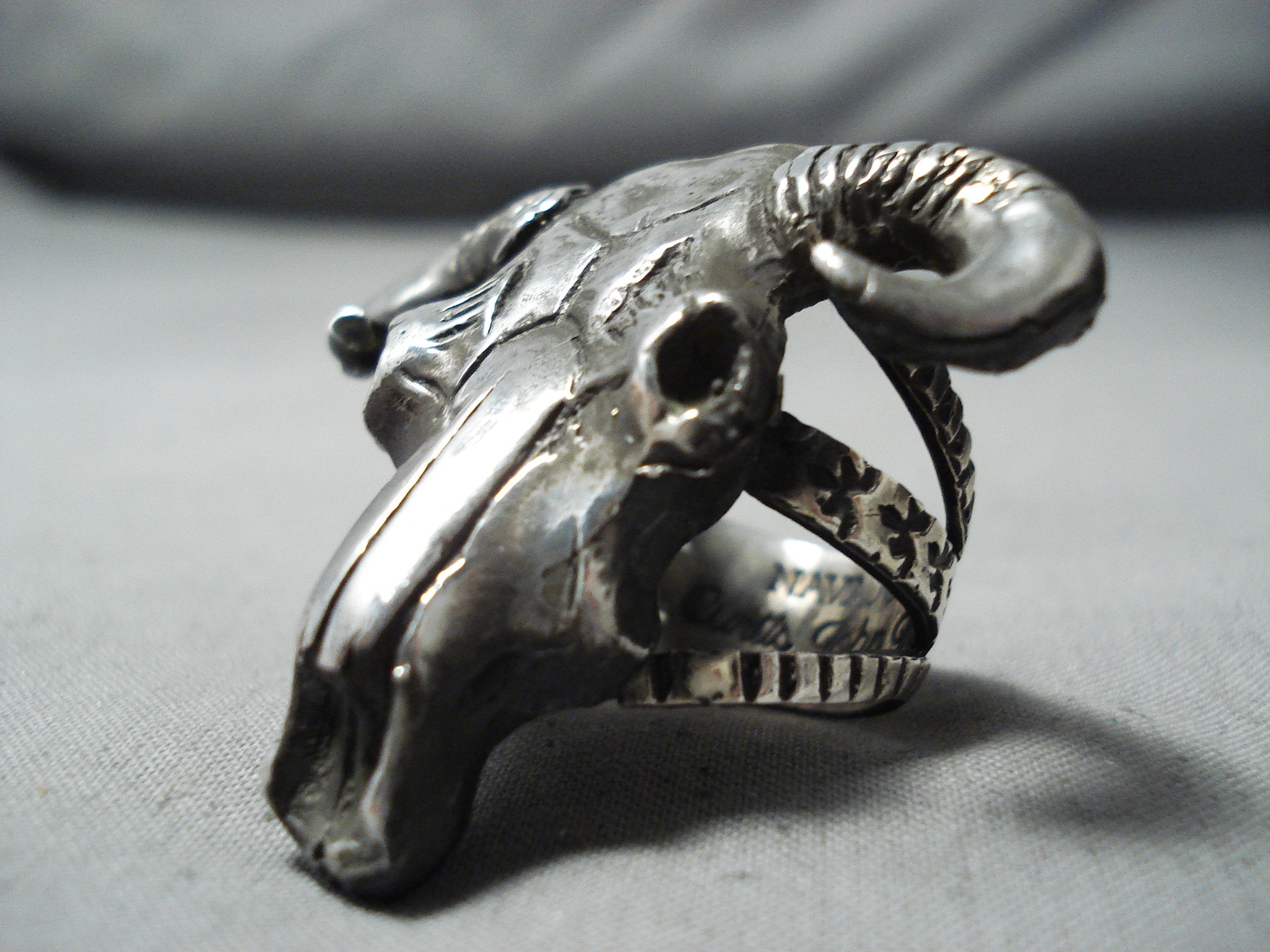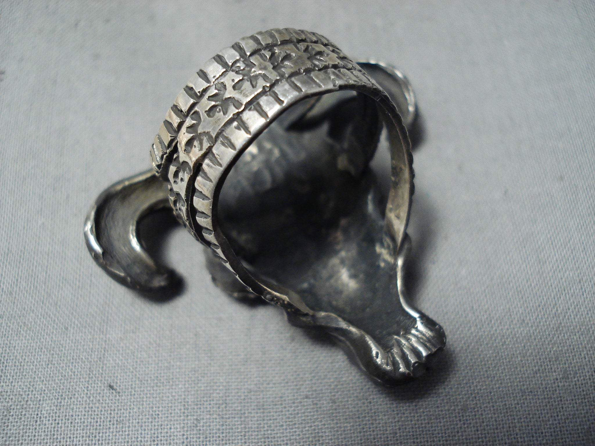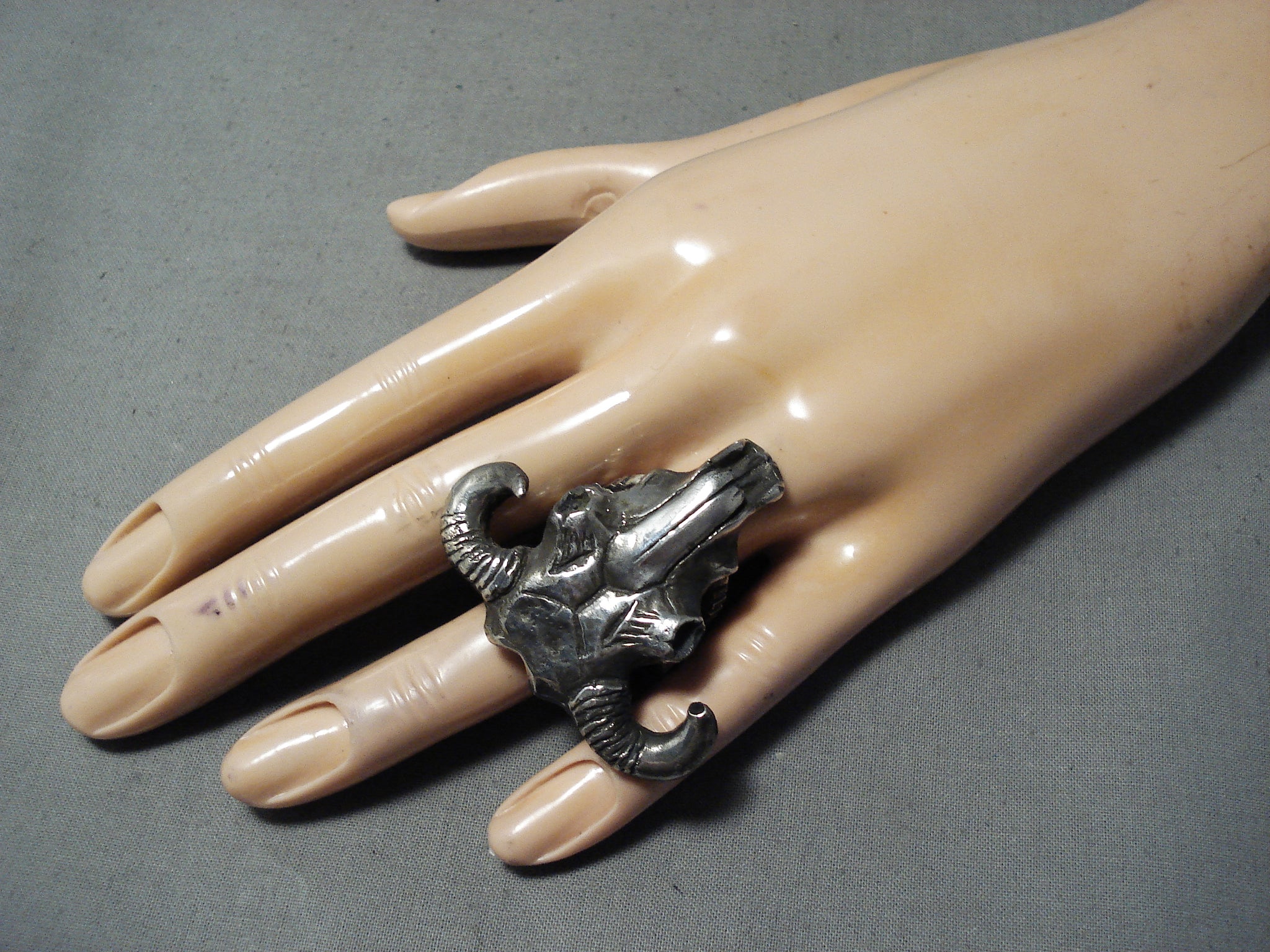 Huge Detailed Navajo Sterling Silver Cowskull Ring Native American