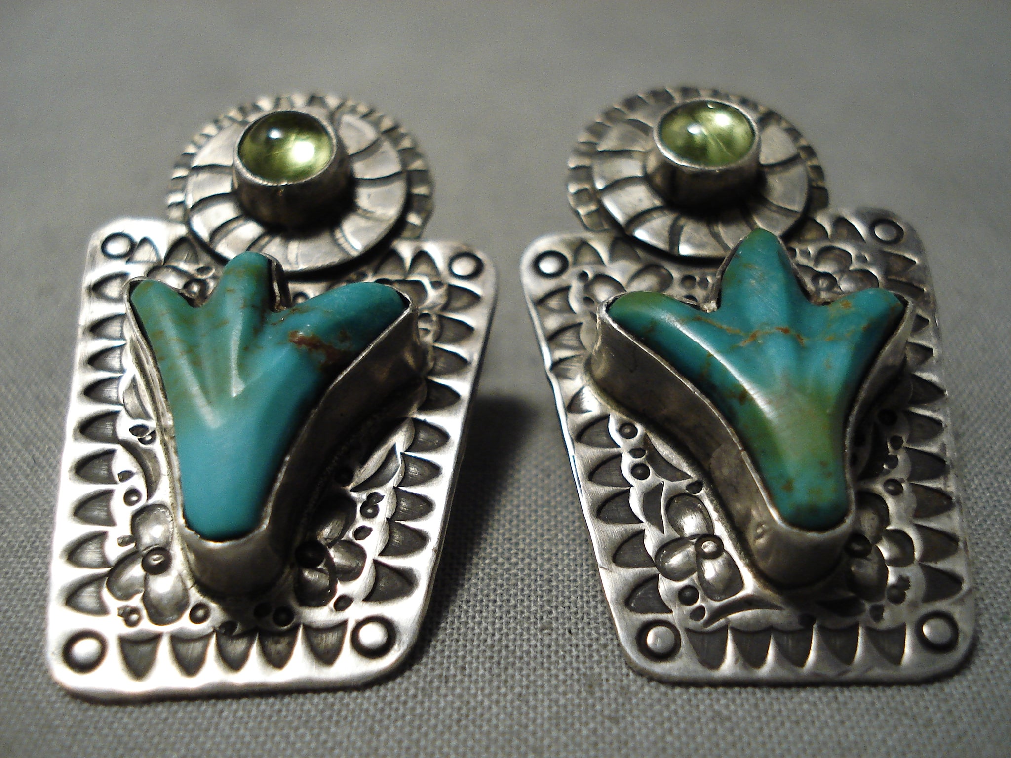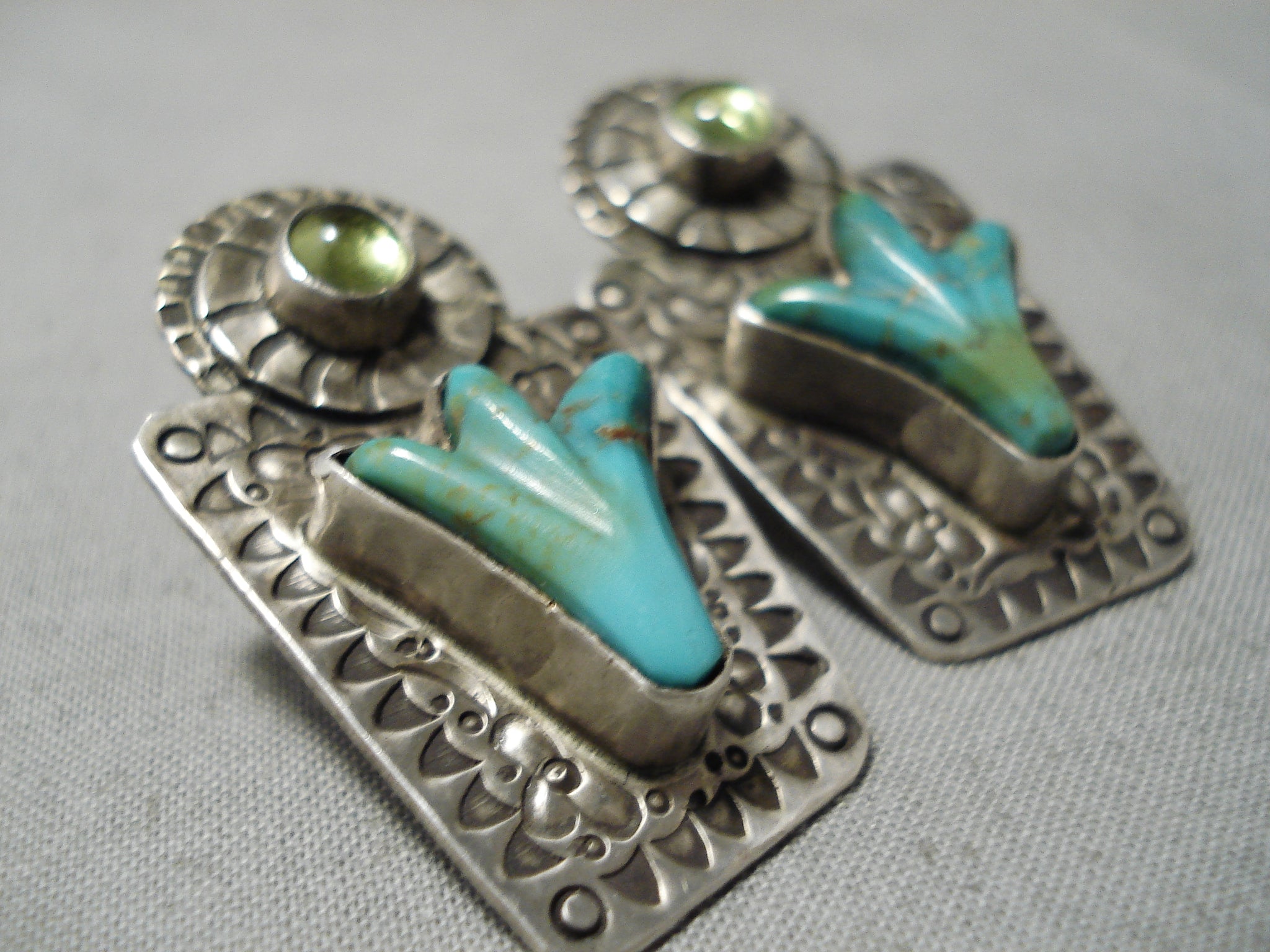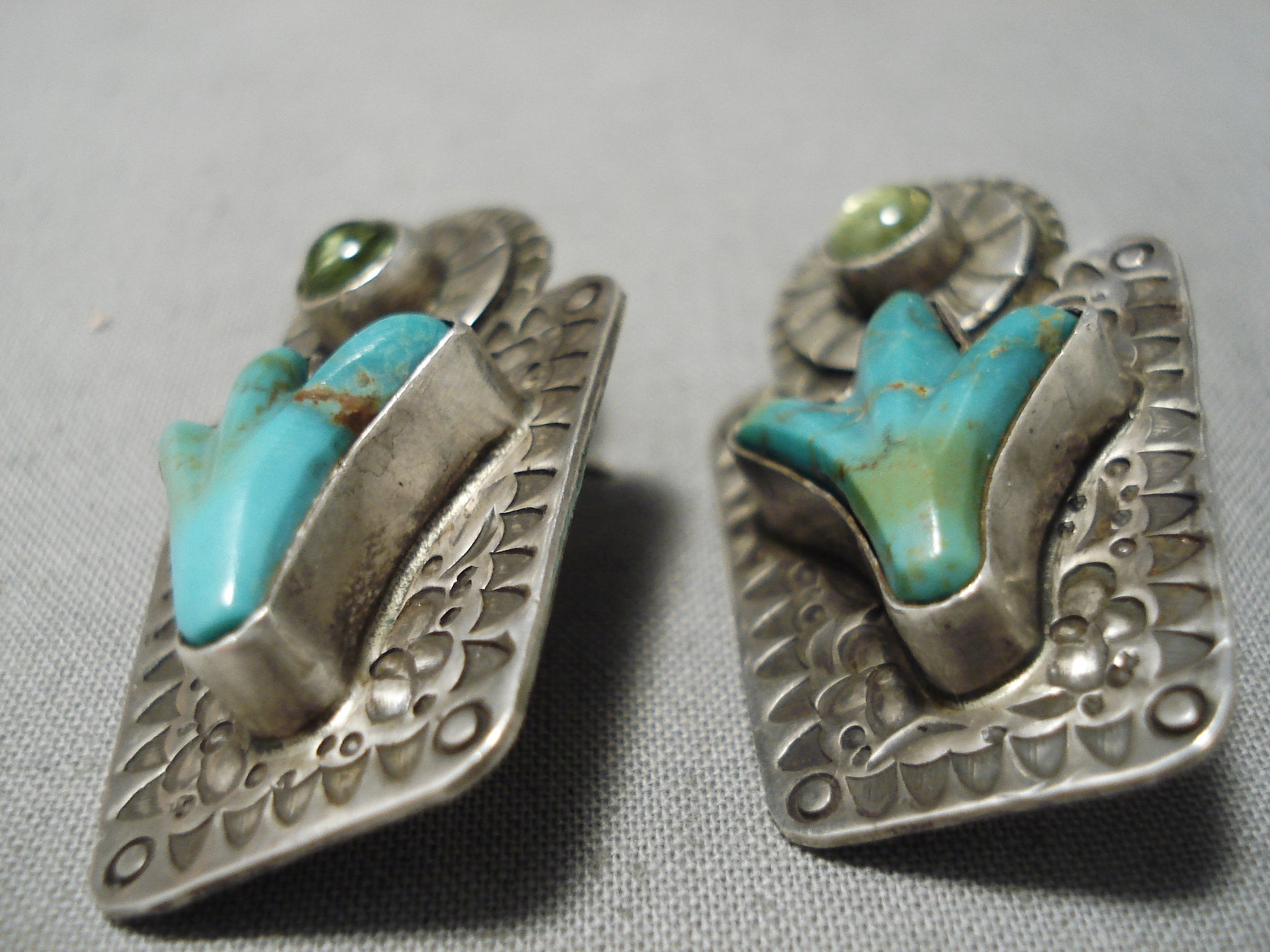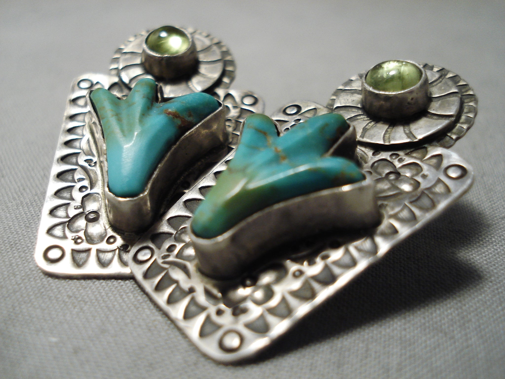 Huge Detailed Vintage Native American Navajo Turquoise Sterling Silver Cactus Earrings