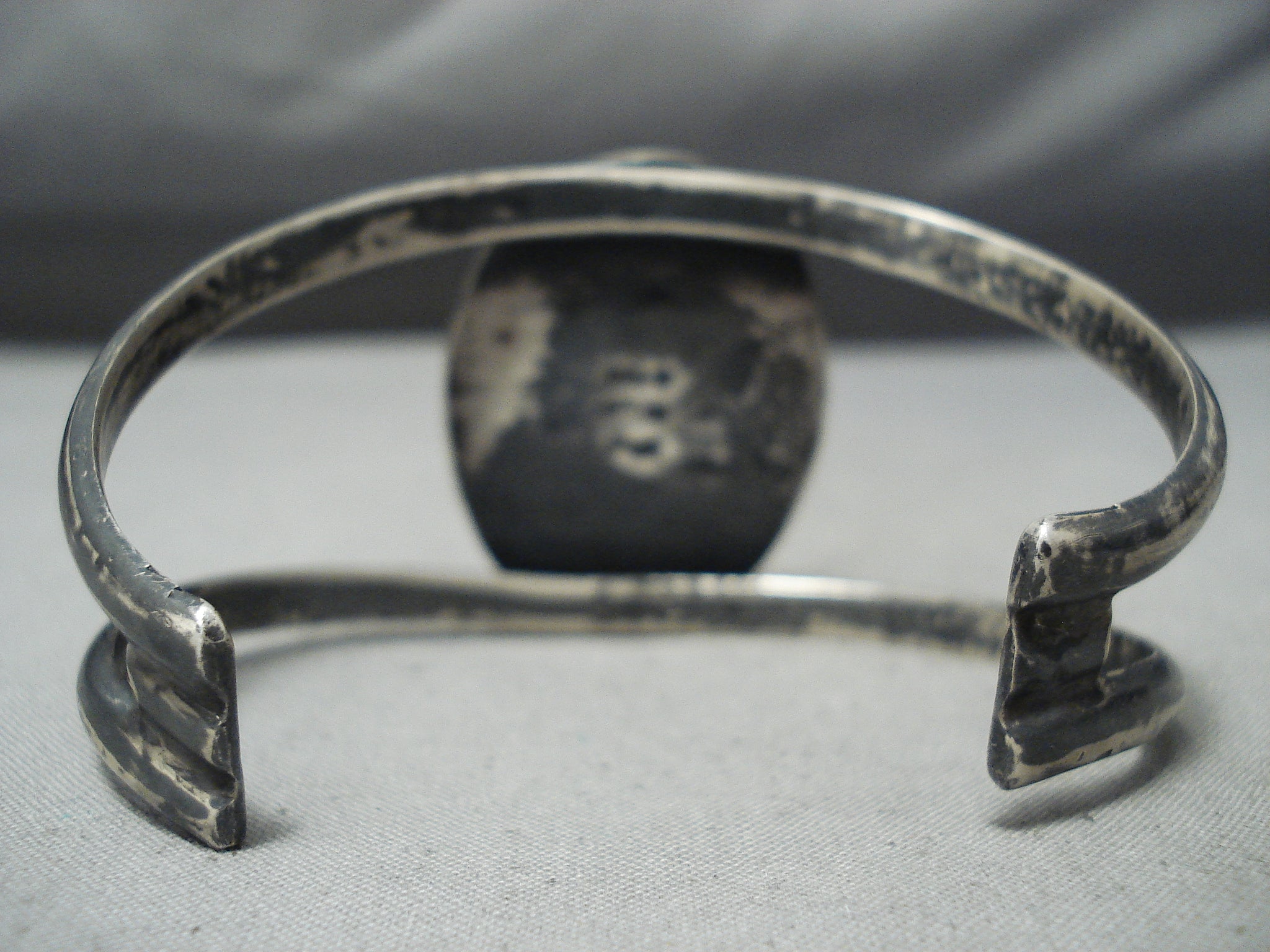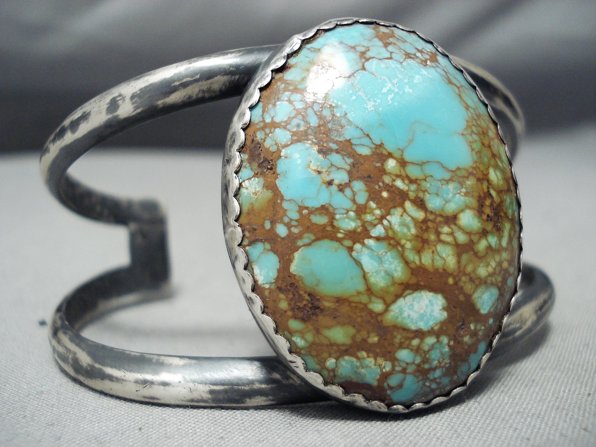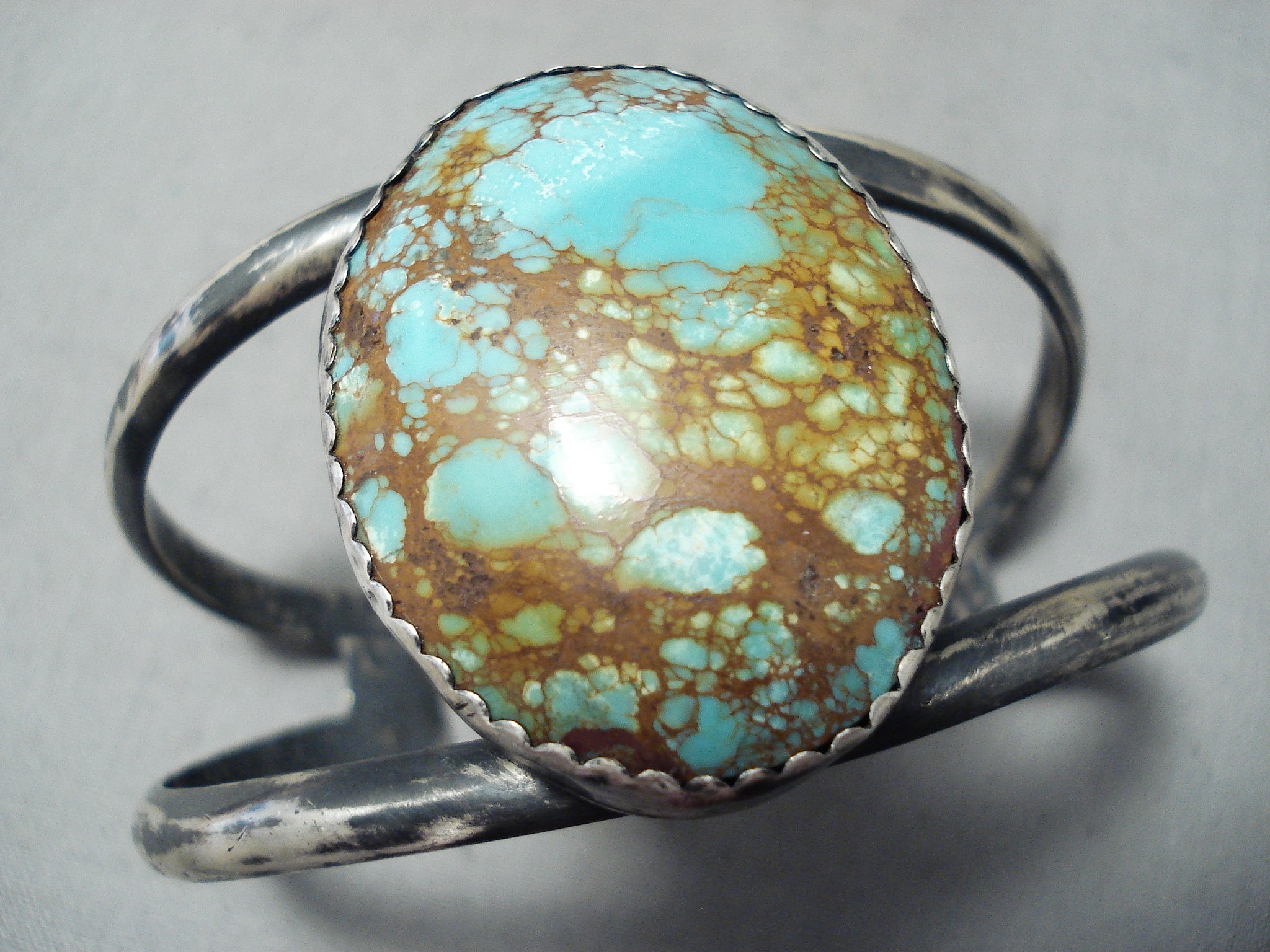 Huge Domed Royston Turquoise Vintage Native American Navajo Sterling Silver Bracelet Old