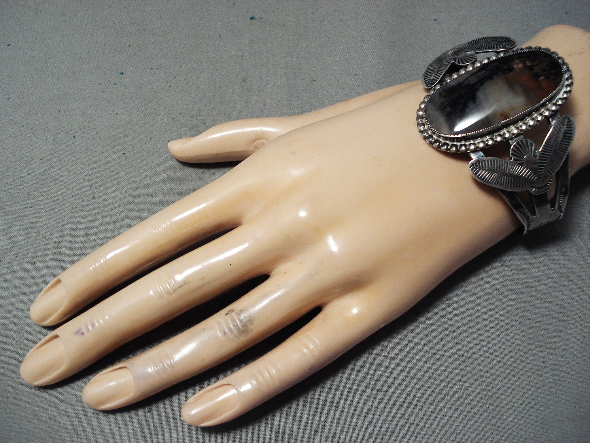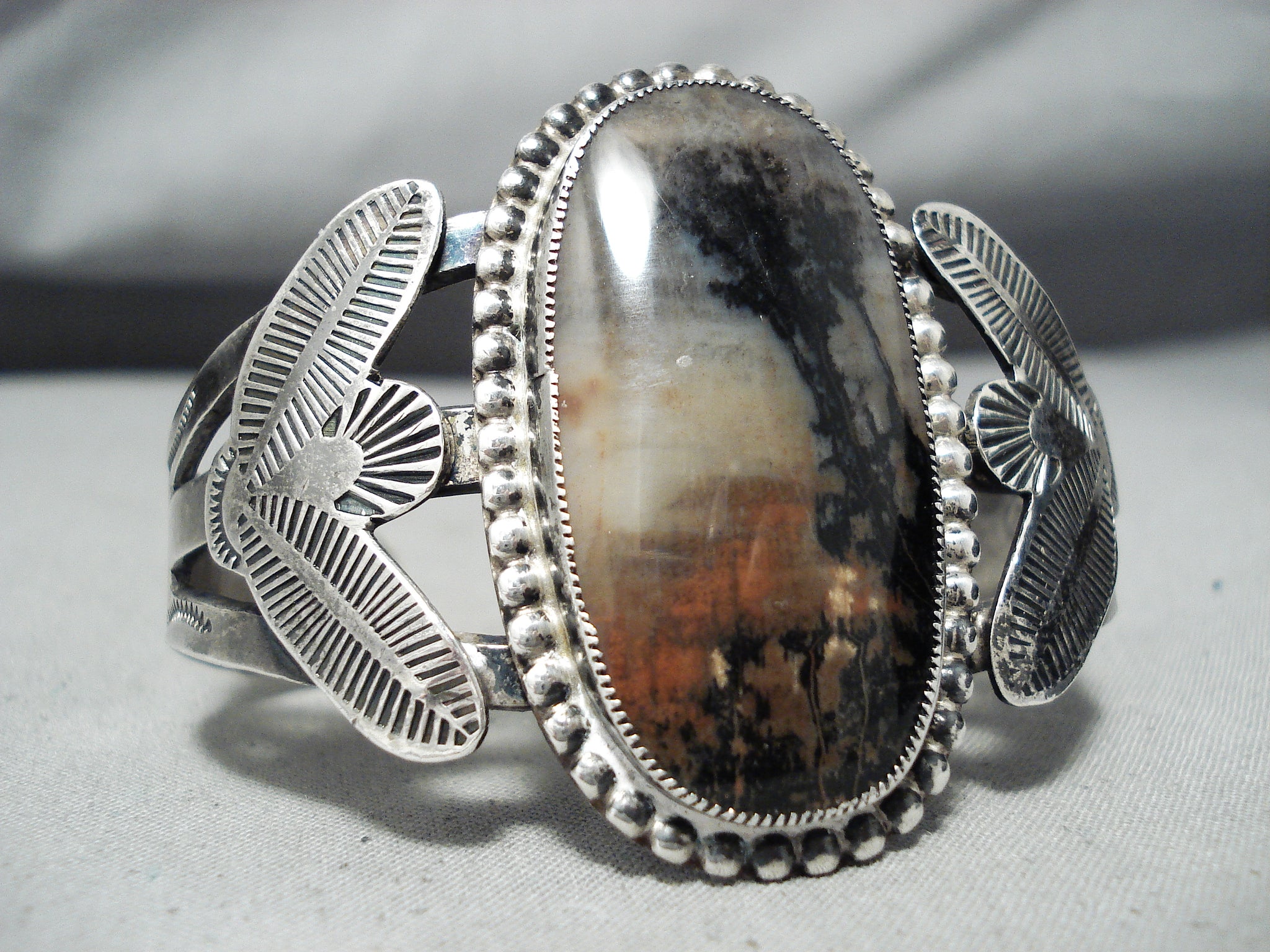 Huge Early Vintage Native American Navajo Petrified Wood Sterling Silver Bracelet