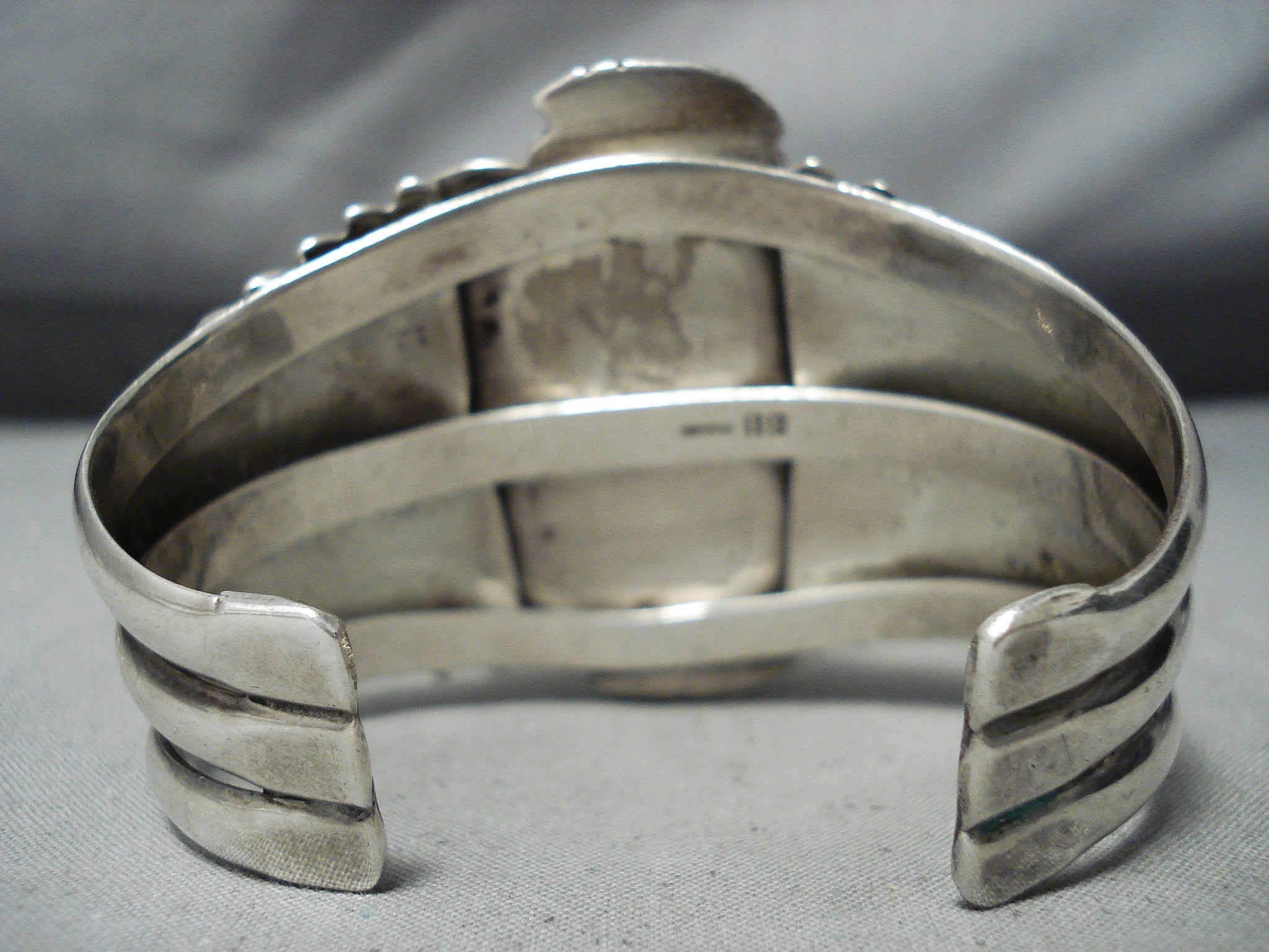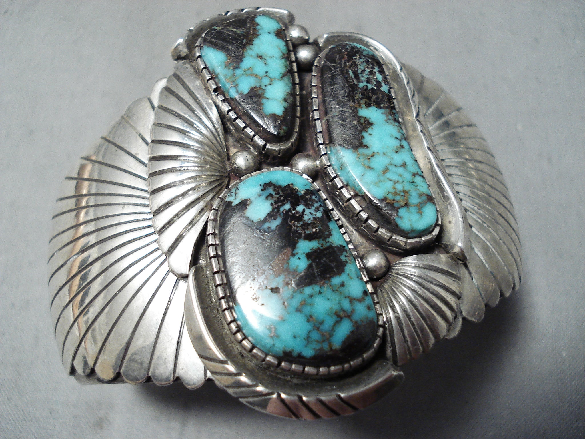 Huge Flank Vintage Native American Navajo Blue Jay Turquoise Sterling Silver Bracelet