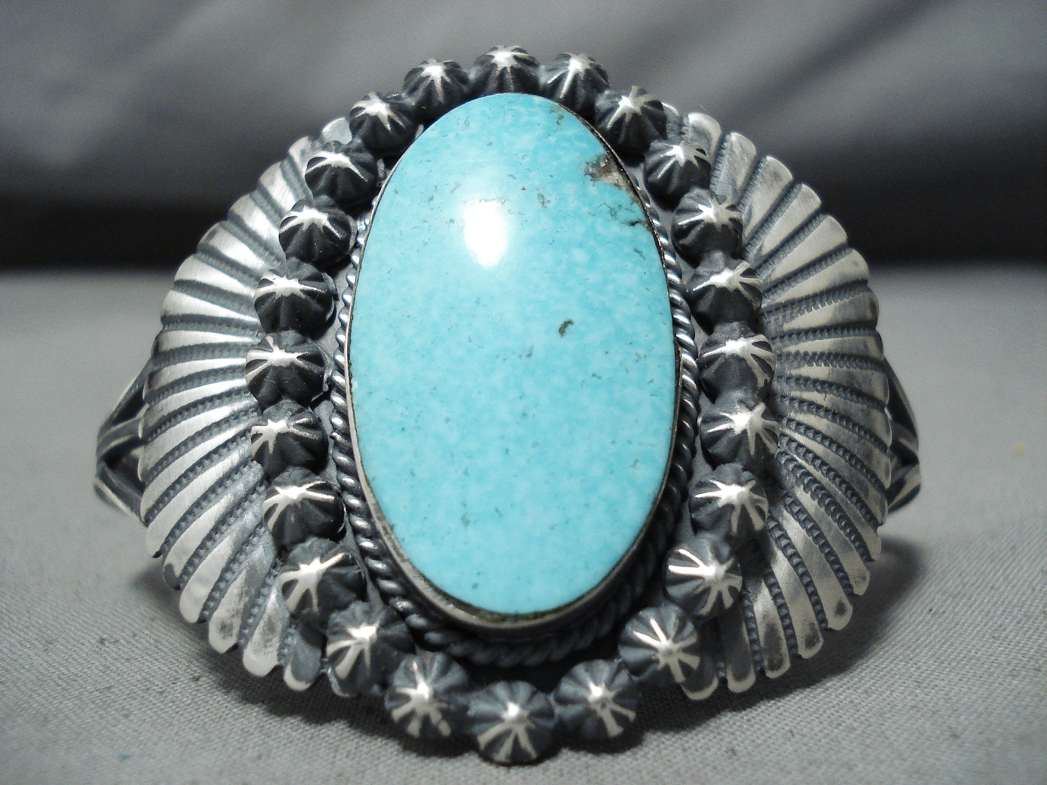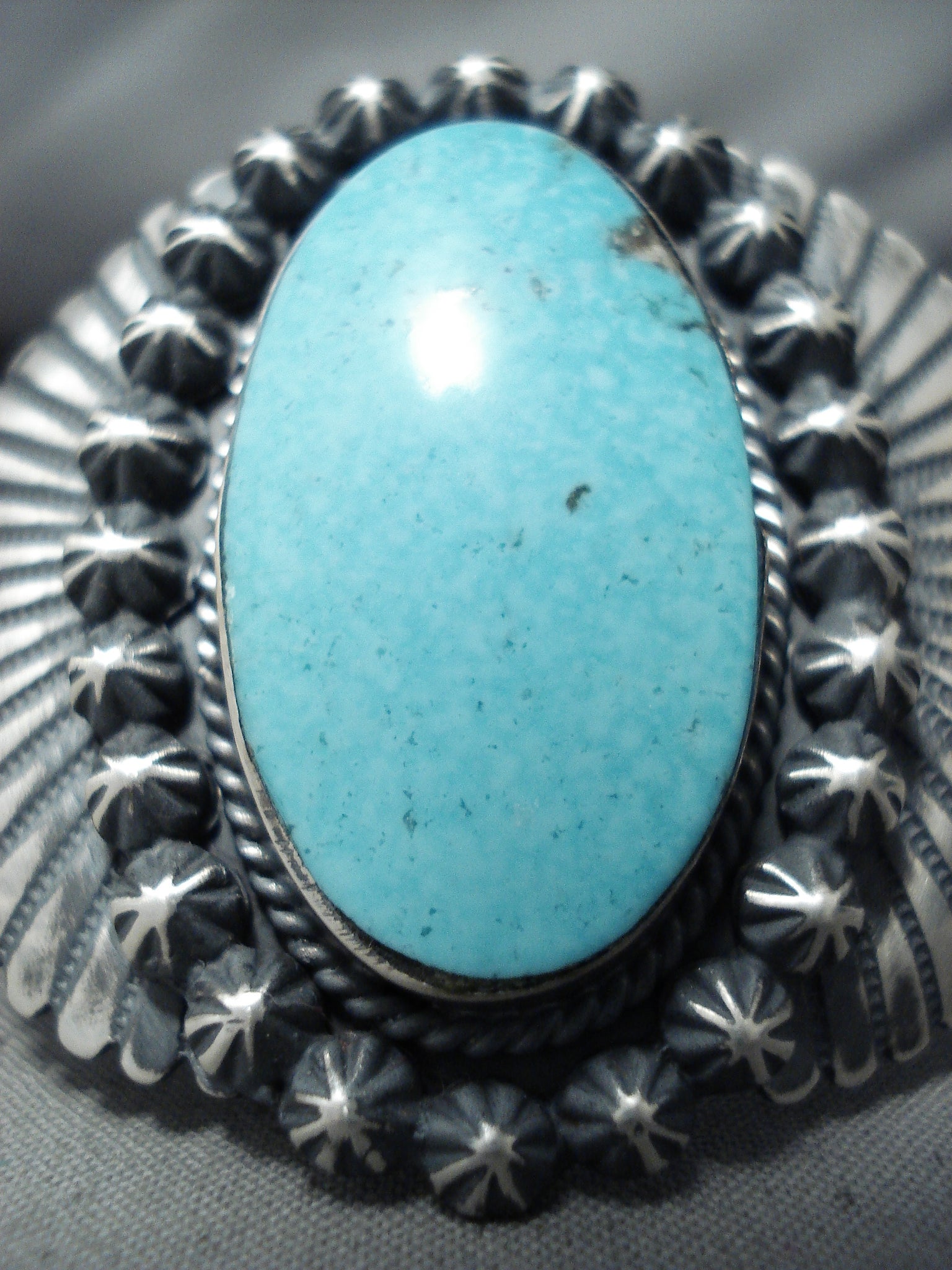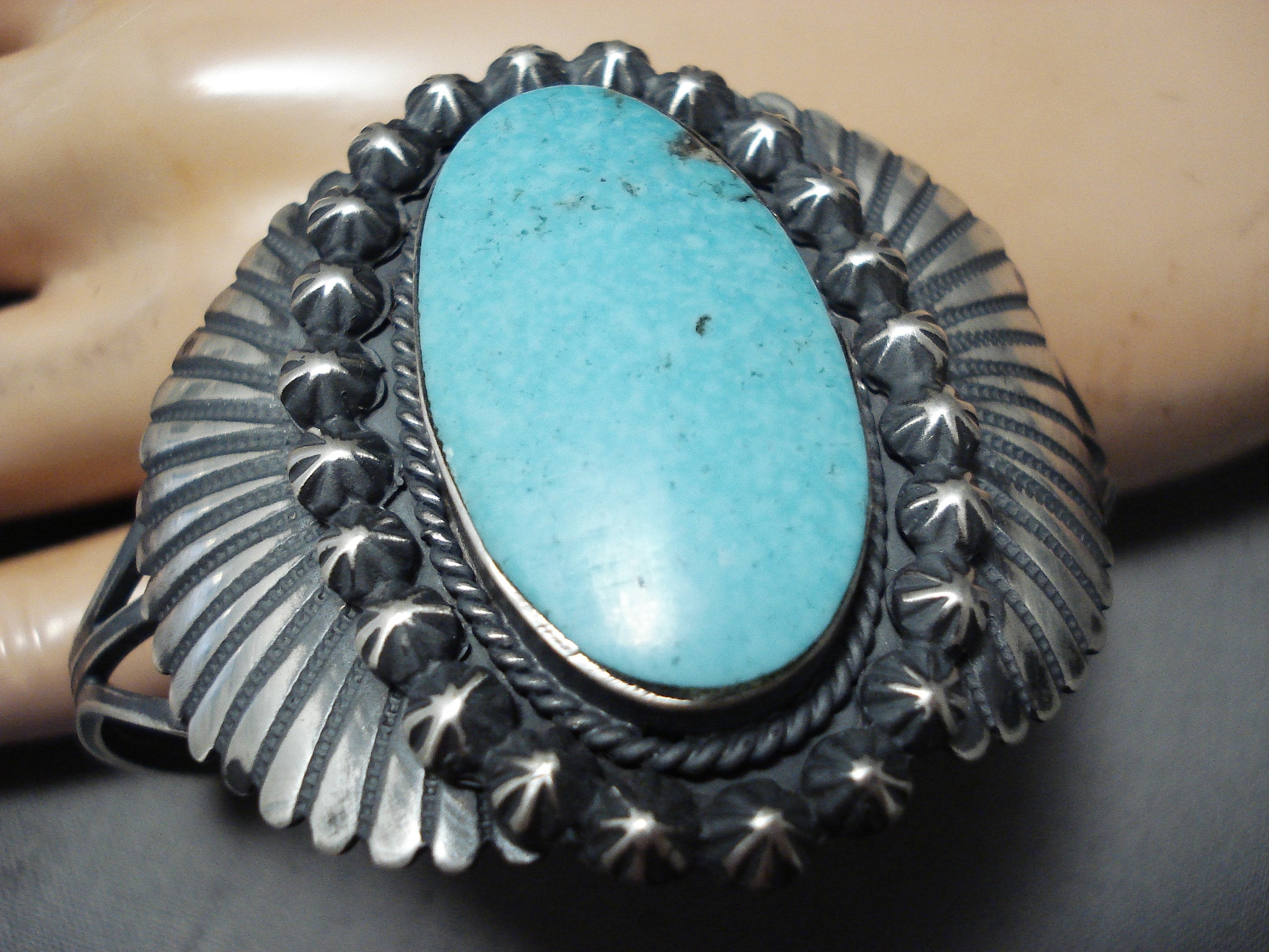 Huge Flank Vintage Native American Navajo Turquoise Sterling Silver Bracelet