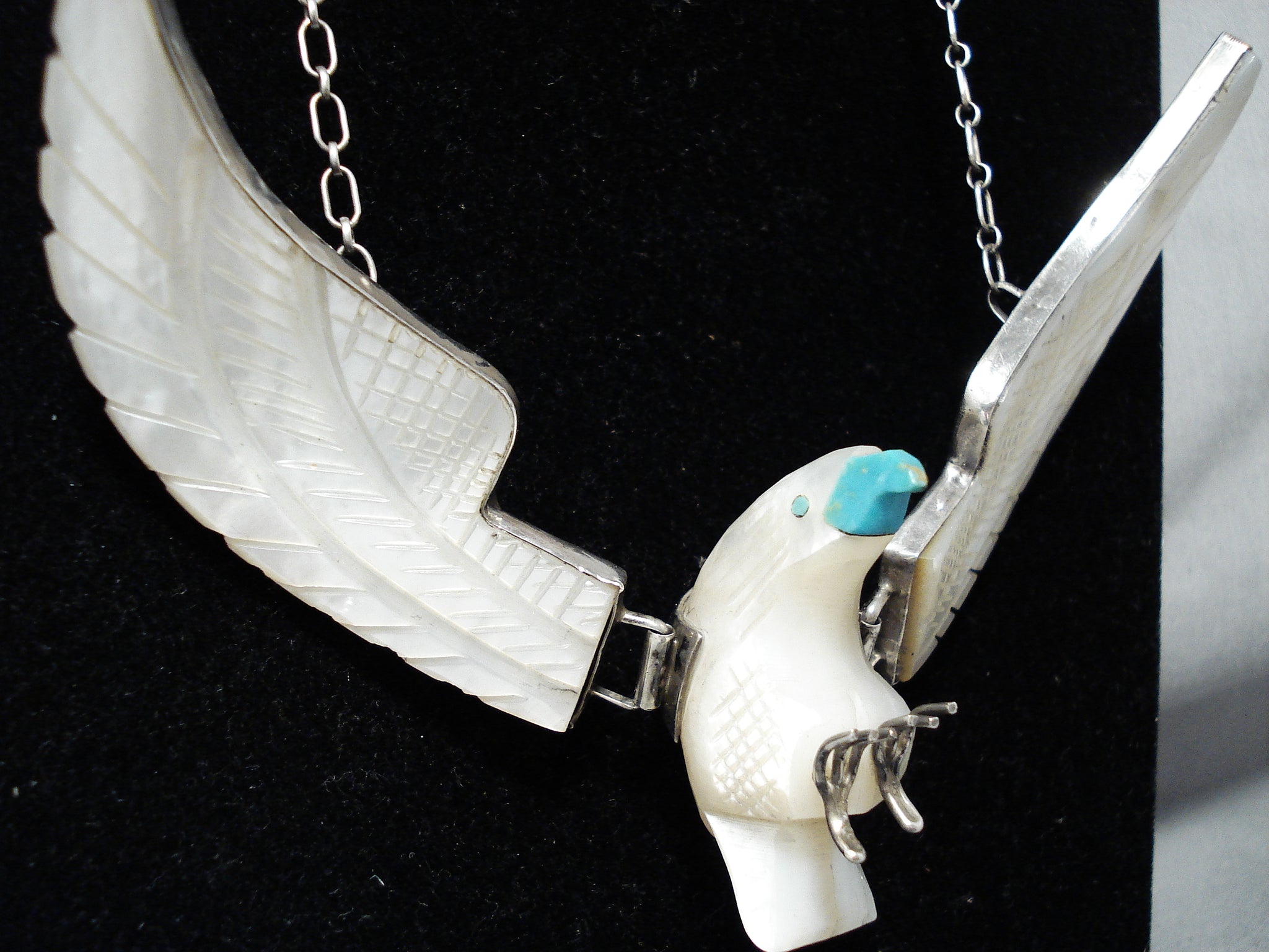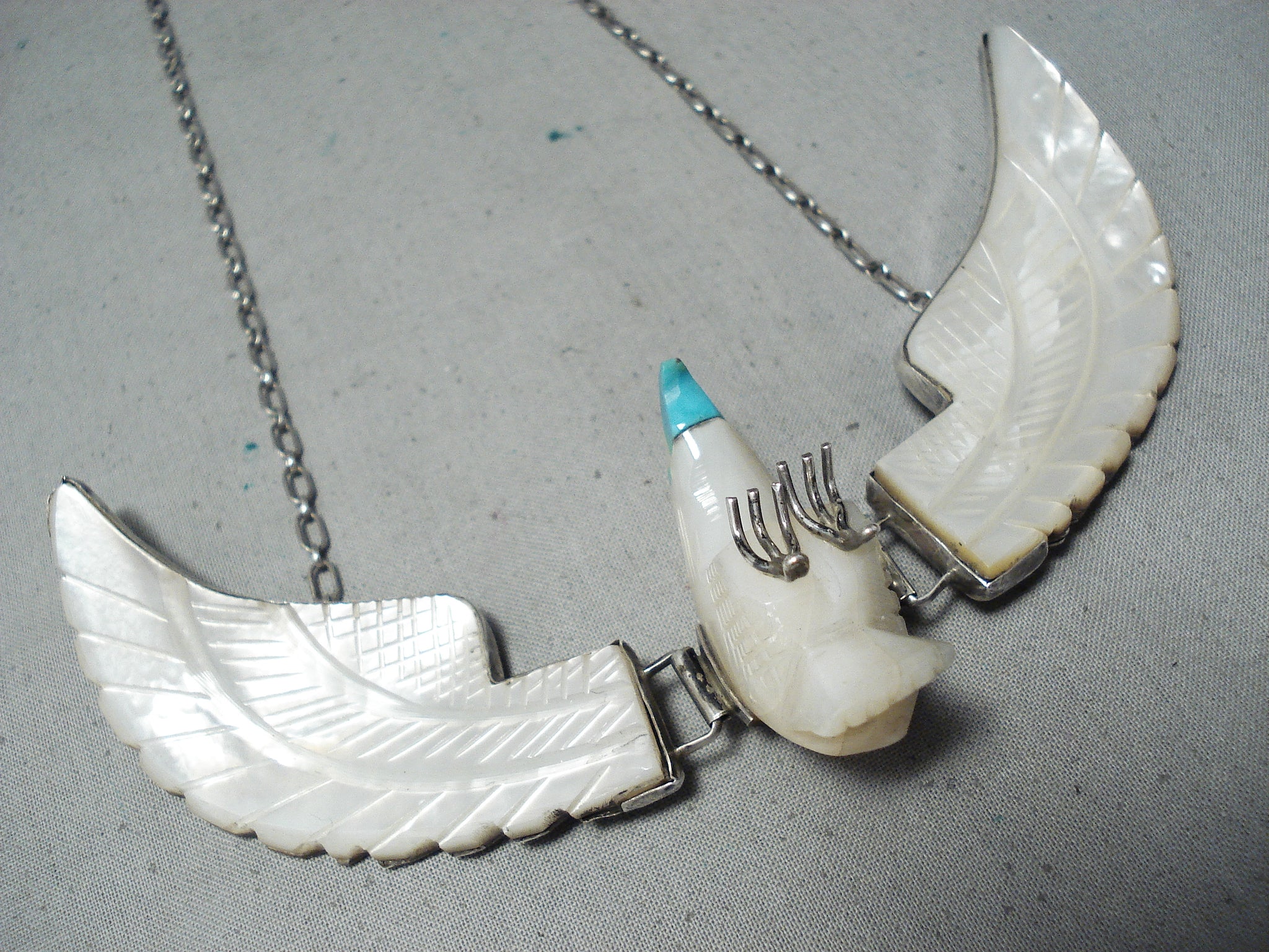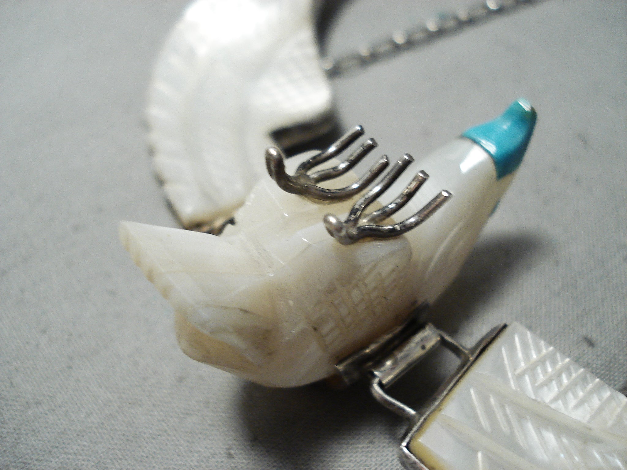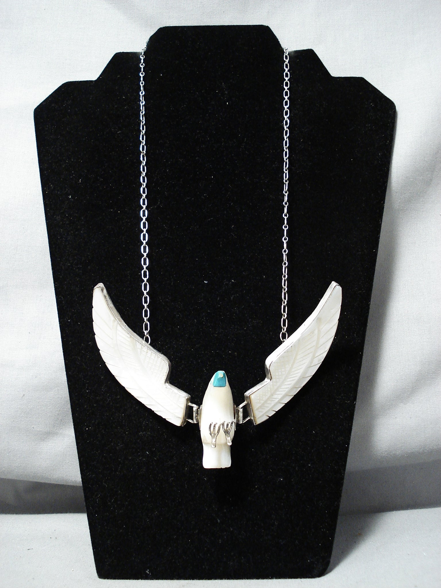 Huge Flapping Wings Vintage Native American Navajo Turquoise Sterling Silver Eagle Necklace