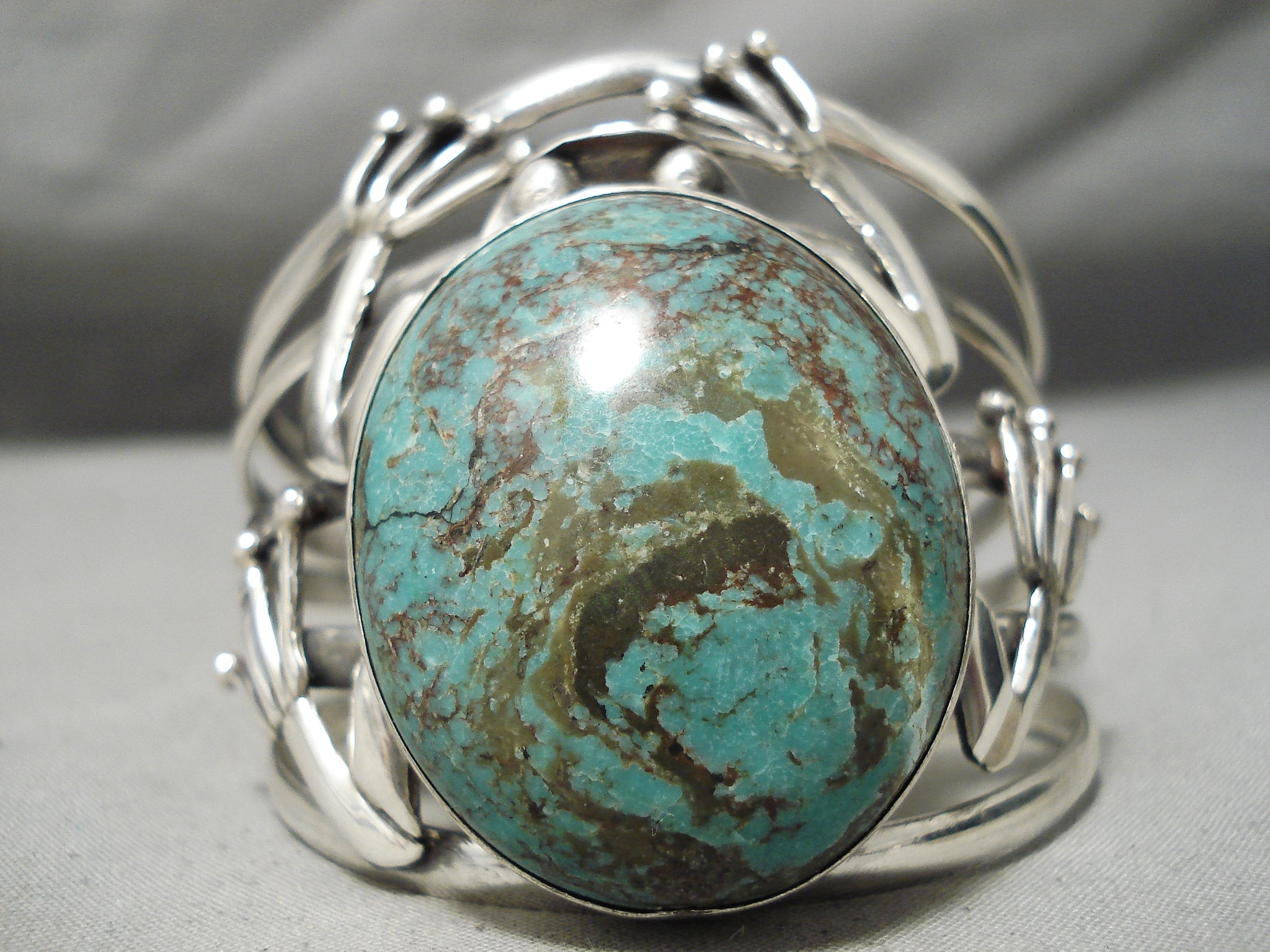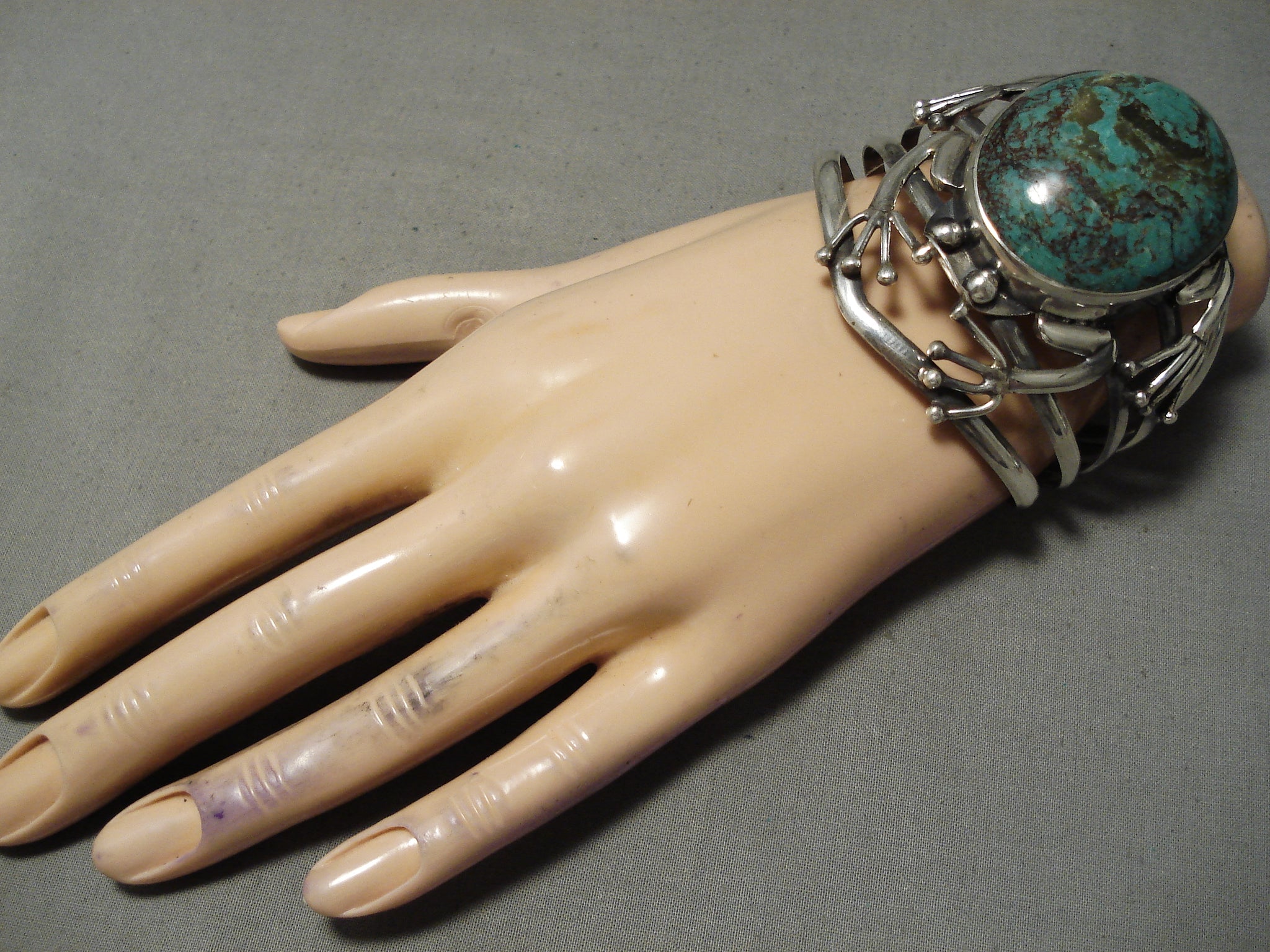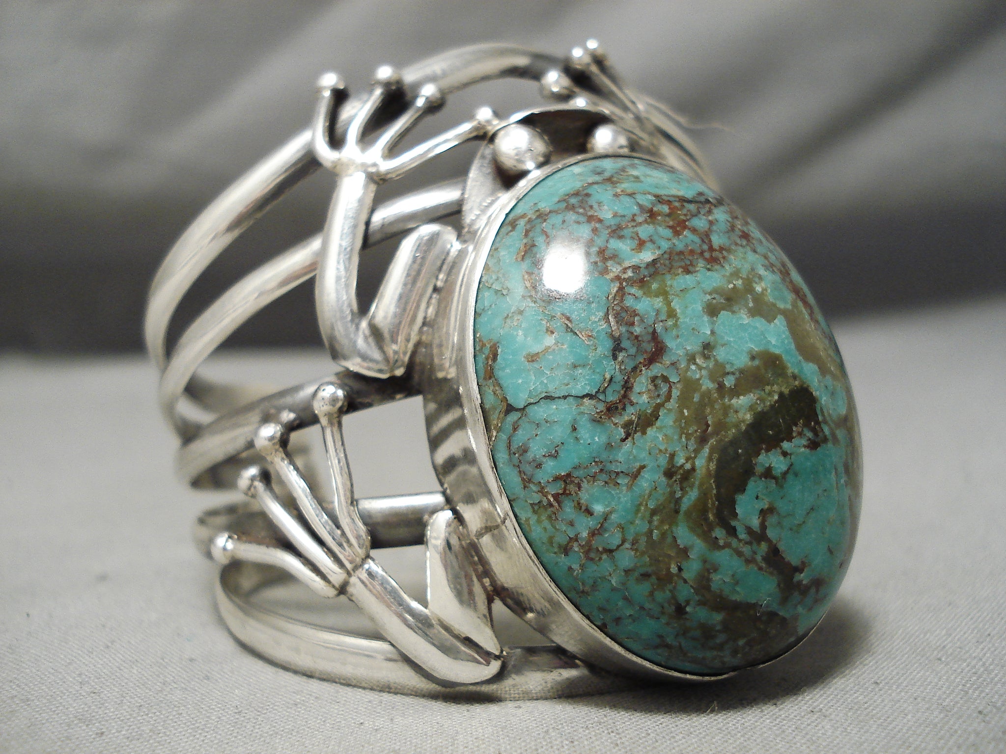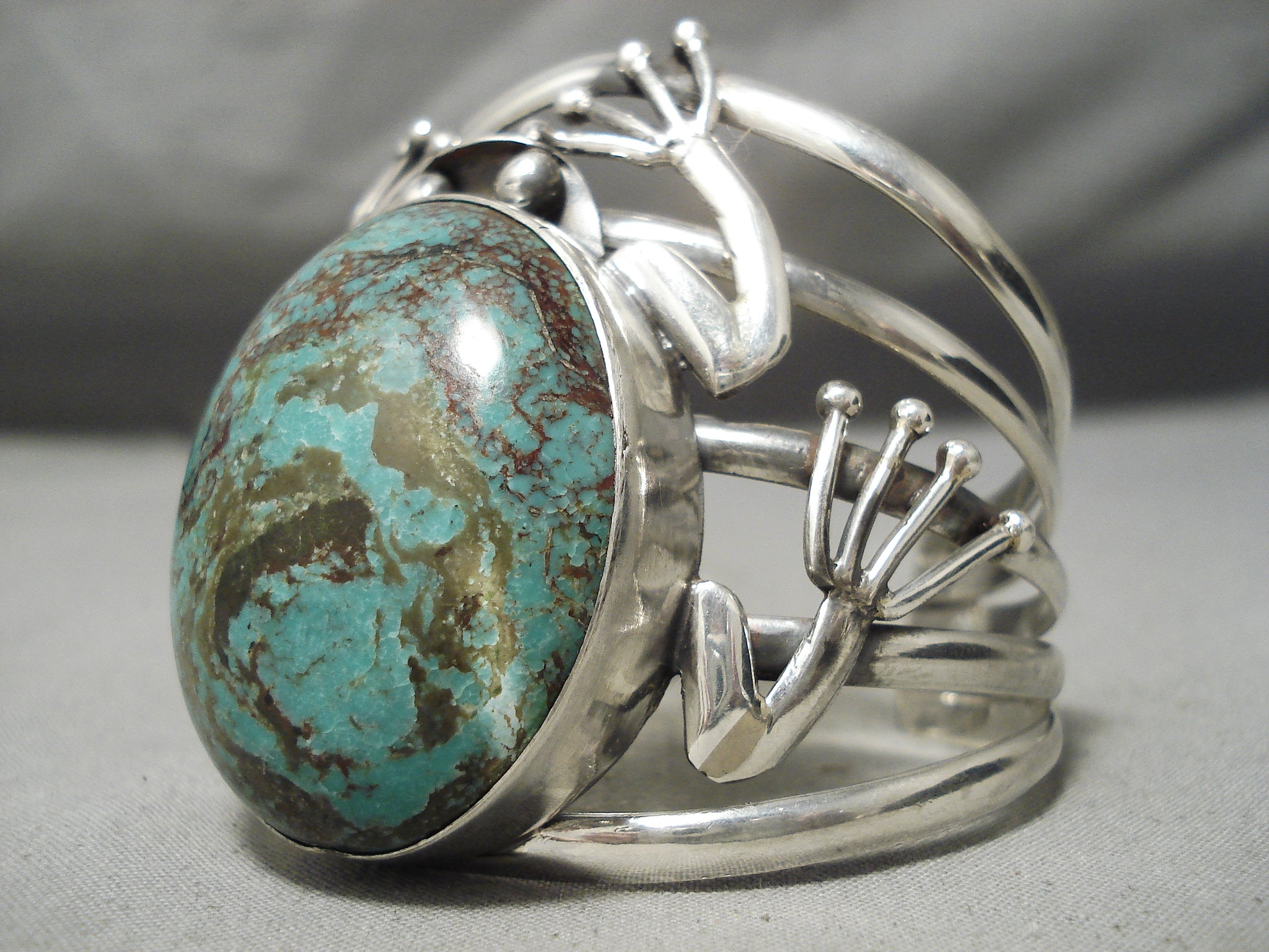 Huge Frog Vintage Native American Navajo Domed Green Turquoise Sterling Silver Bracelet