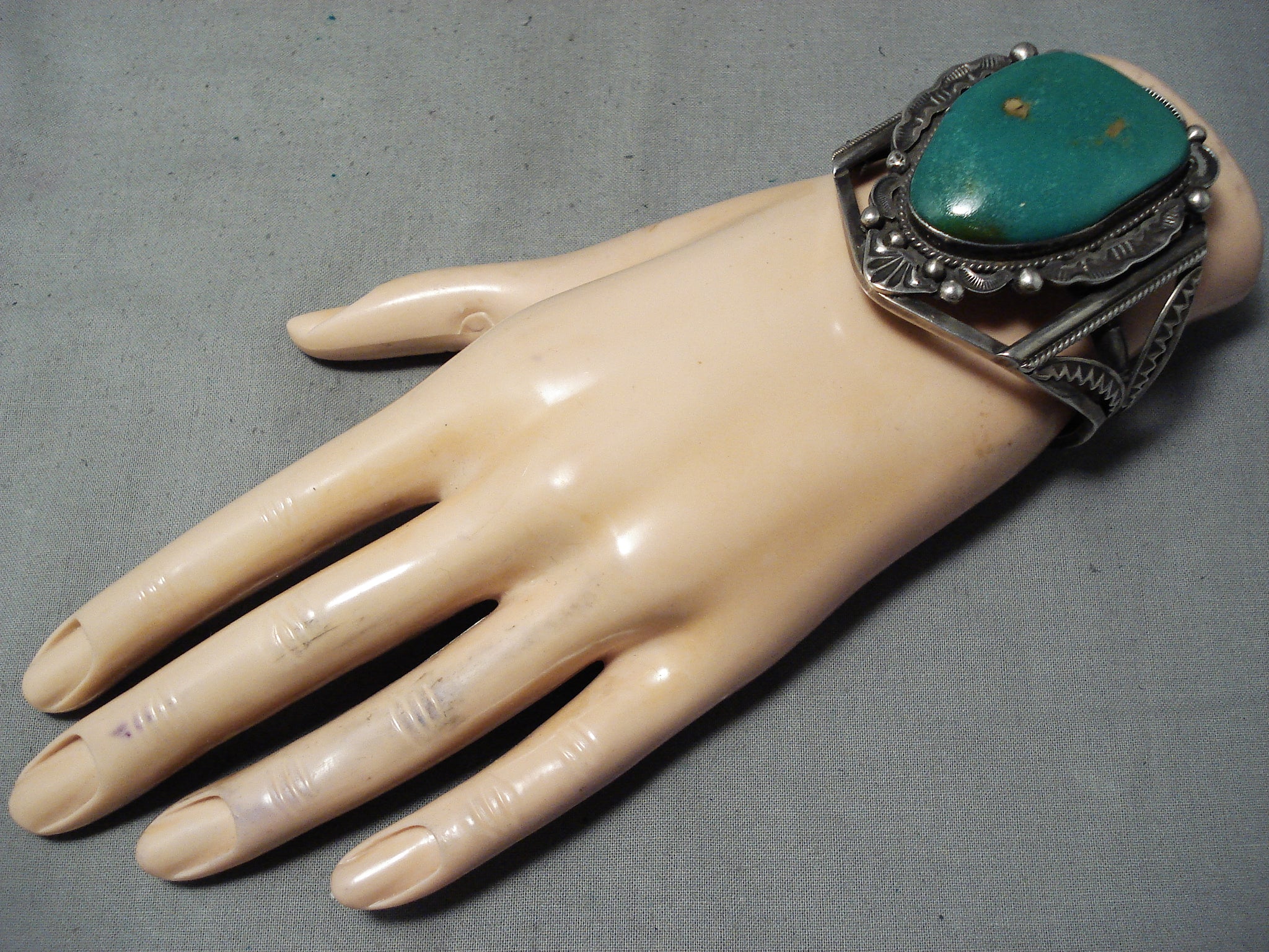 Huge Gil Tom Vintage Native American Navajo Royston Turquoise Sterling Silver Bracelet