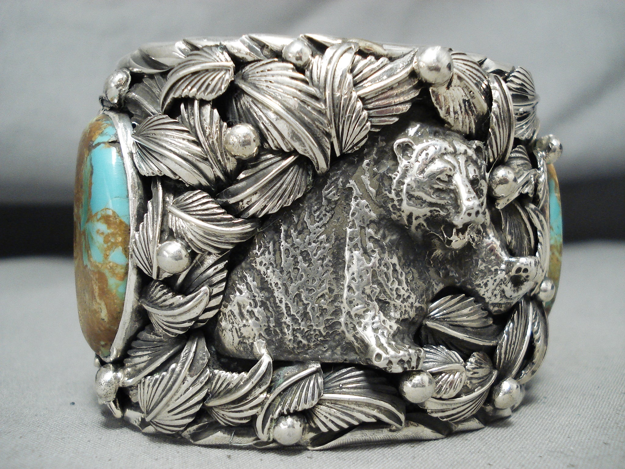 Huge Grizzly Native American Royston Turquoise Sterling Silver Bracelet
