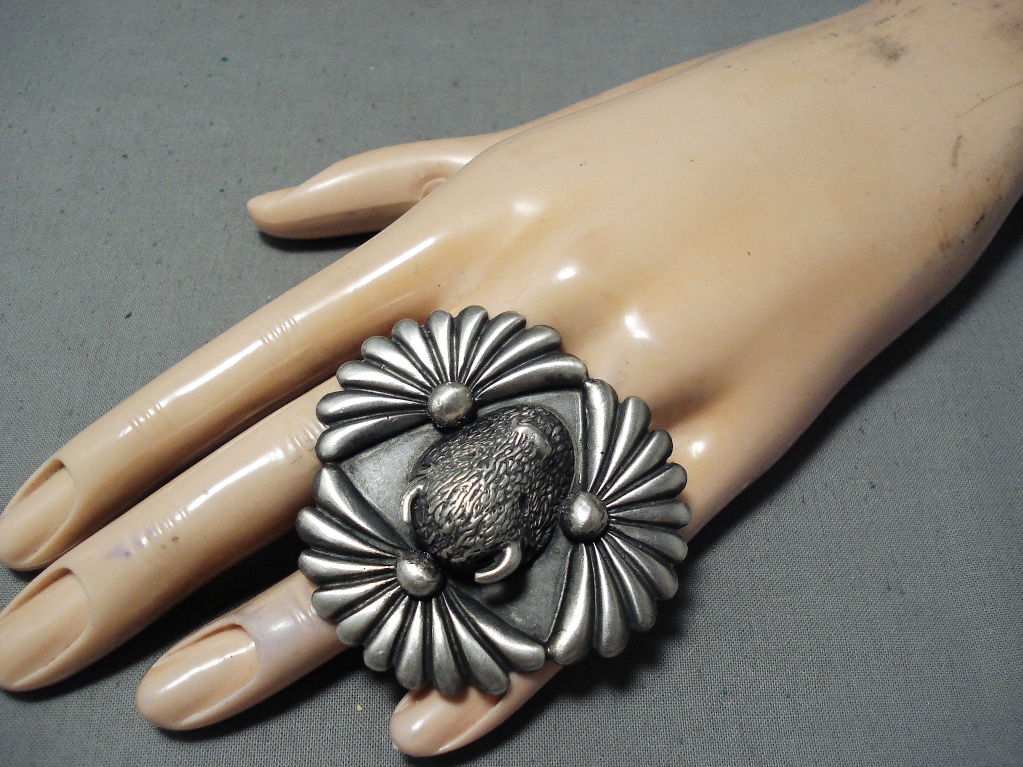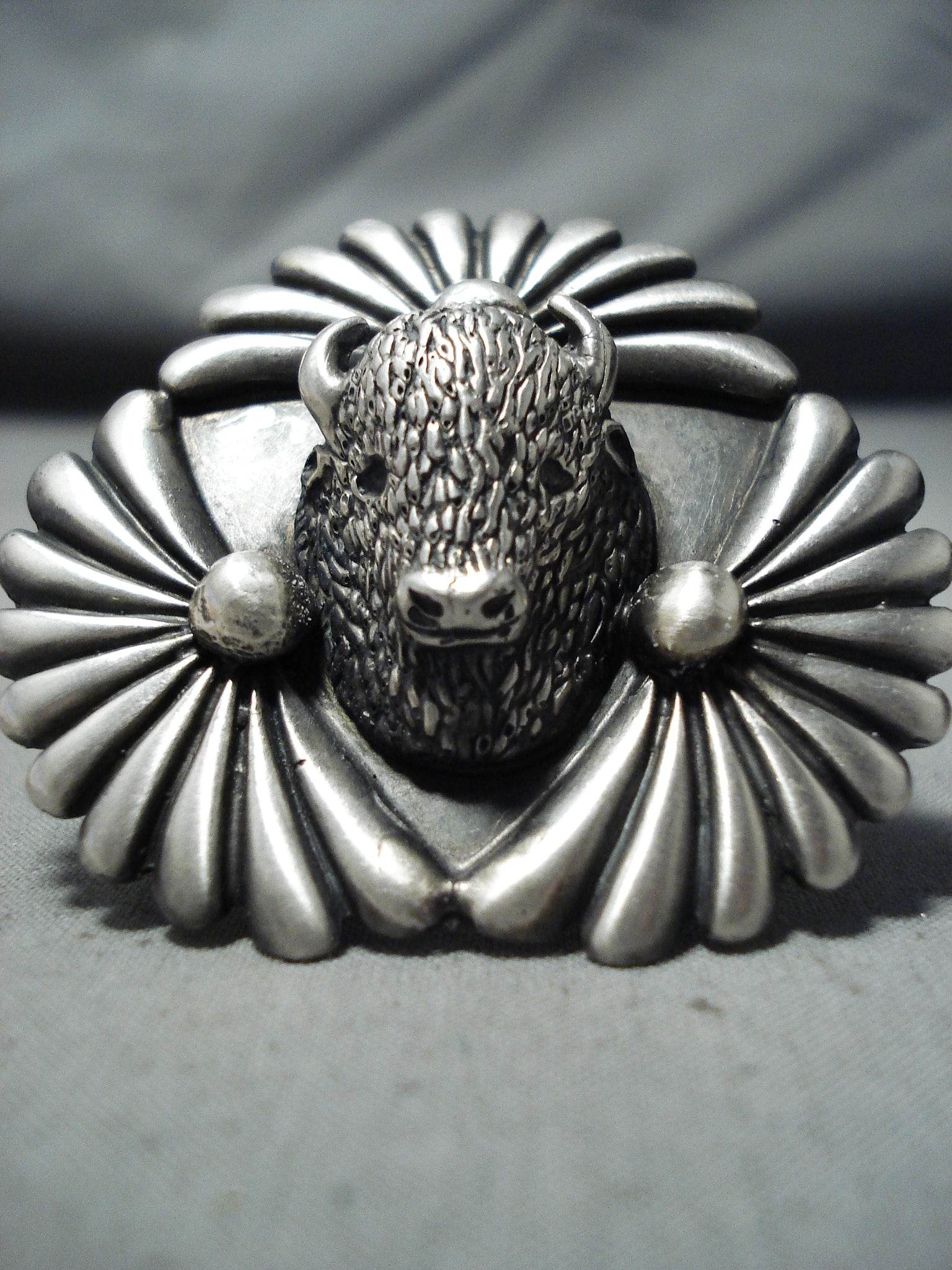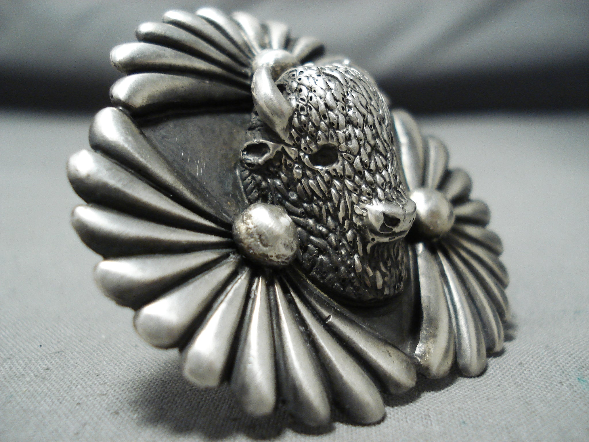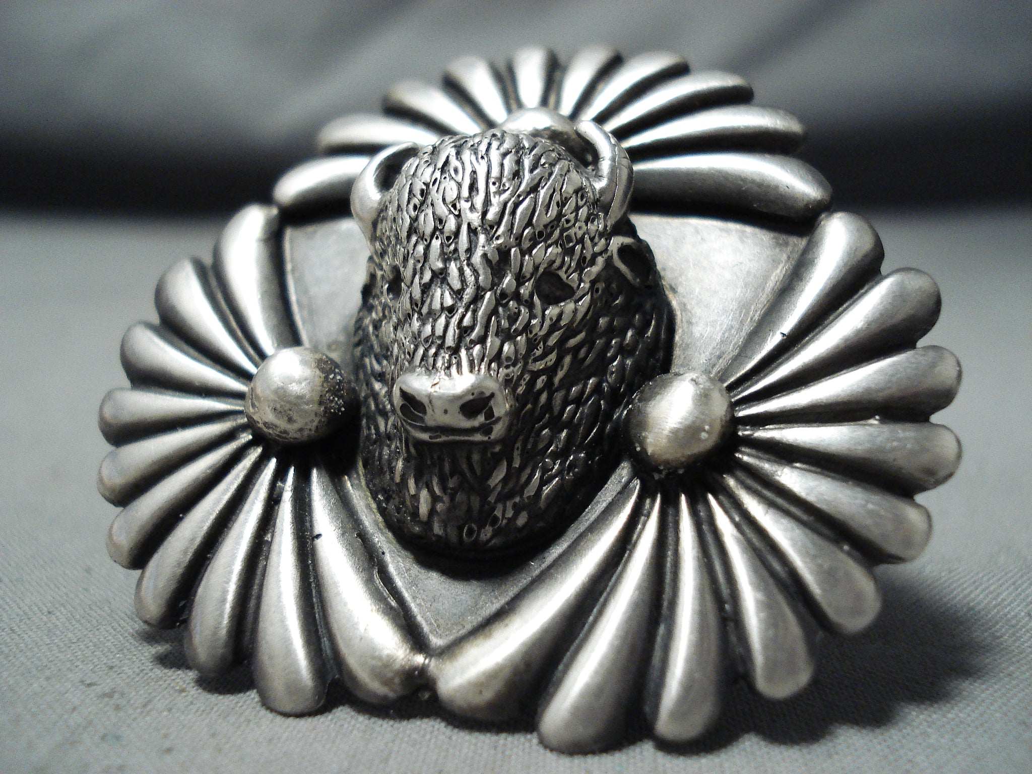 Huge Heavy Buffalo Native American Sterling Silver Ring
