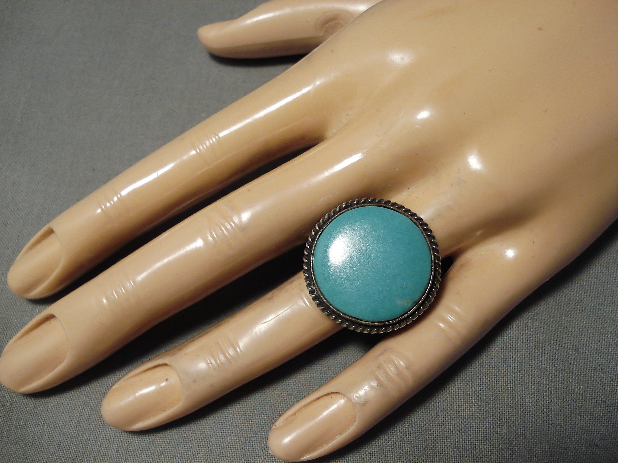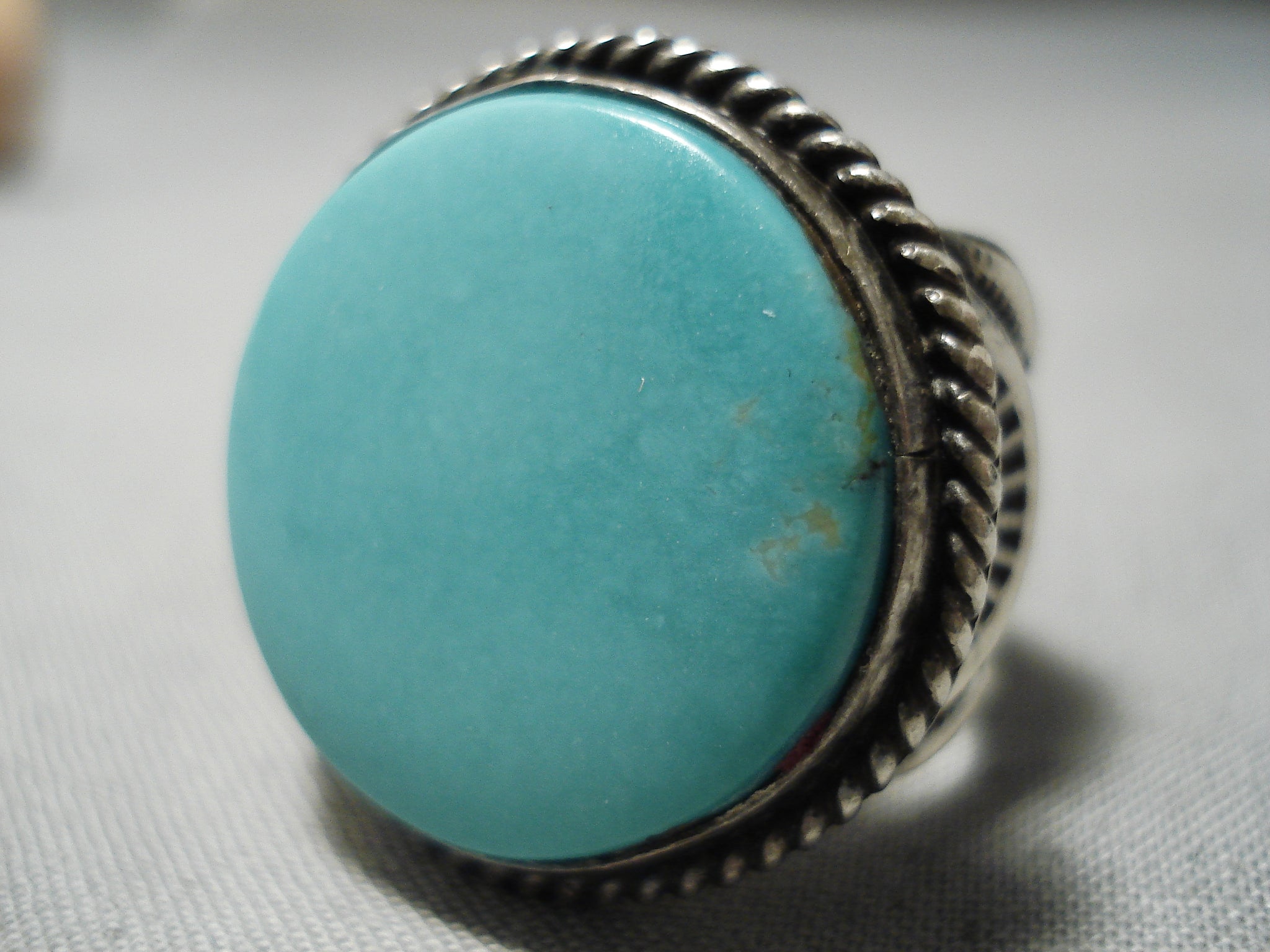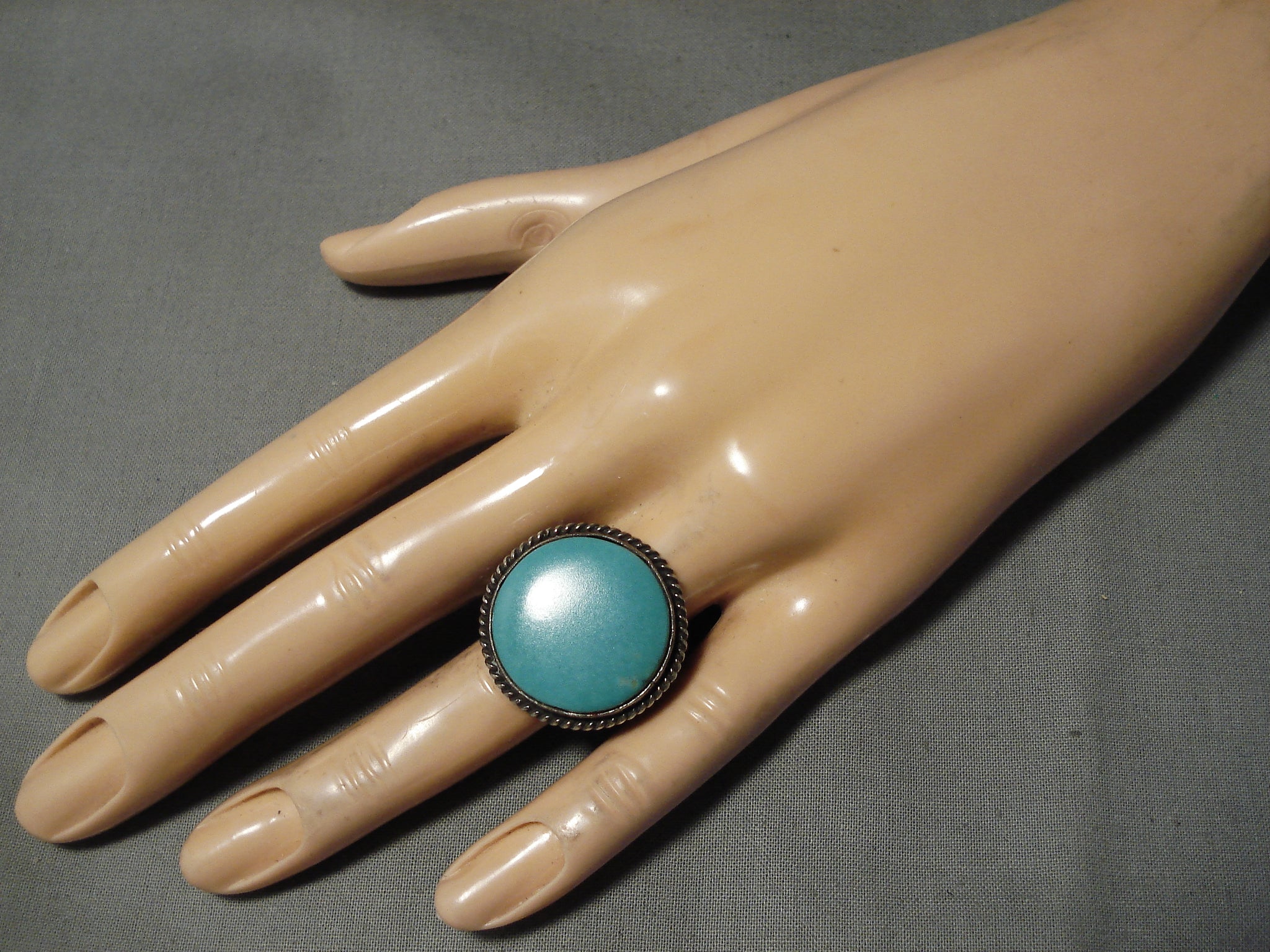 Huge Heavy Detailed Vintage Native American Navajo Men's Turquoise Sterling Silver Ring