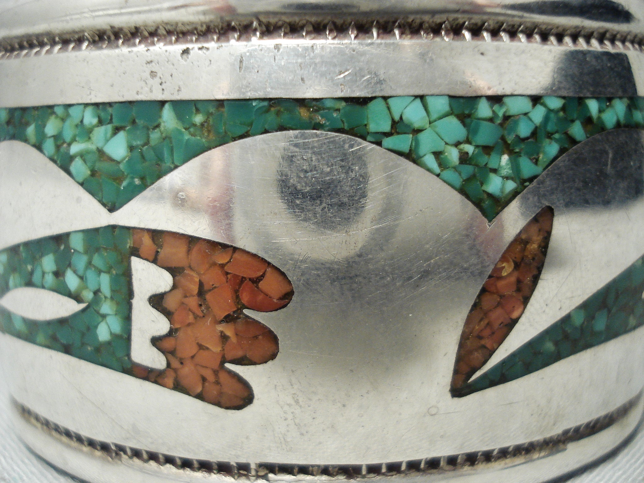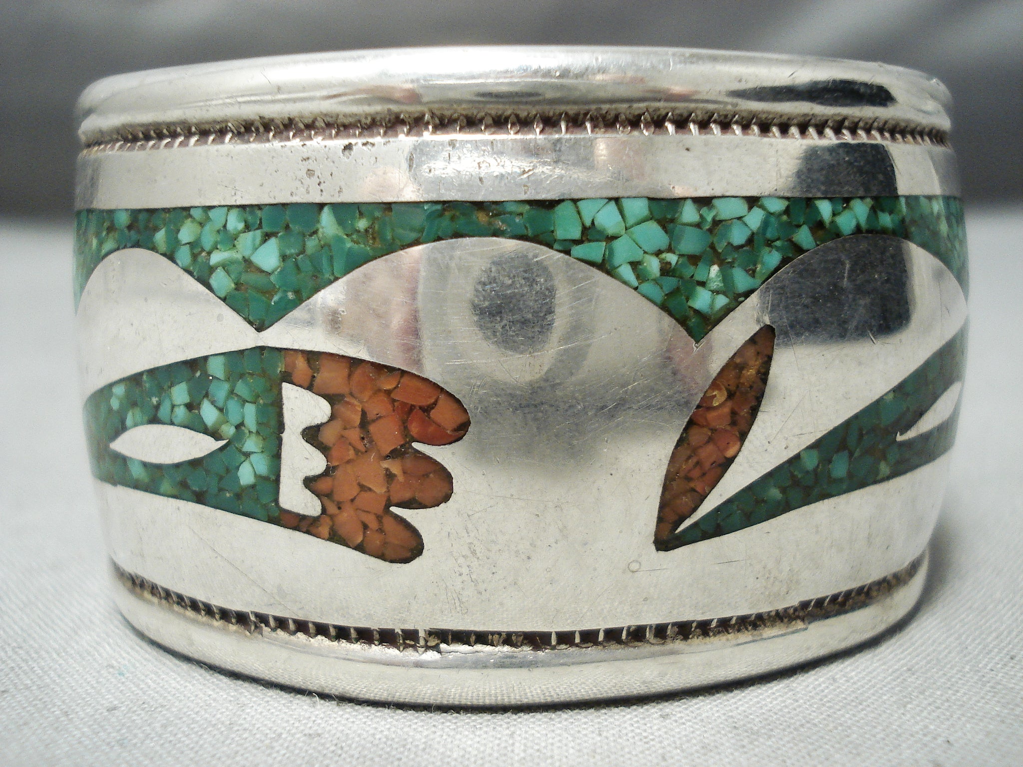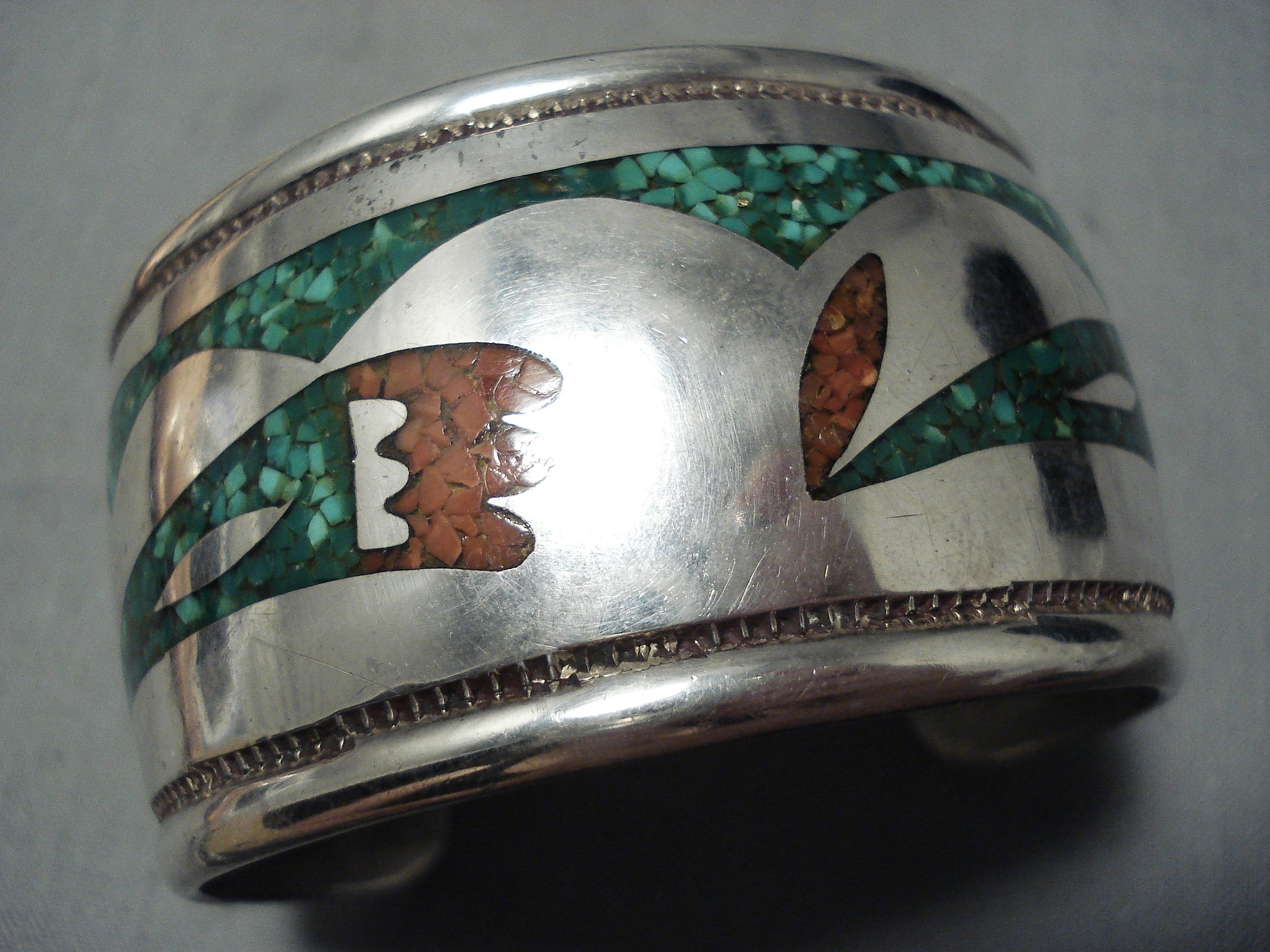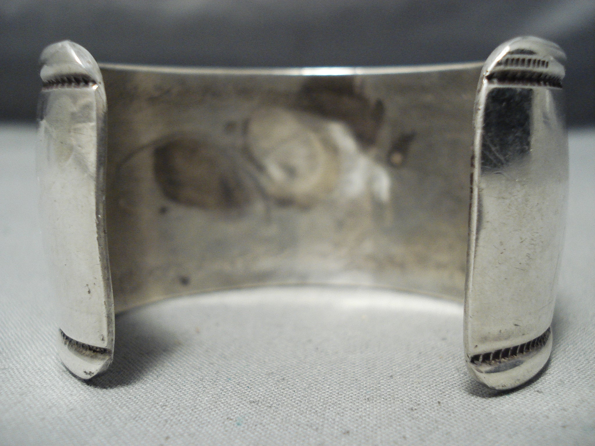 Huge Heavy Hand Tooled Vintage Native American Navajo Green Turquoise Sterling Silver Bracelet