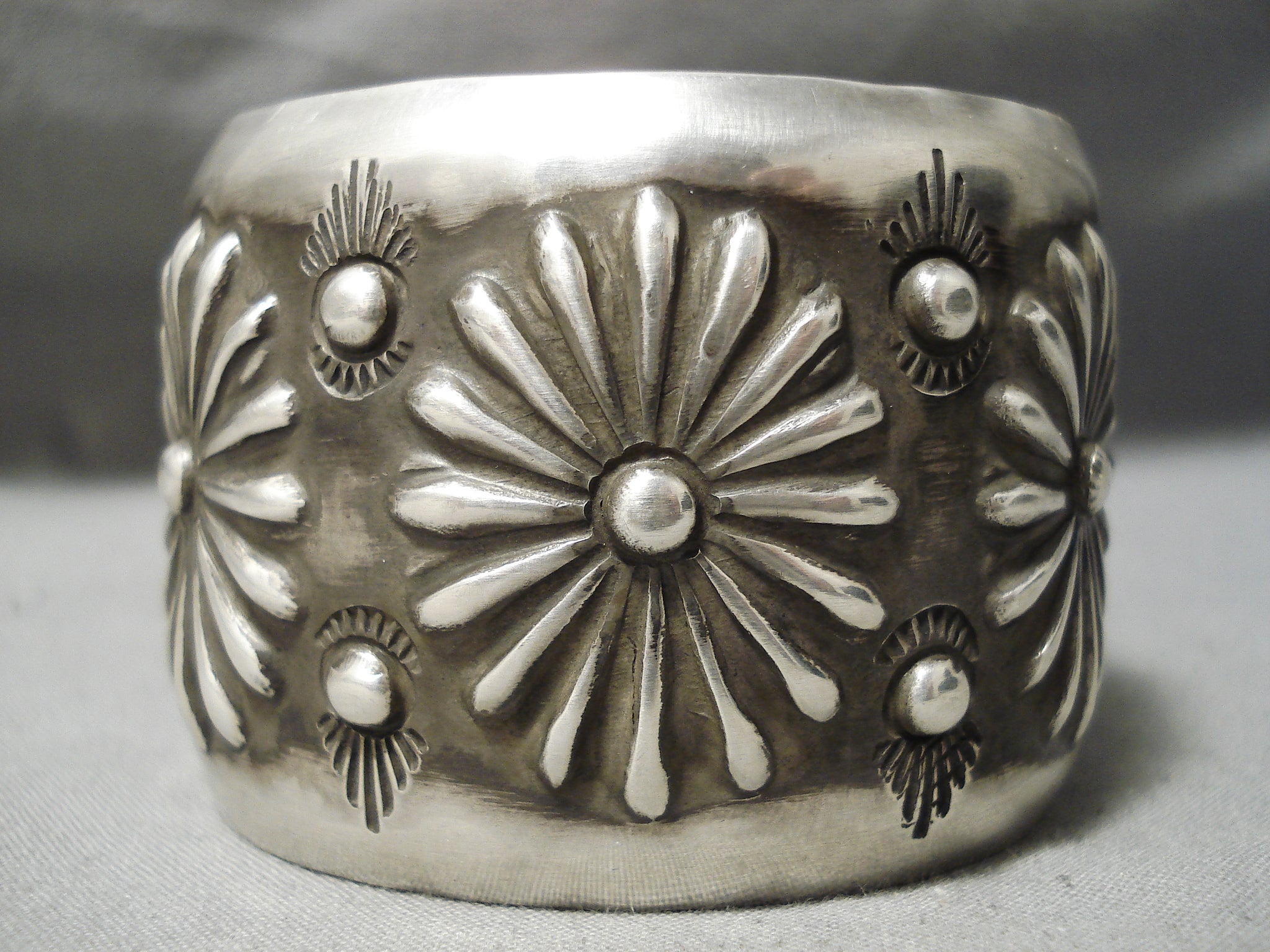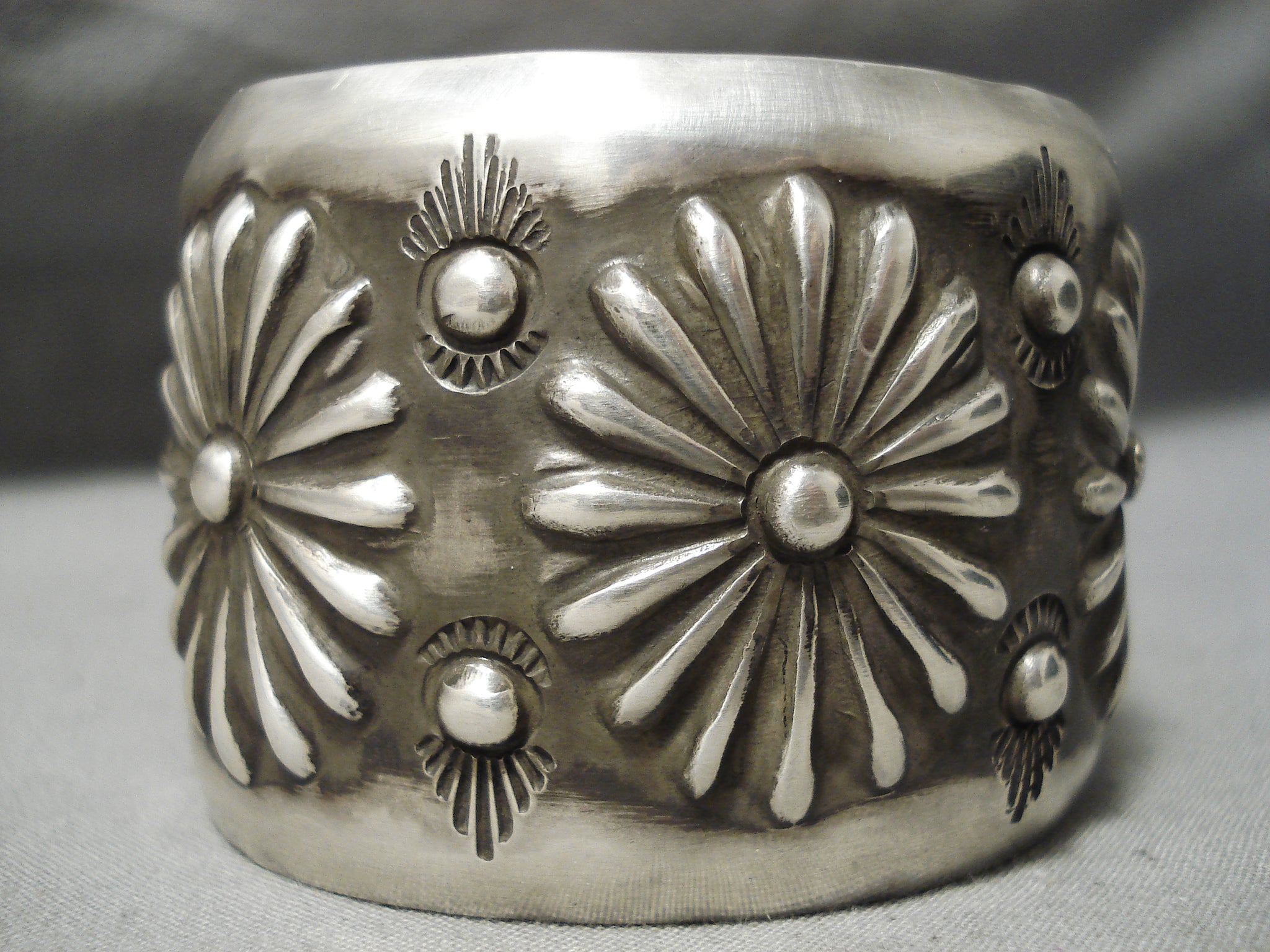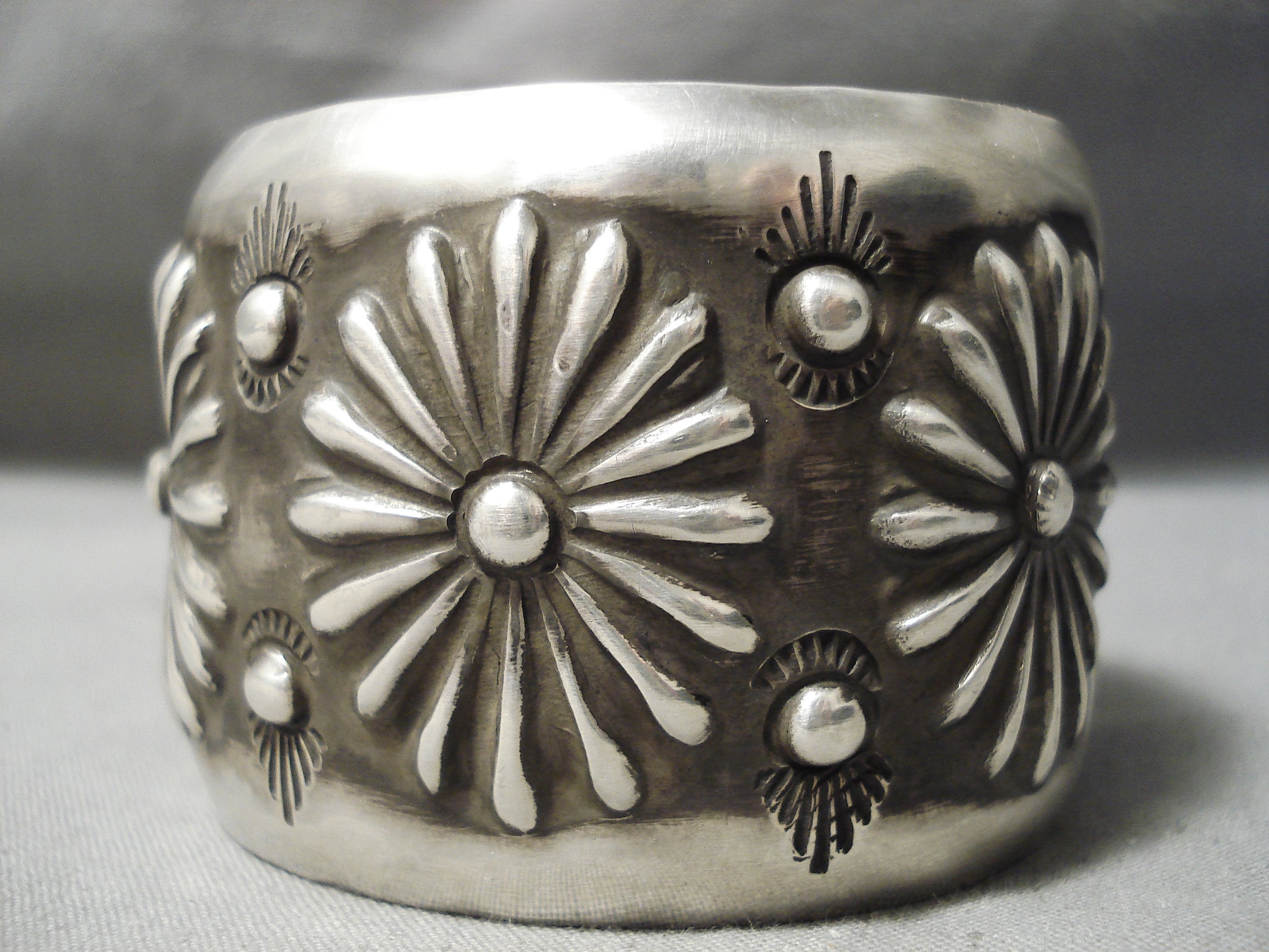 Huge Heavy Hand Tooled Vintage Native American Navajo Sterling Silver Shell Bracelet Cuff