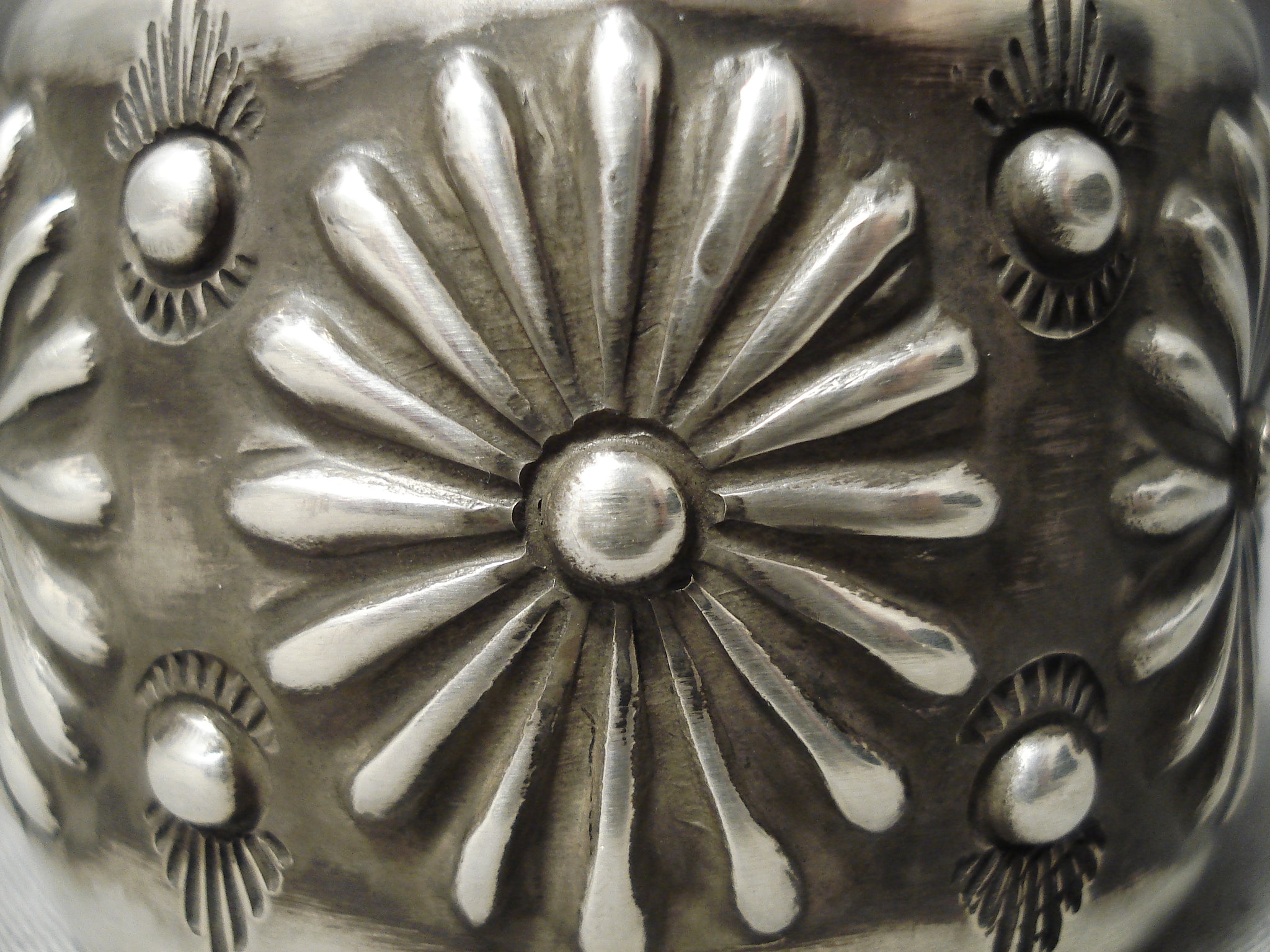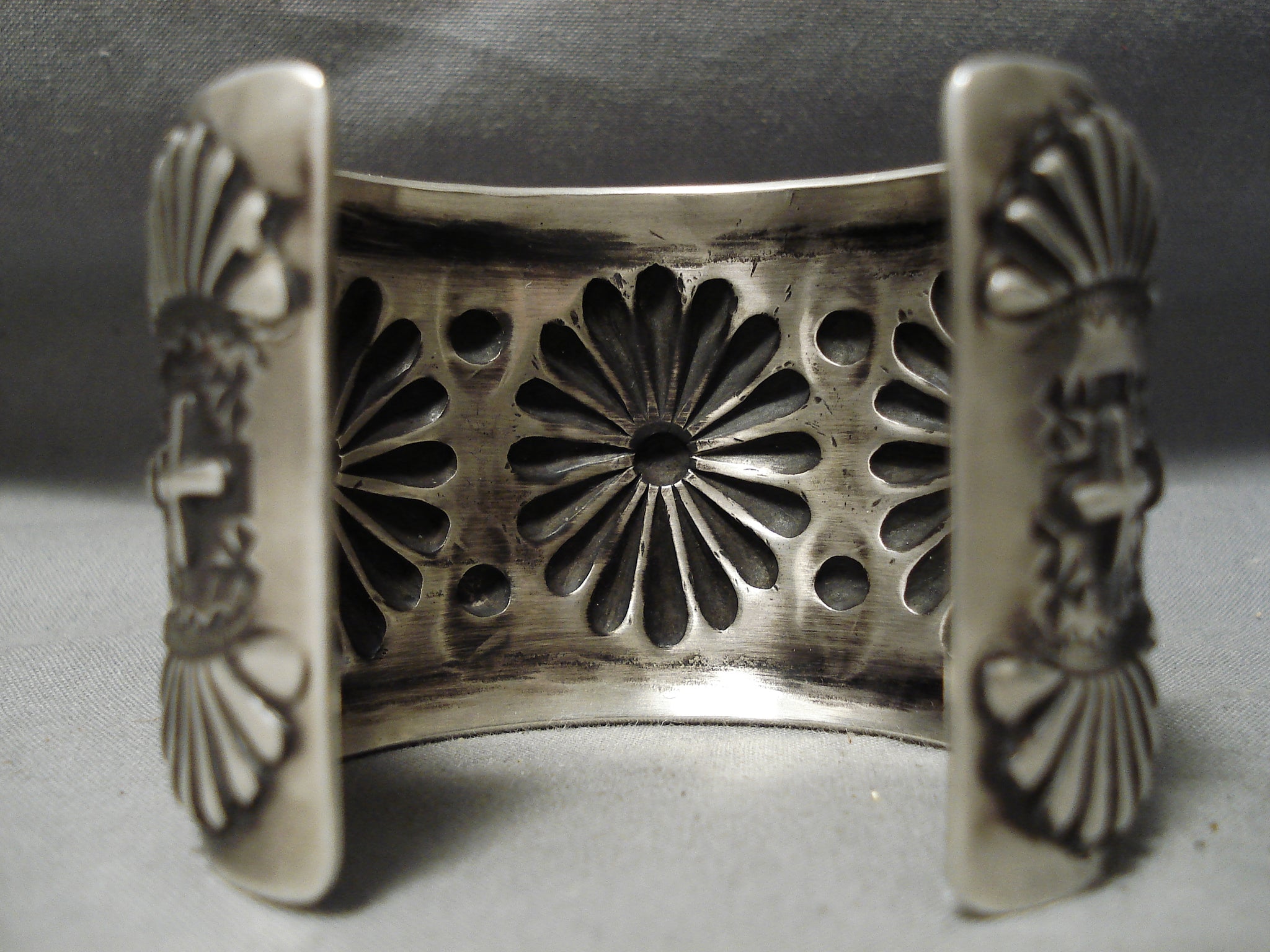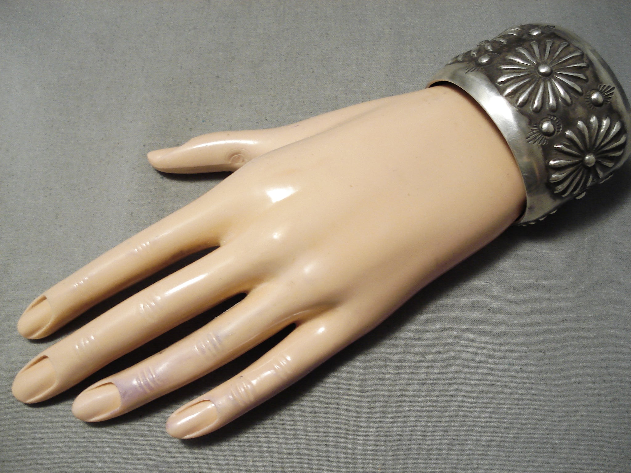 Huge Heavy Hand Tooled Vintage Native American Navajo Sterling Silver Shell Bracelet Cuff