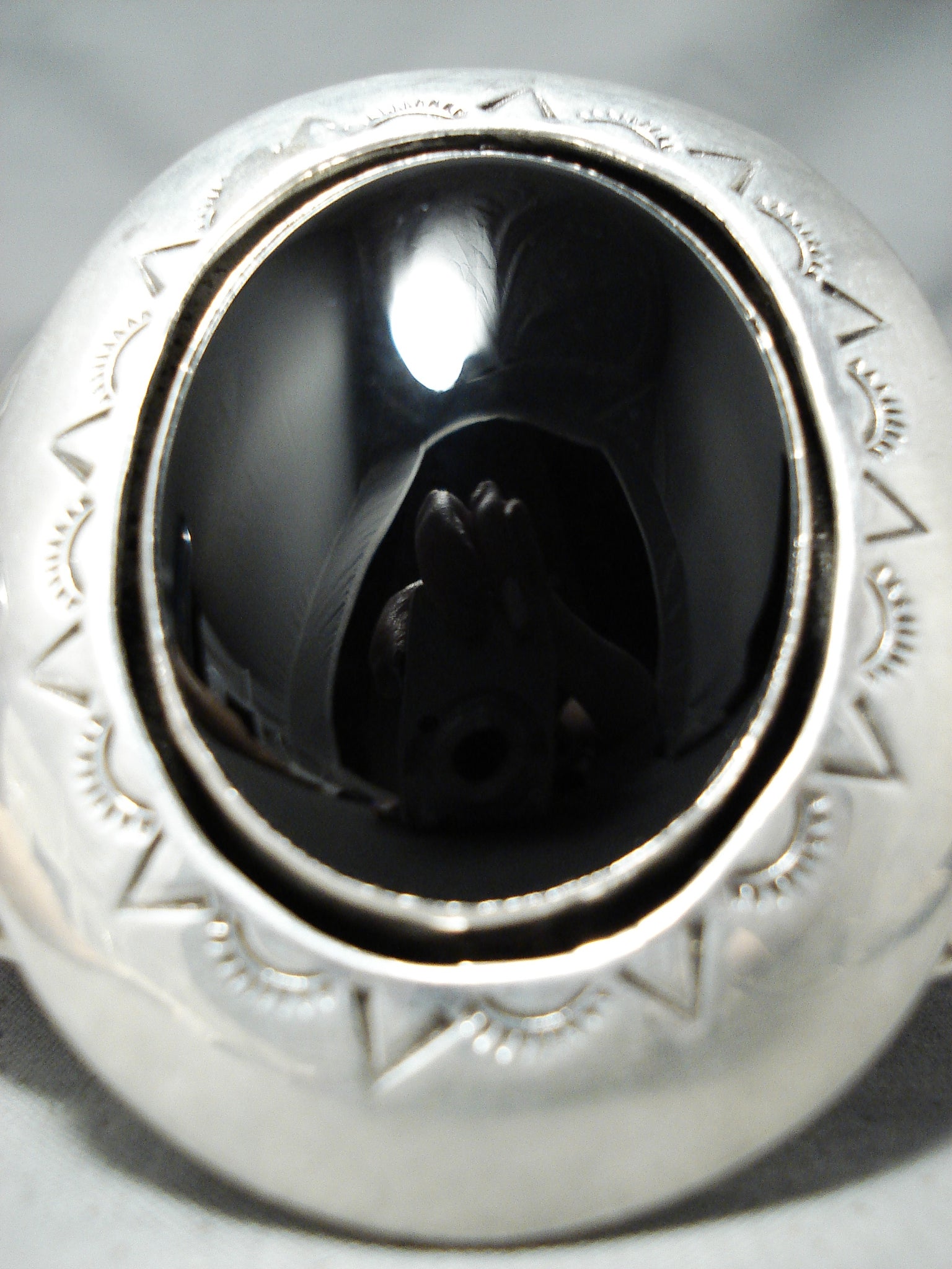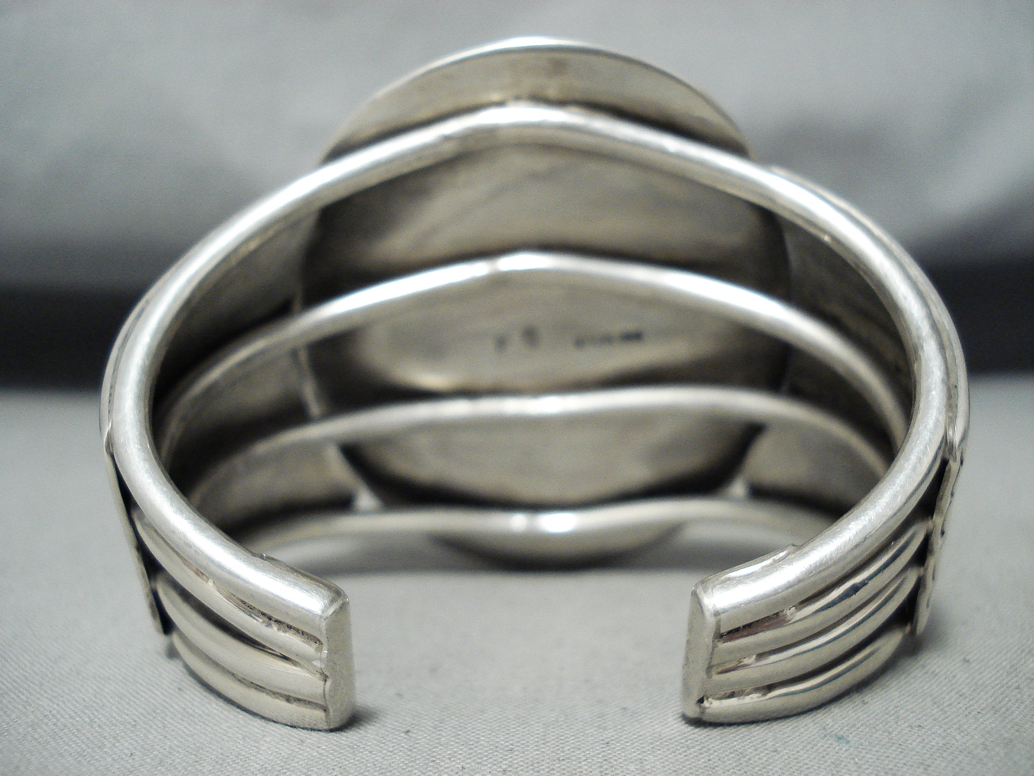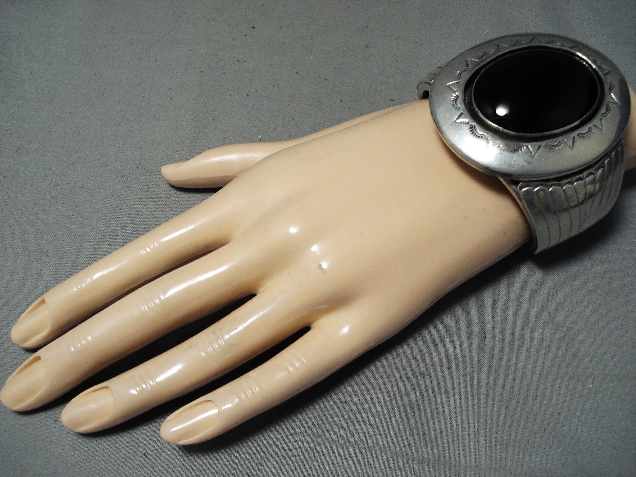 Huge Heavy Signed Vintage Native American Navajo Jet Sterling Silver Bracelet