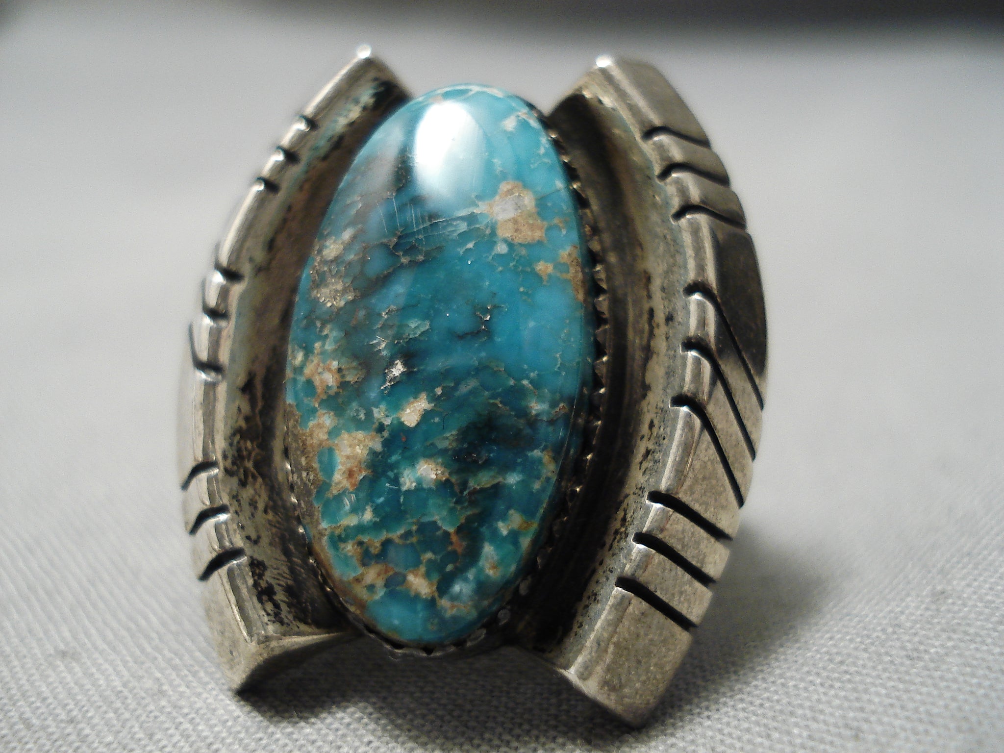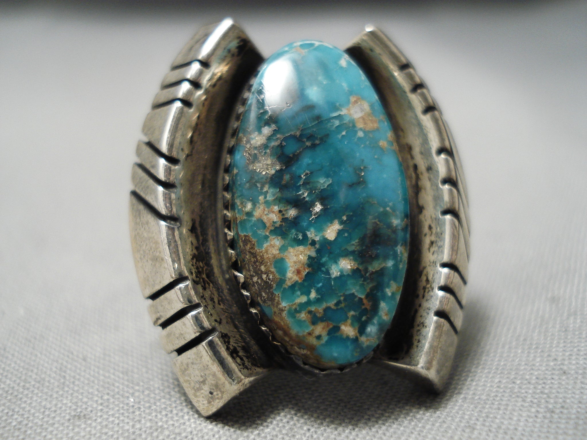 Huge Heavy Thick Vintage Native American Navajo Aqua Blue Turquoise Sterling Silver Ring Old