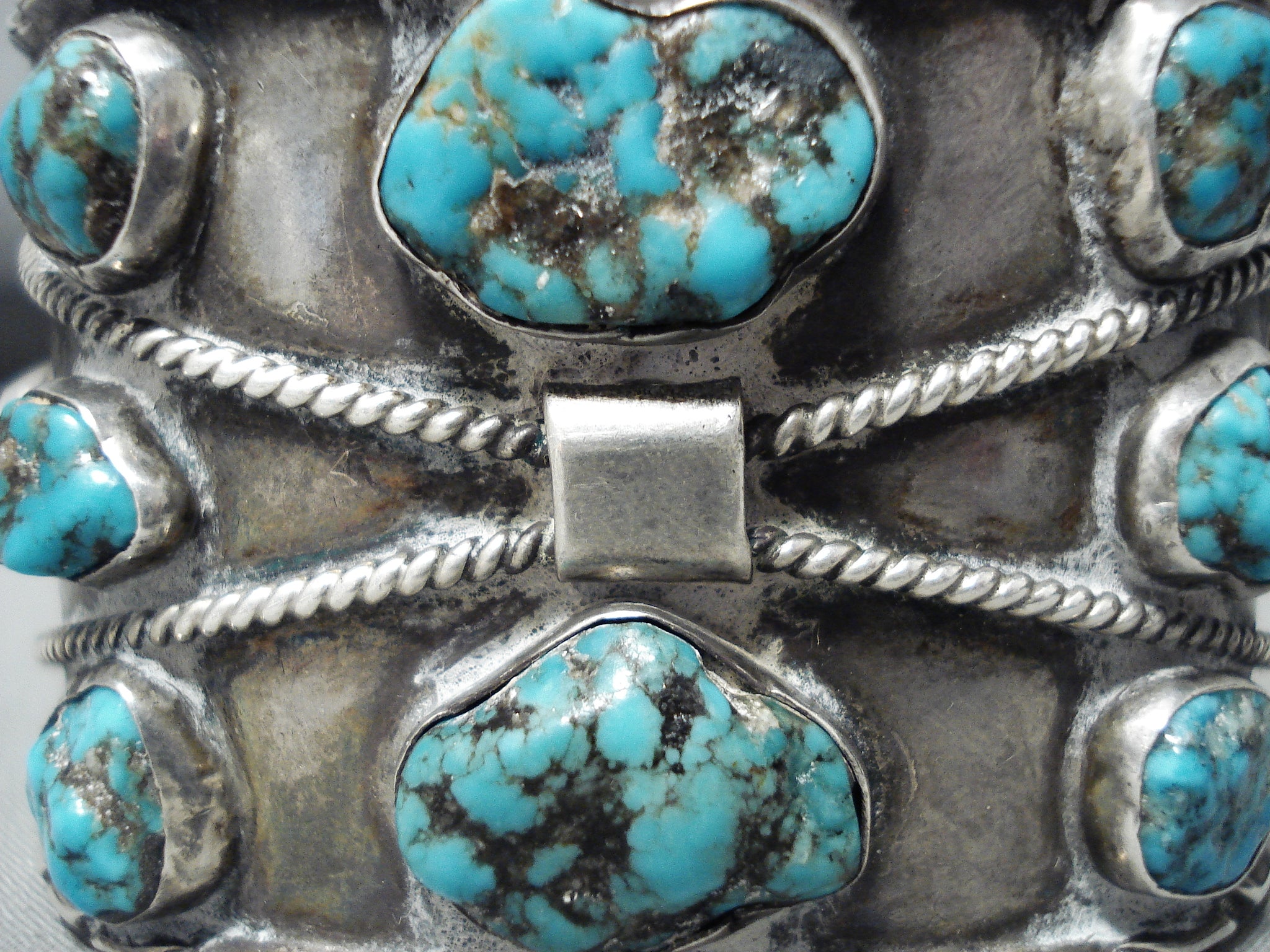 Huge Heavy Thick Vintage Native American Navajo Turquoise Sterling Silver Bracelet Old