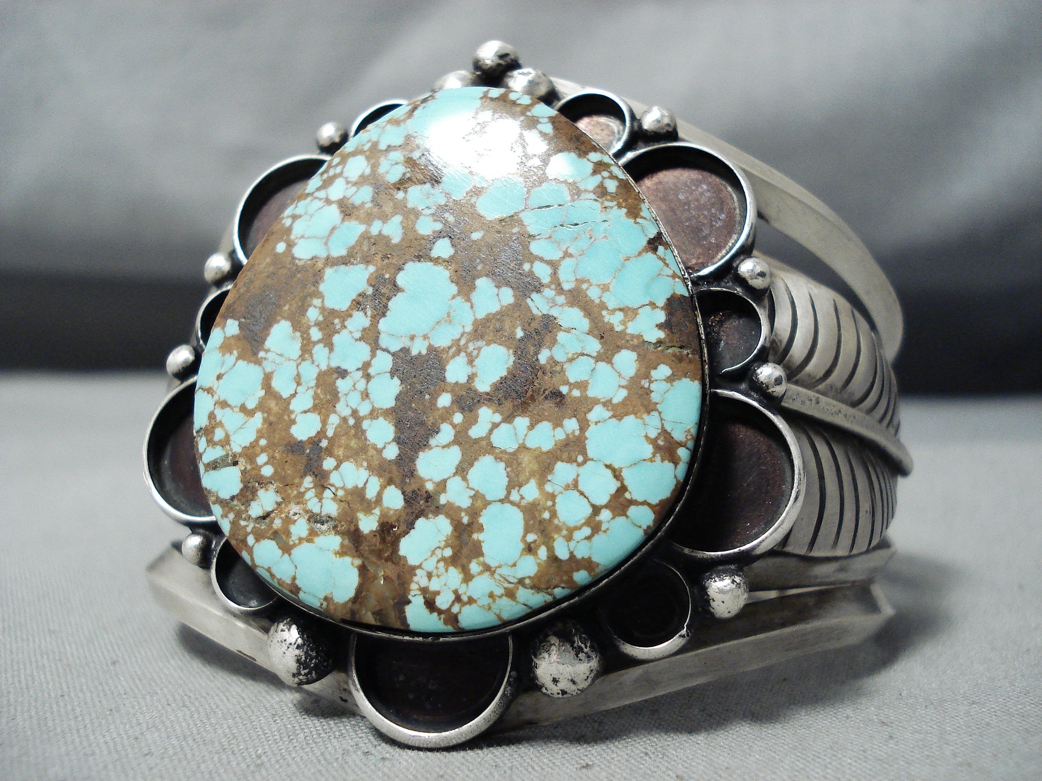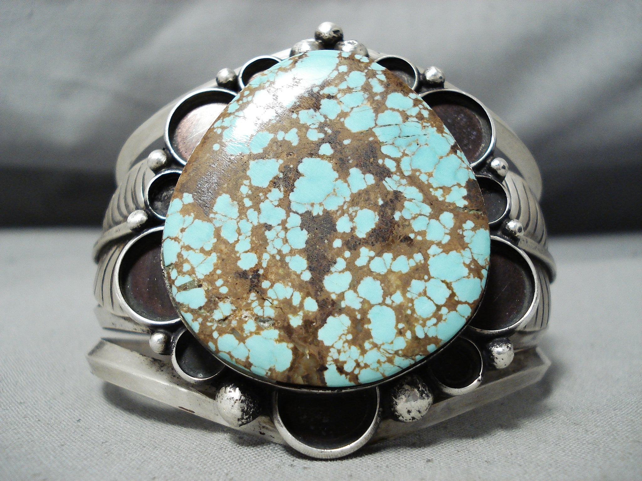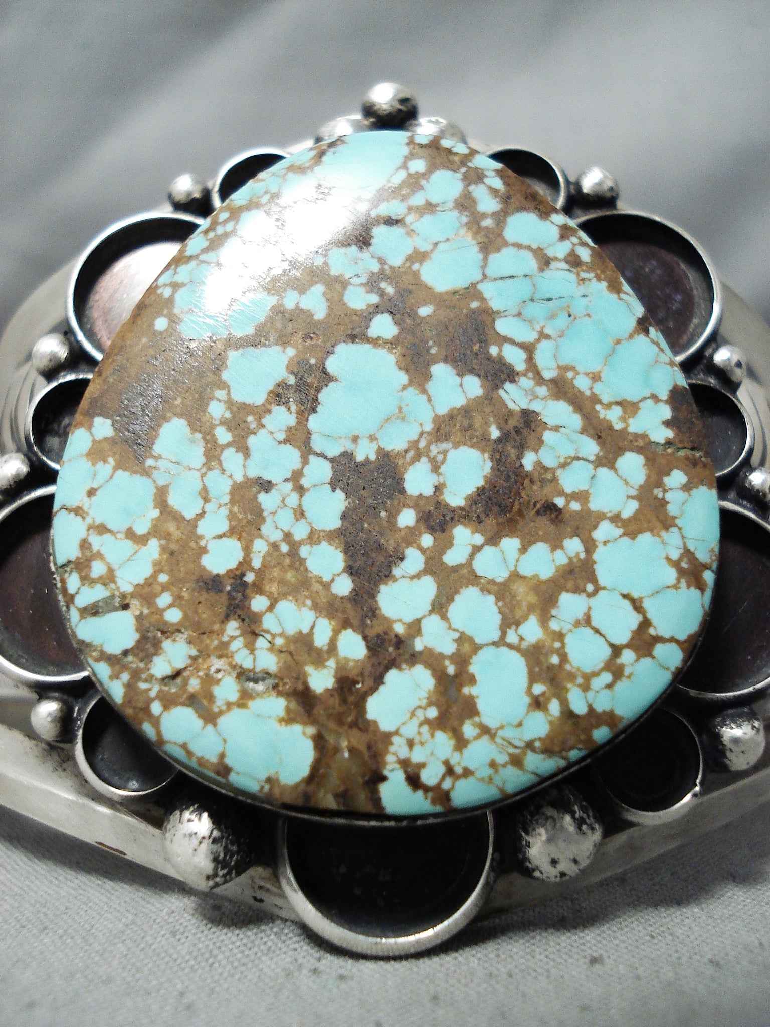 Huge Heavy Vintage Native American Navajo #8 Turquoise Sterling Silver Bracelet
