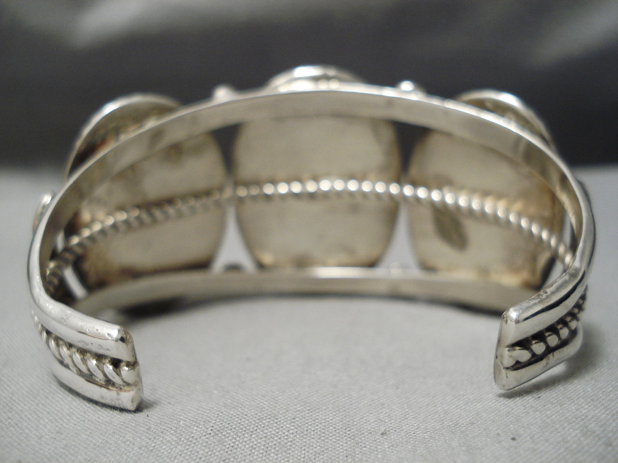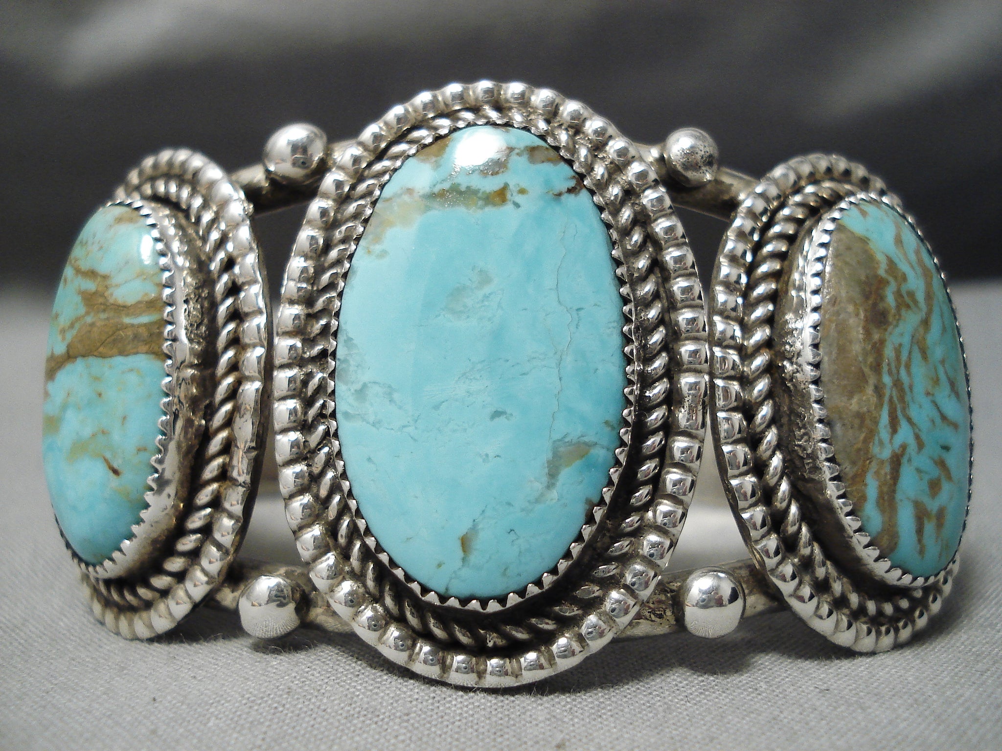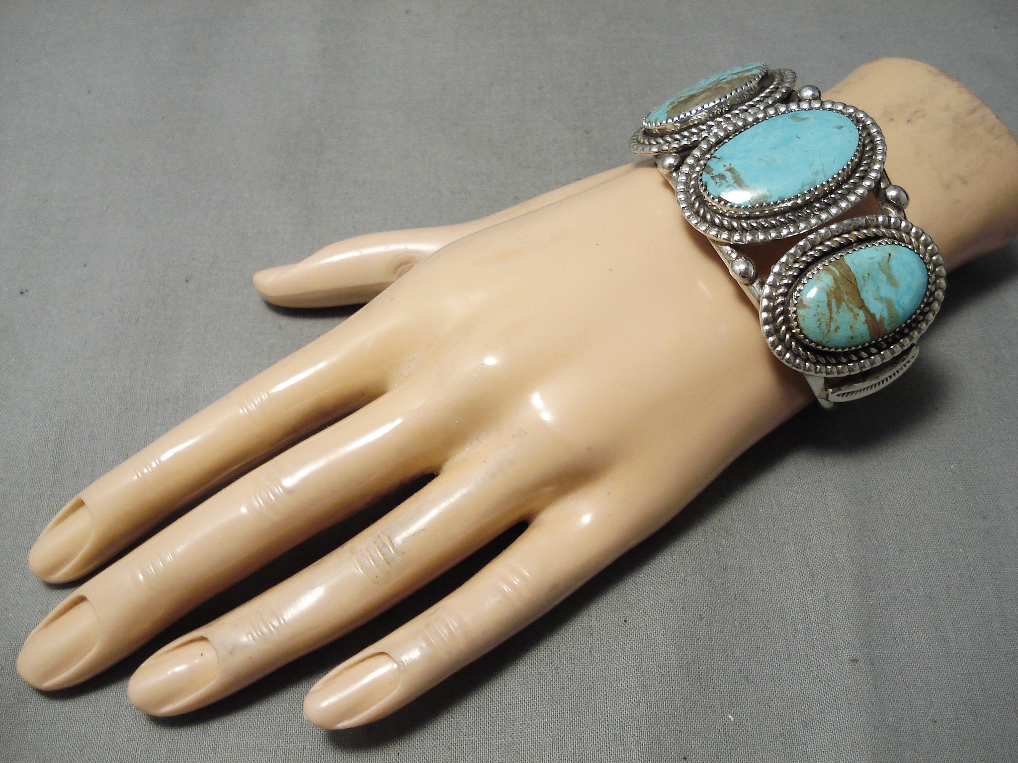 Huge Heavy Vintage Native American Navajo #8 Turquoise Sterling Silver Bracelet Old