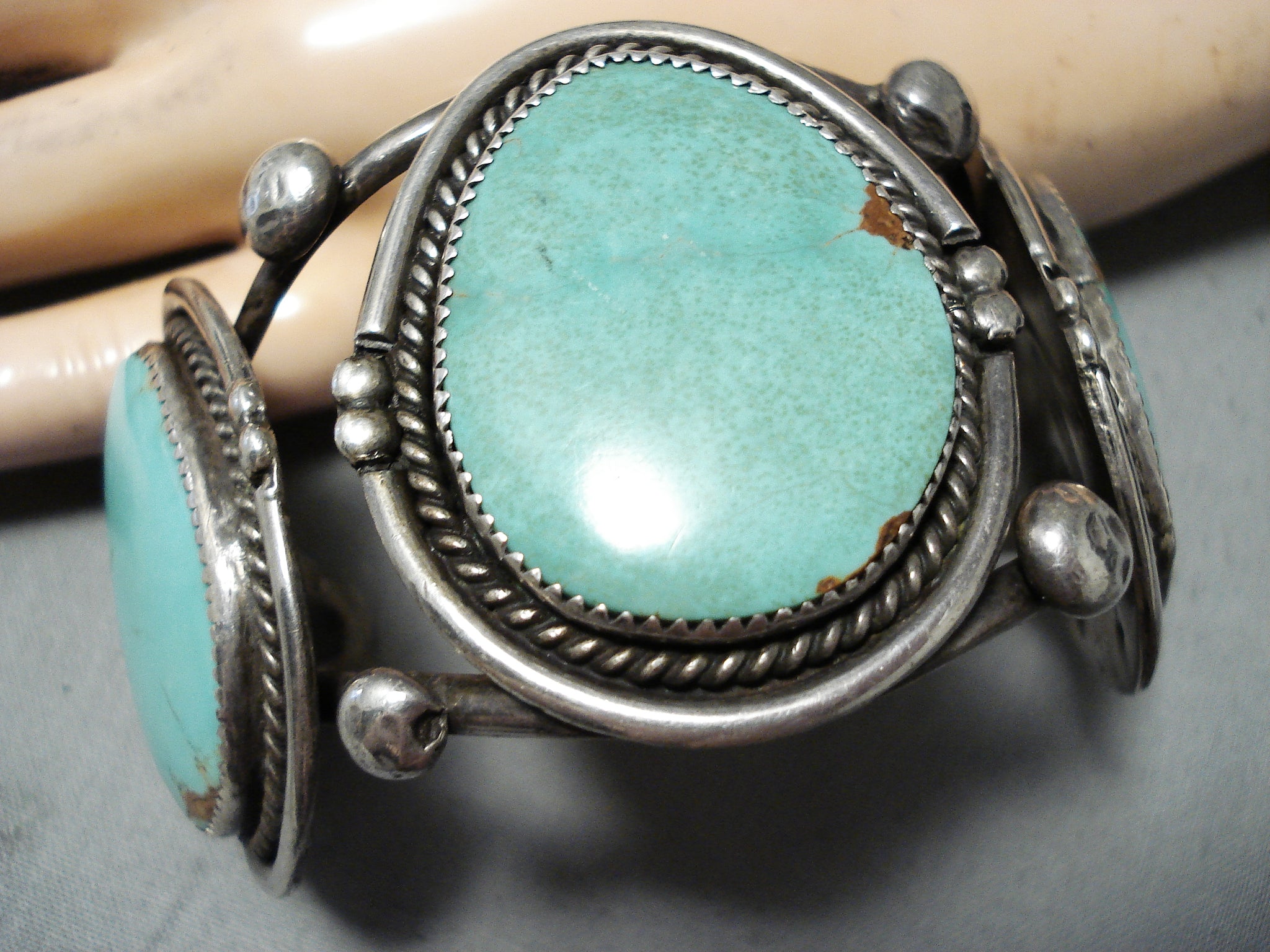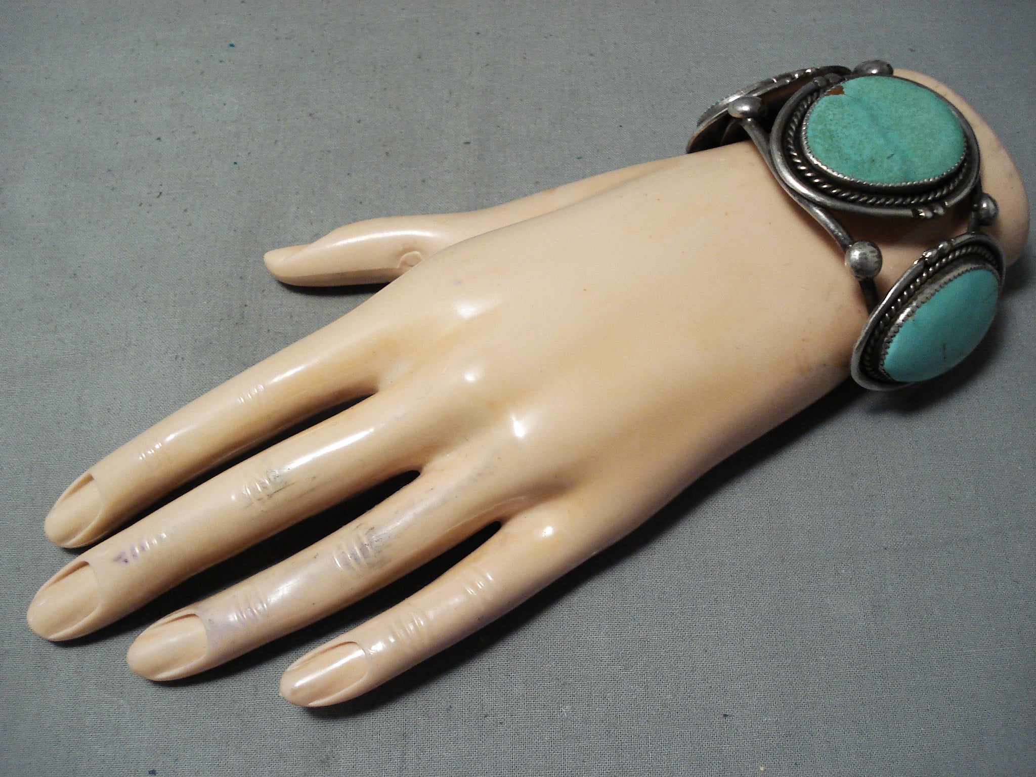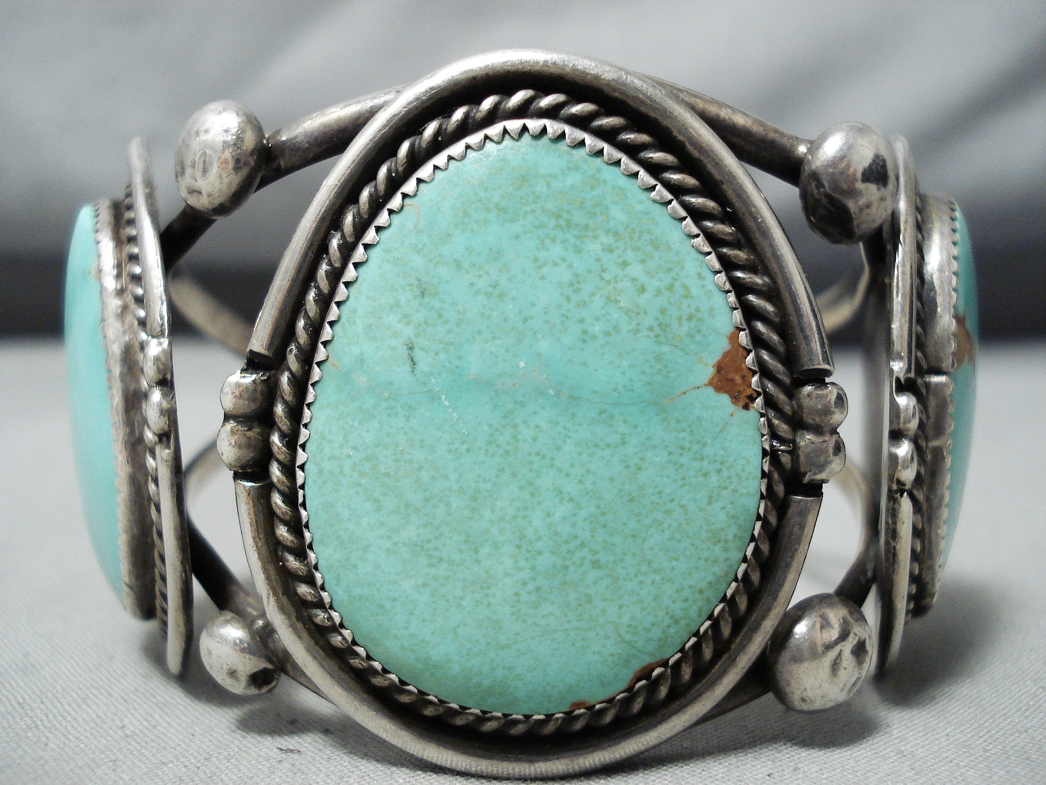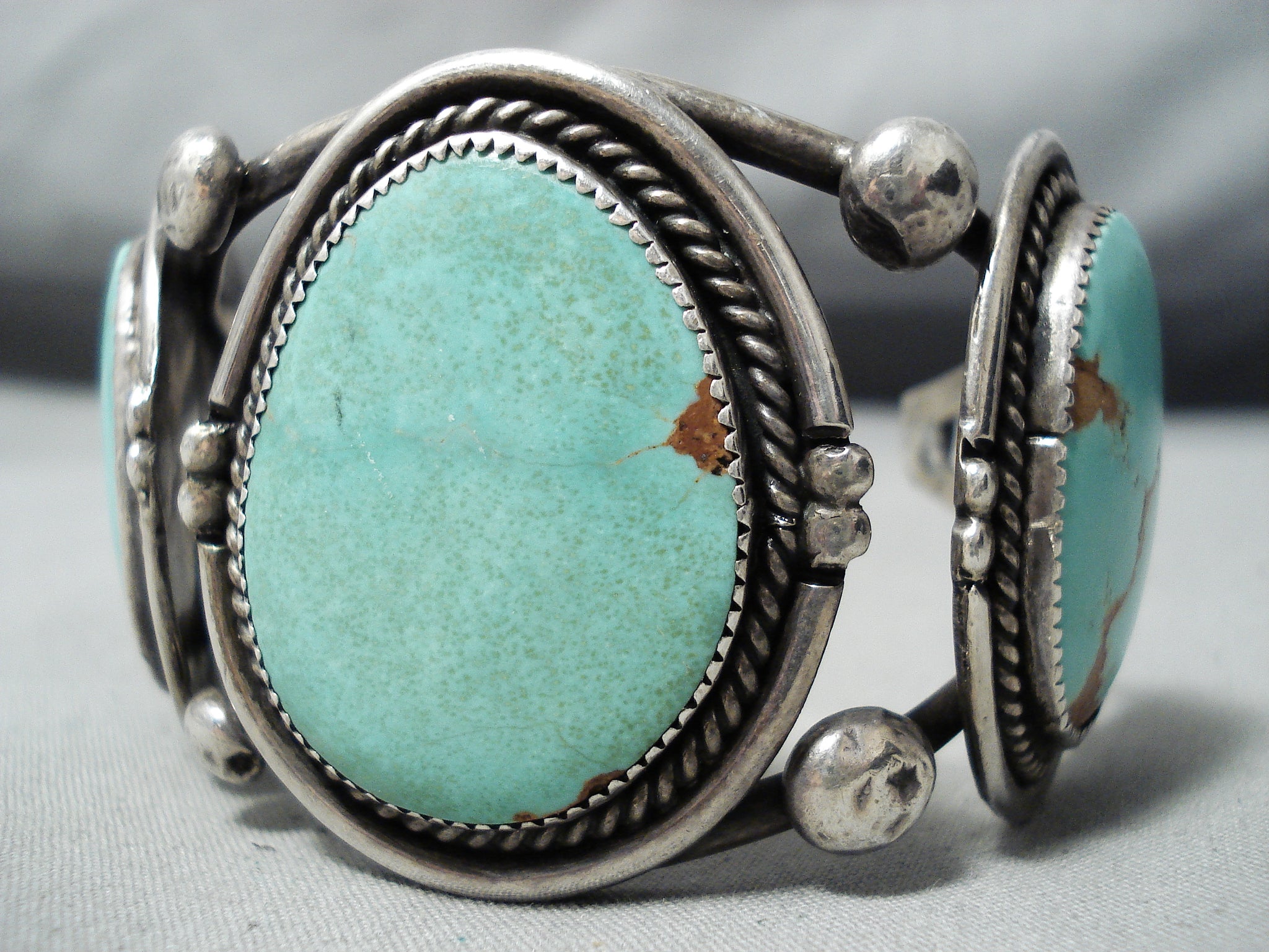 Huge Heavy Vintage Native American Navajo Royston Turquoise Sterling Silver Bracelet