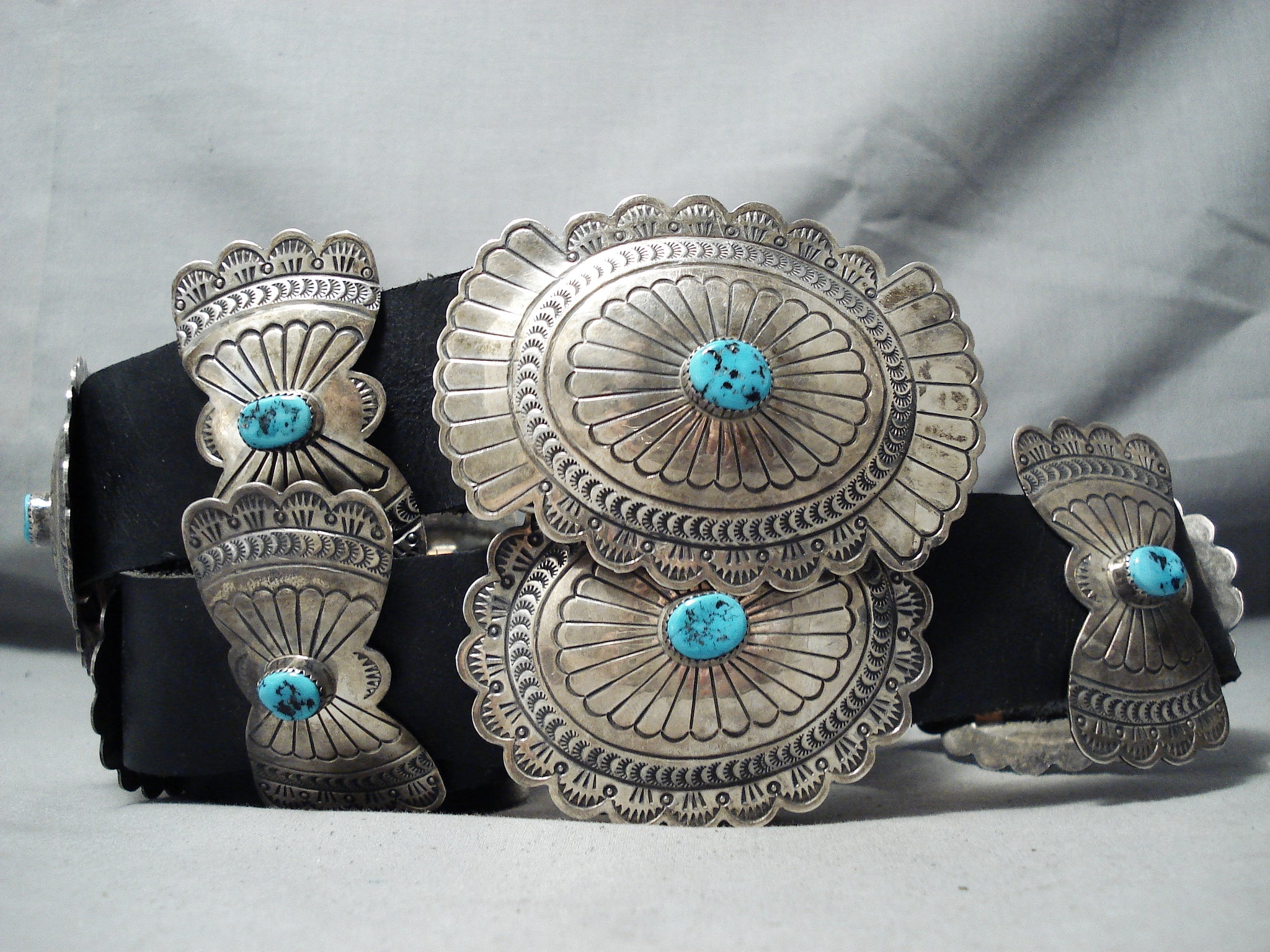 Huge Heavy Vintage Native American Navajo Sleeping Beauty Turquoise Sterling Silver Concho Belt