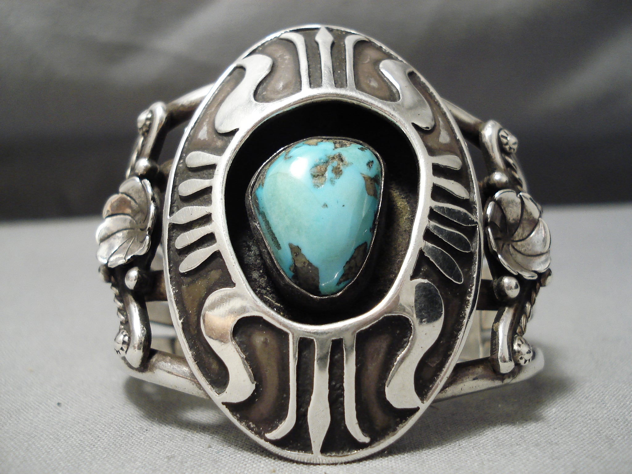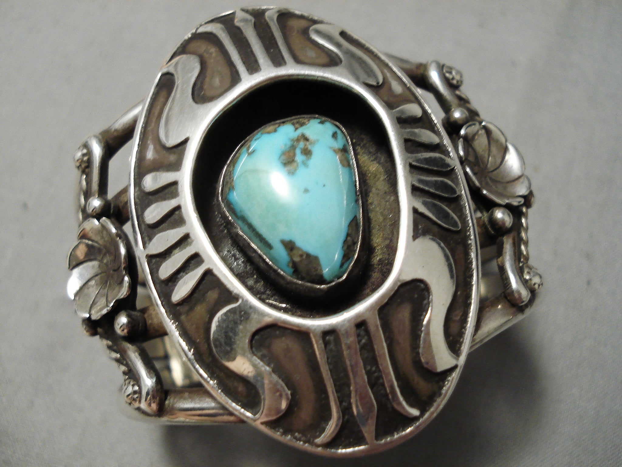 Huge Heavy Vintage Native American Navajo Sterling Silver Shield Turquoise Bracelet Old