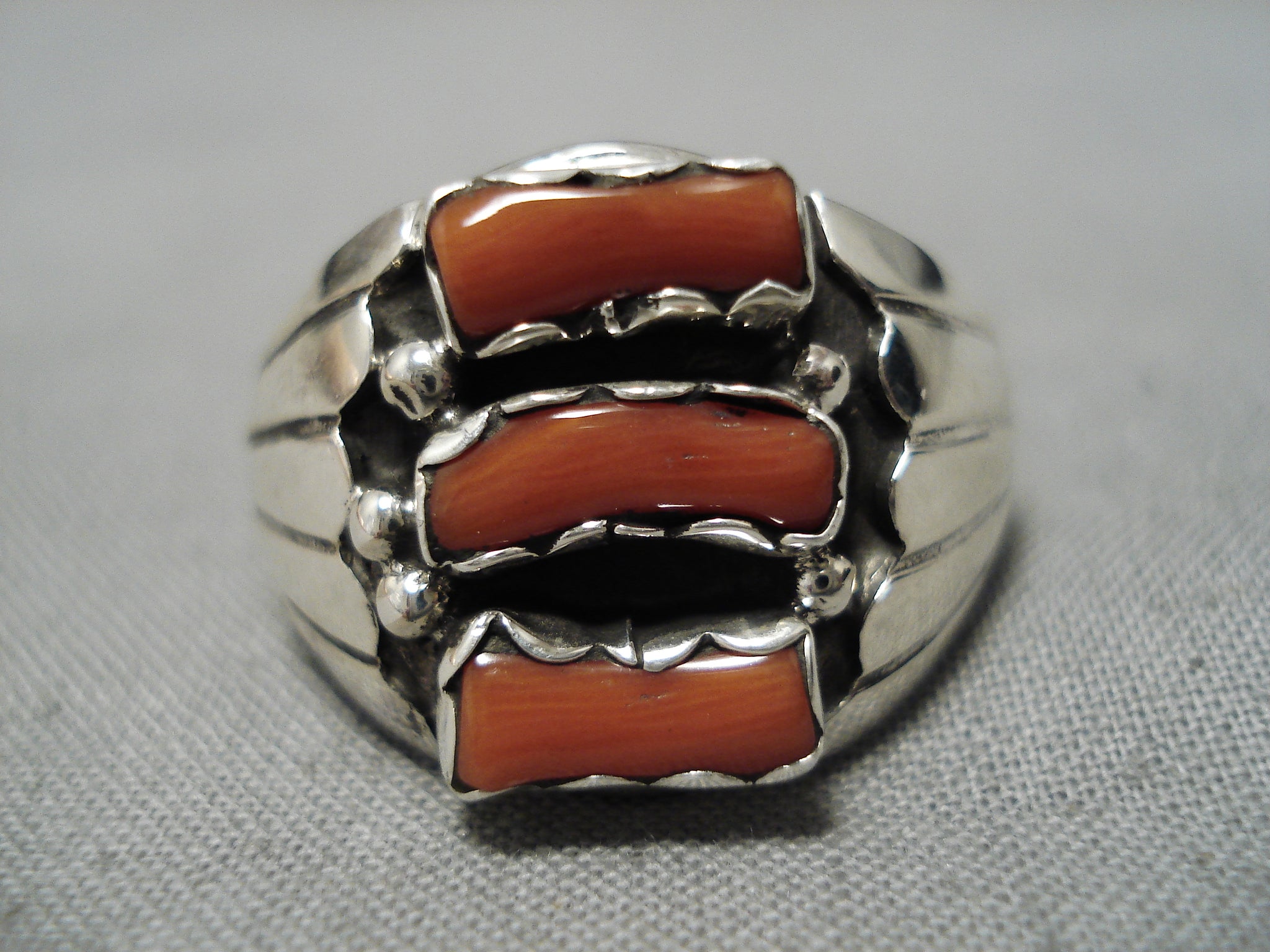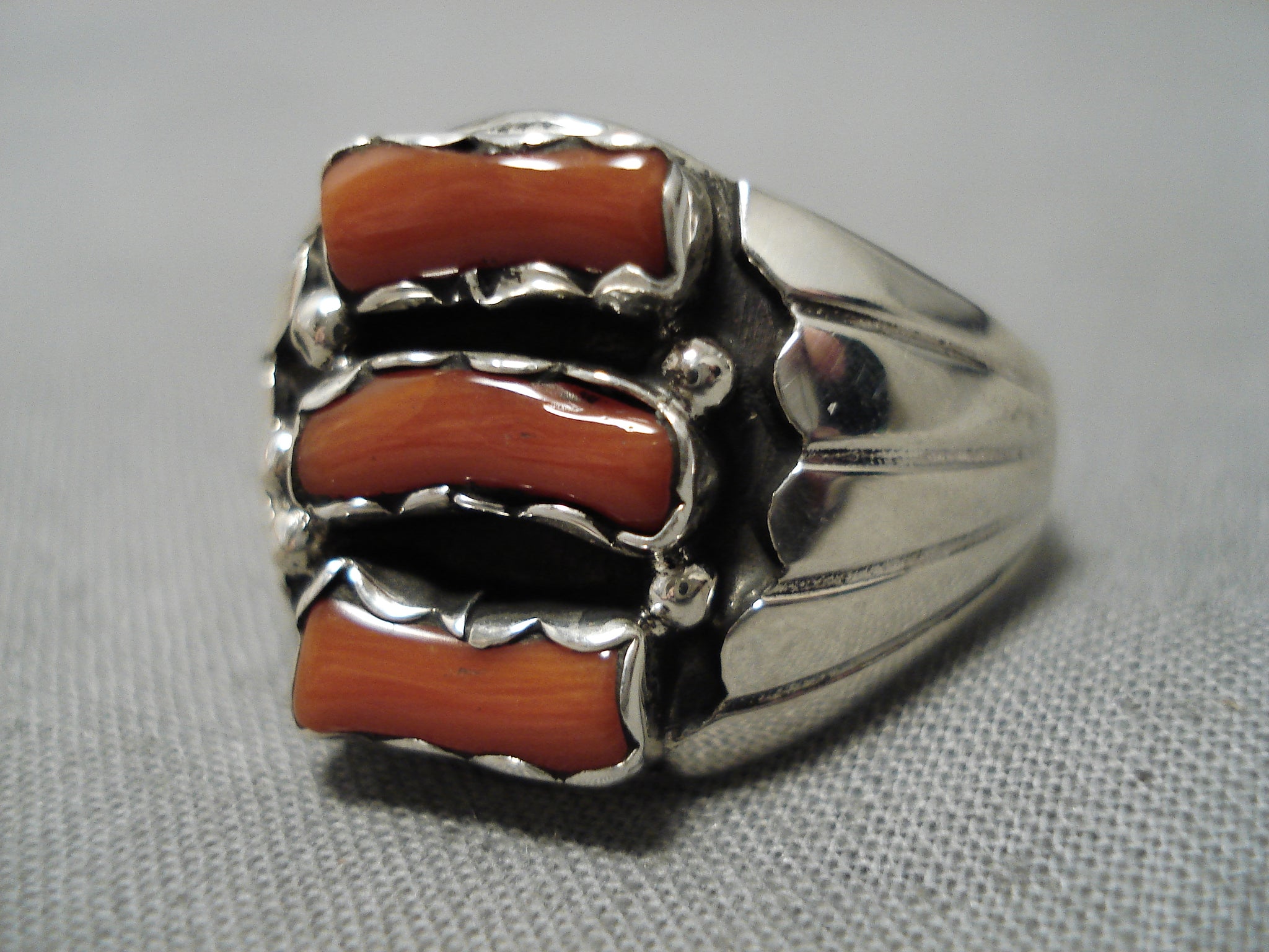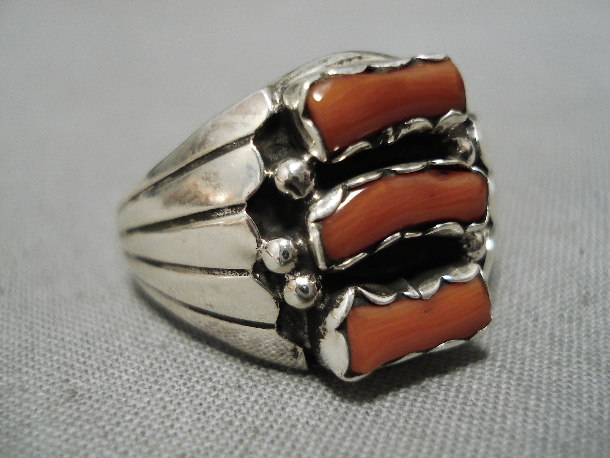 Huge Men's Chunky Red Coral Native American Sterling Silver Ring