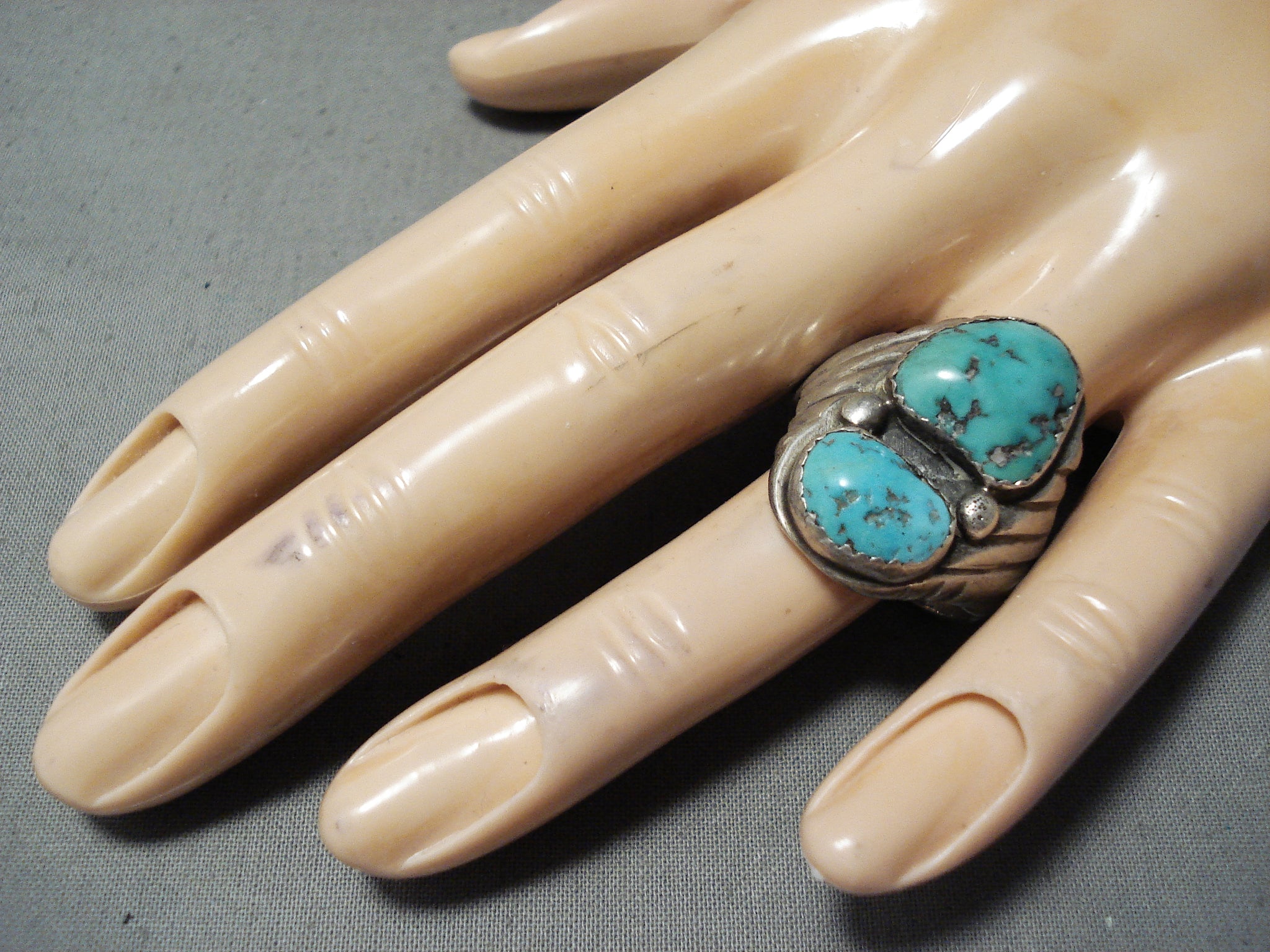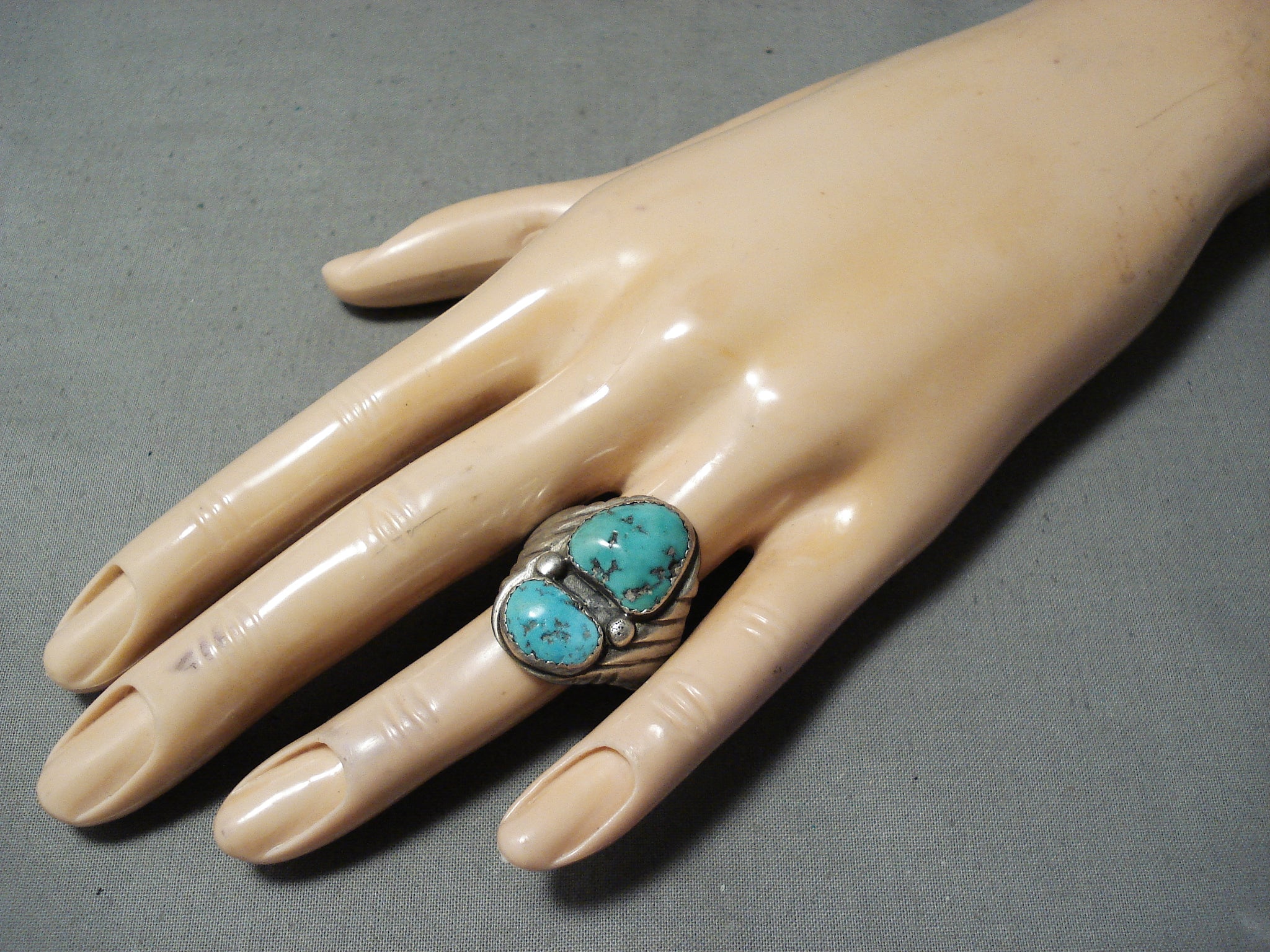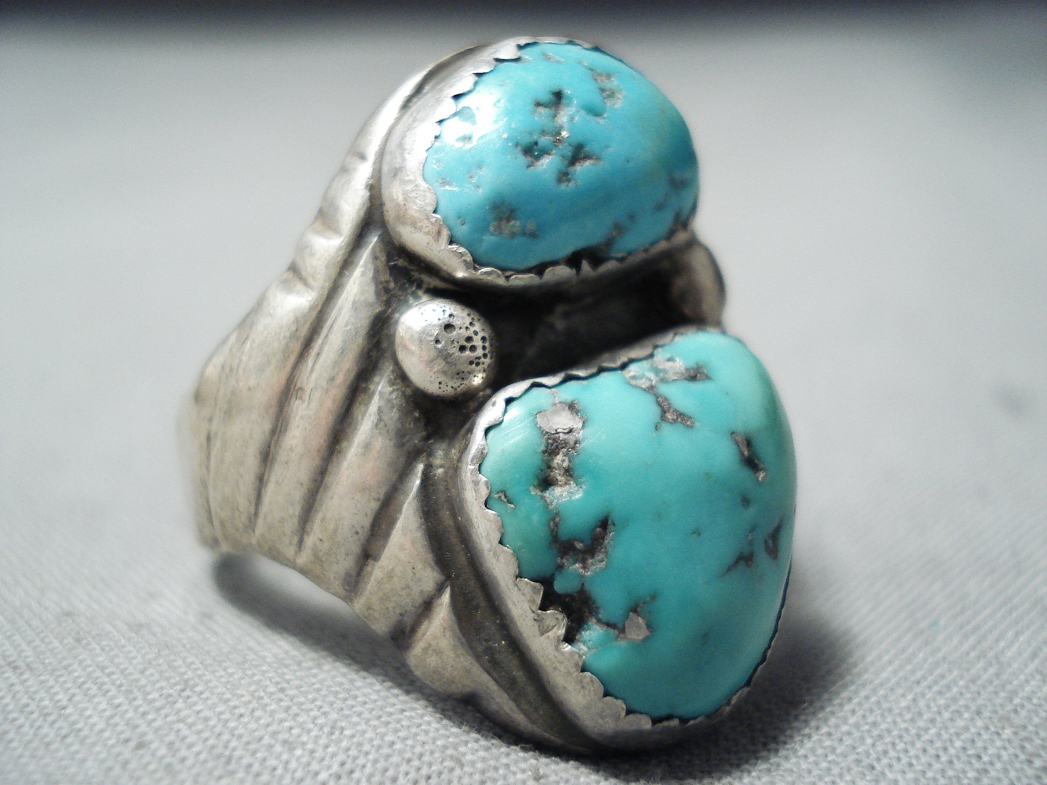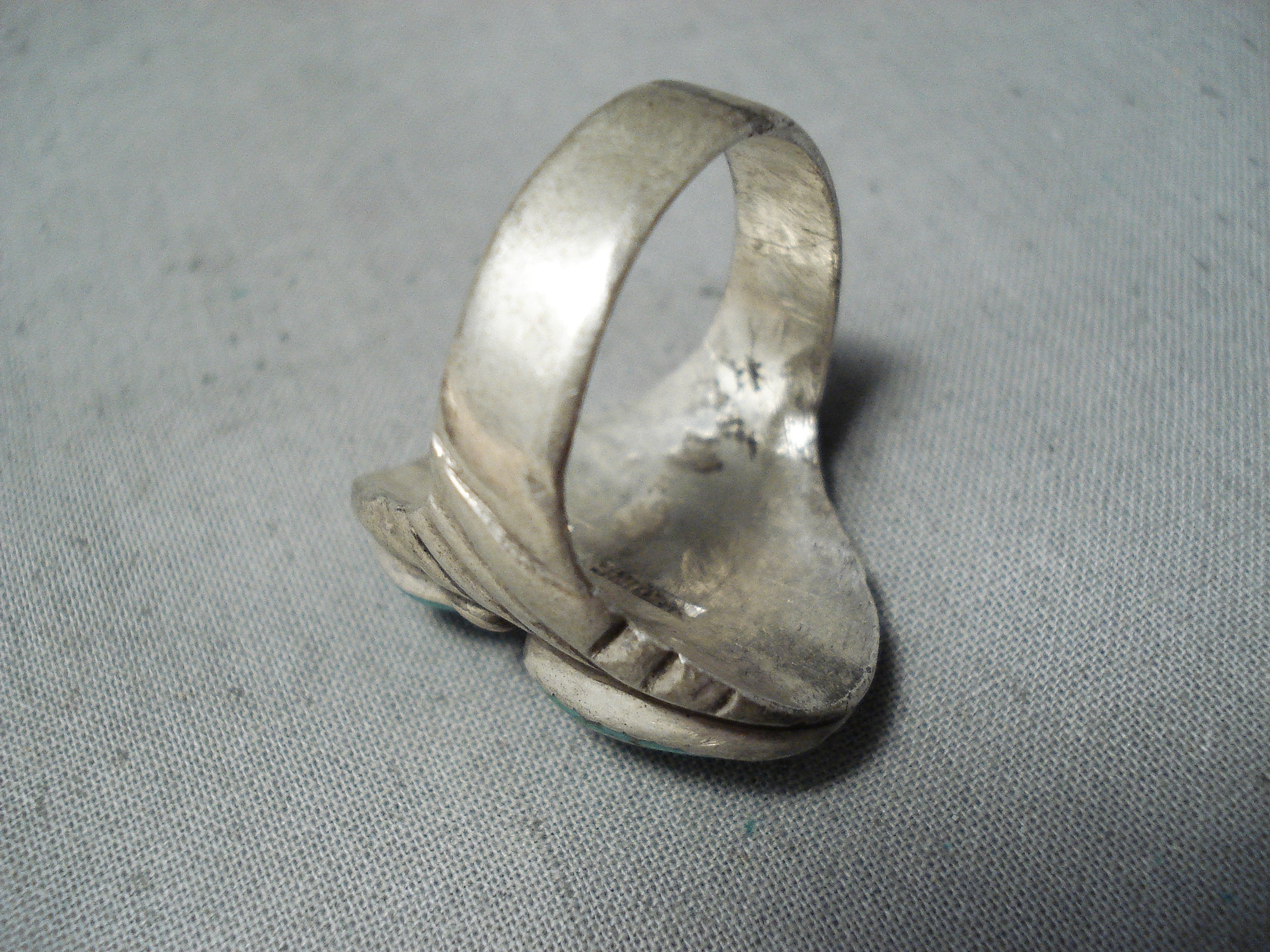 Huge Men's Vintage Native American Navajo Kingman Turquoise Sterling Silver Ring Old