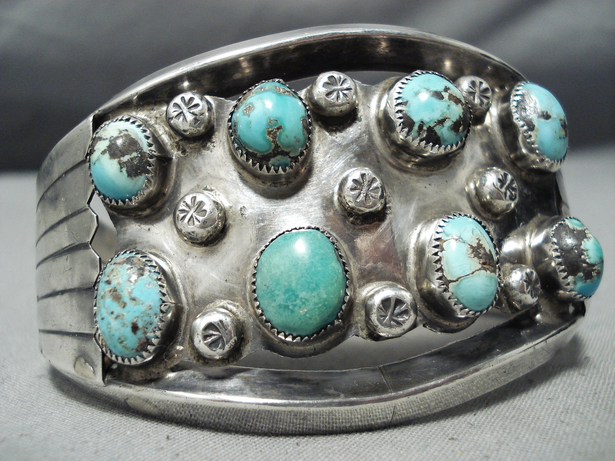 Huge Museum Vintage Native American Navajo Bisbee Turquoise Sterling Silver Bracelet Old