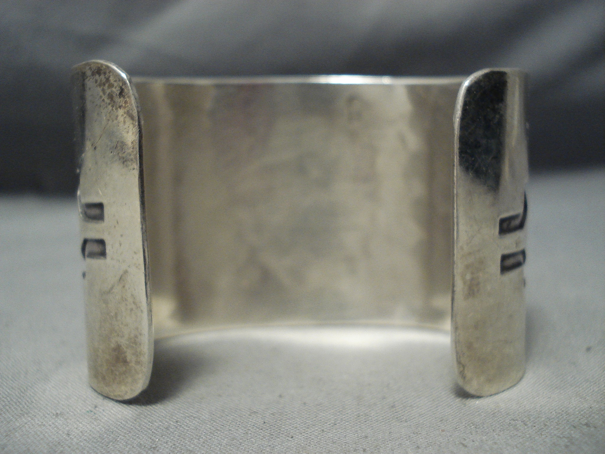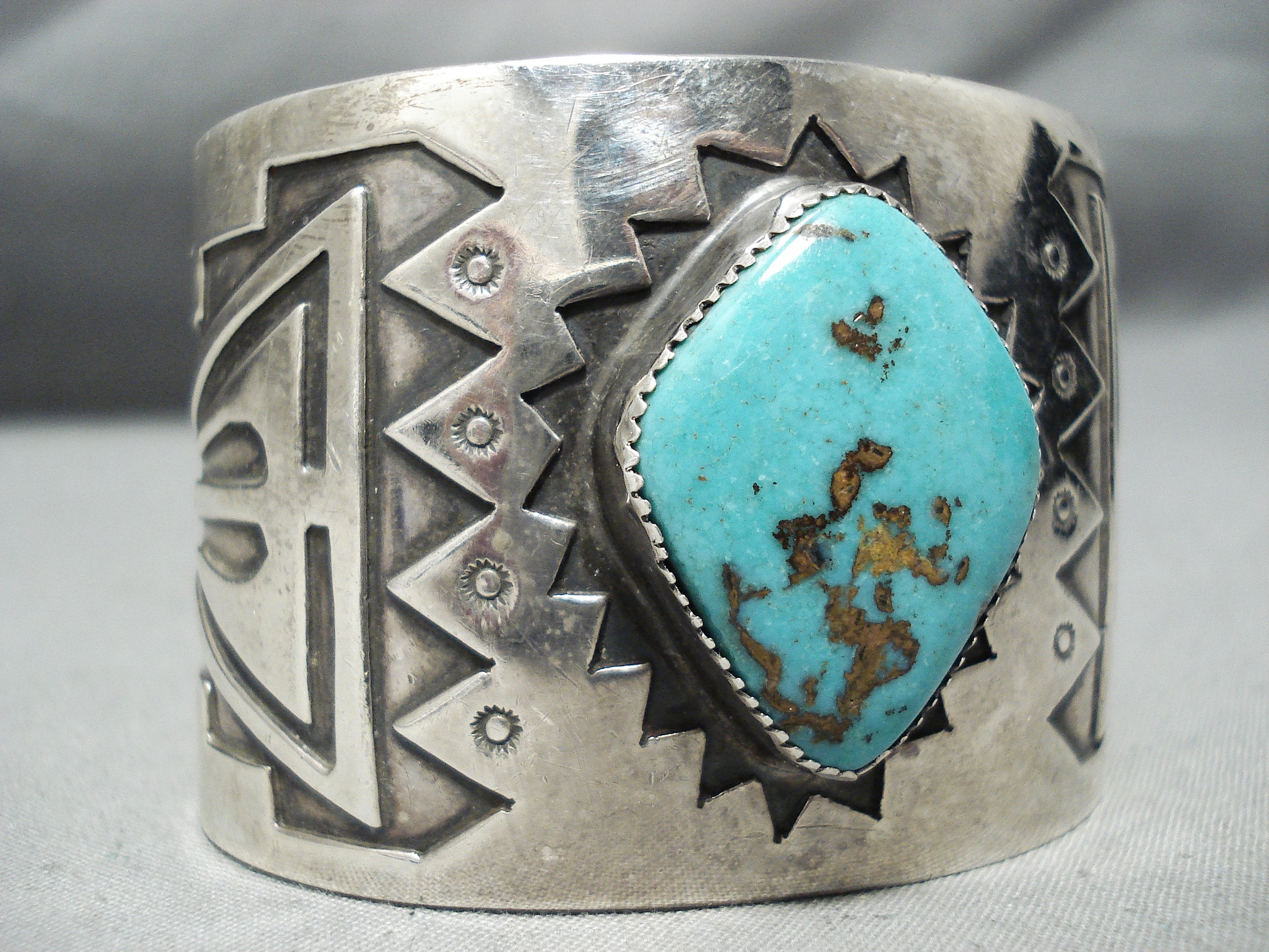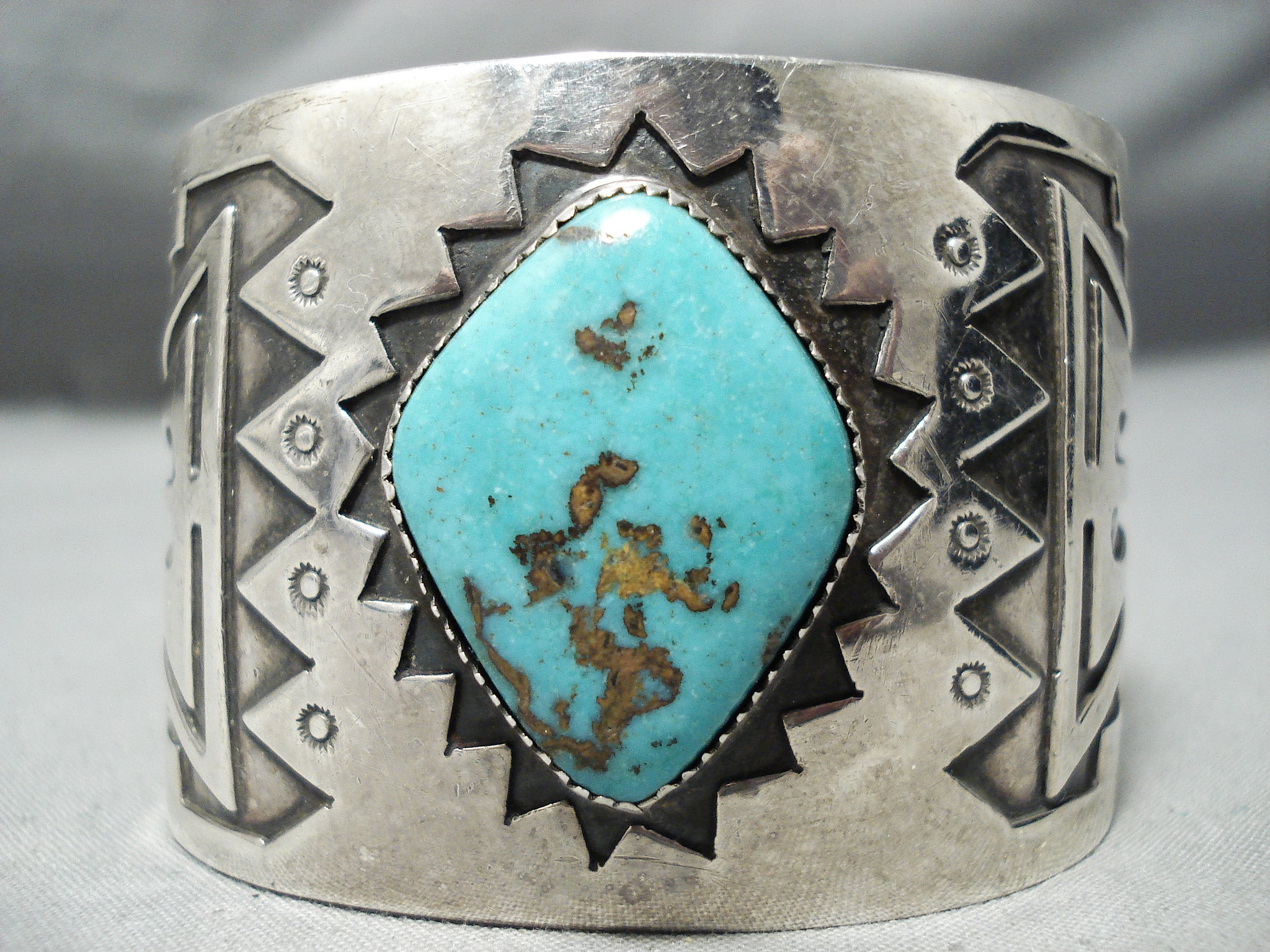 Huge Museum Vintage Native American Navajo Turquoise Sterling Silver Geometric Bracelet Old