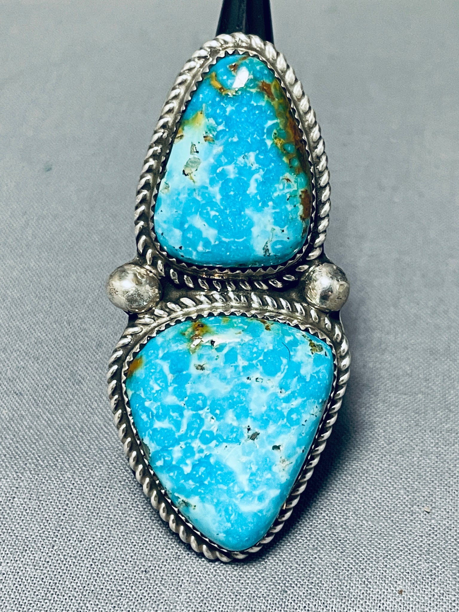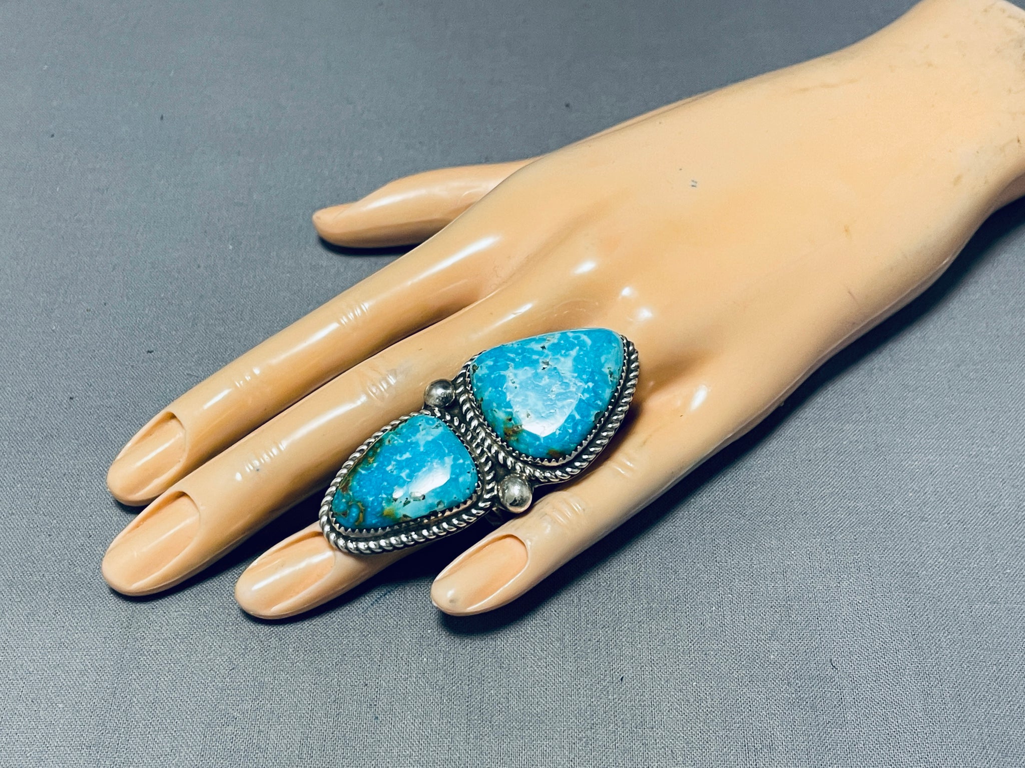 Huge Native American Navajo Double Turquoise Sturdy Sterling Silver Ring