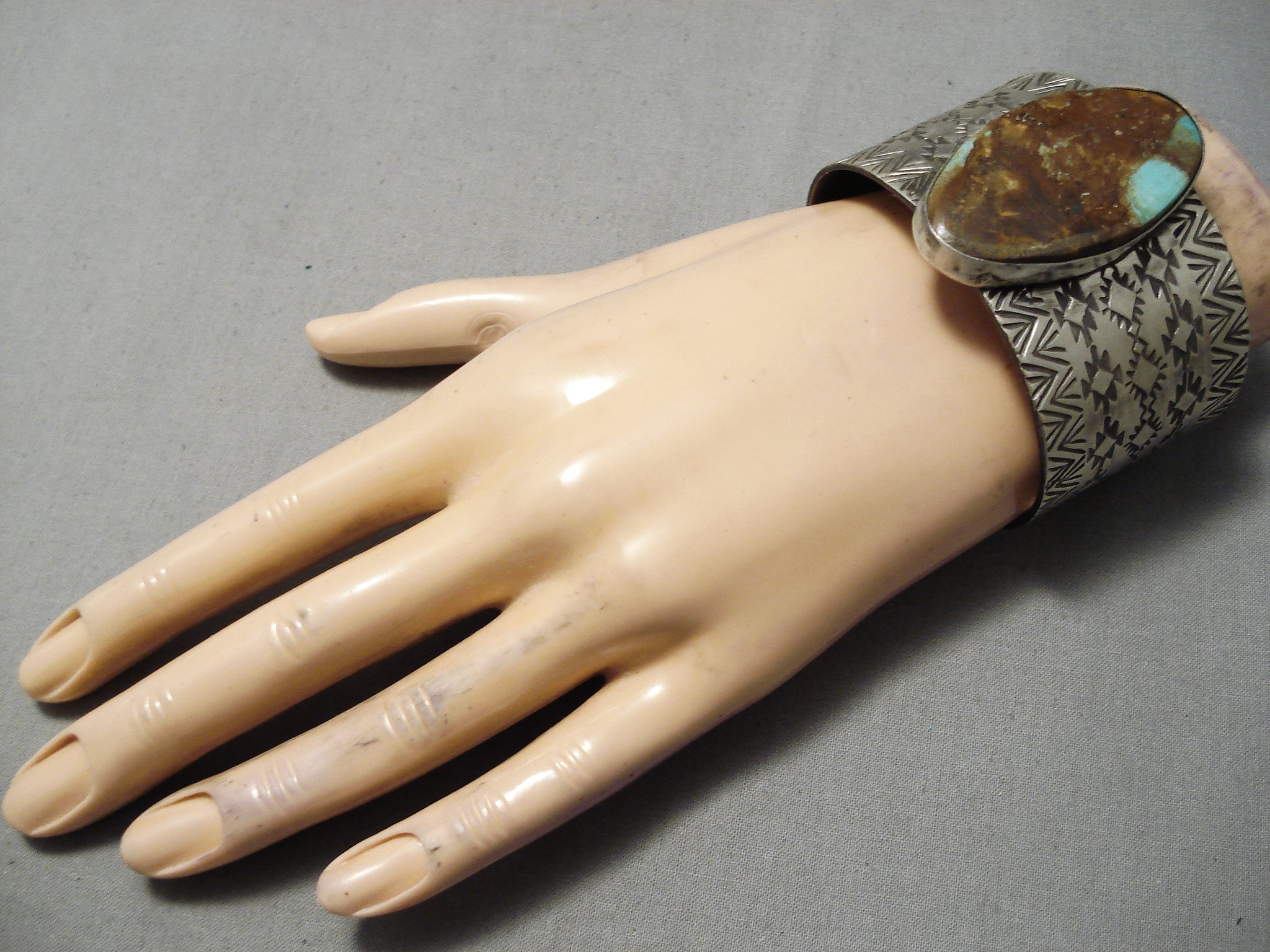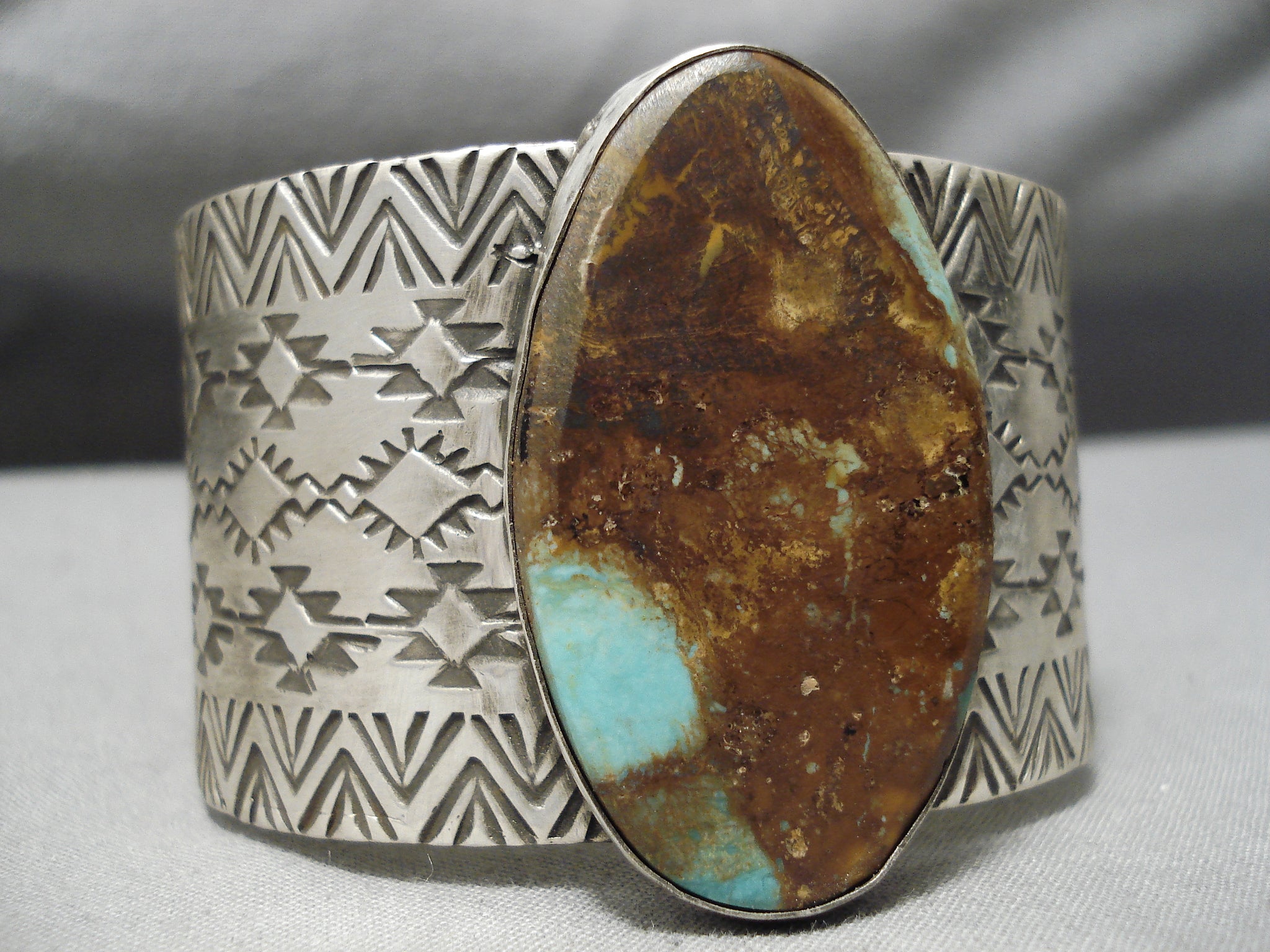 Huge Native American Navajo Royston Turquoise Sterling Silver Stamped Bracelet Cuff