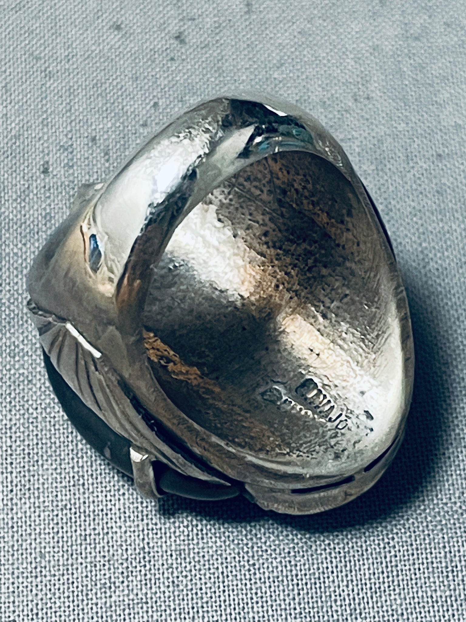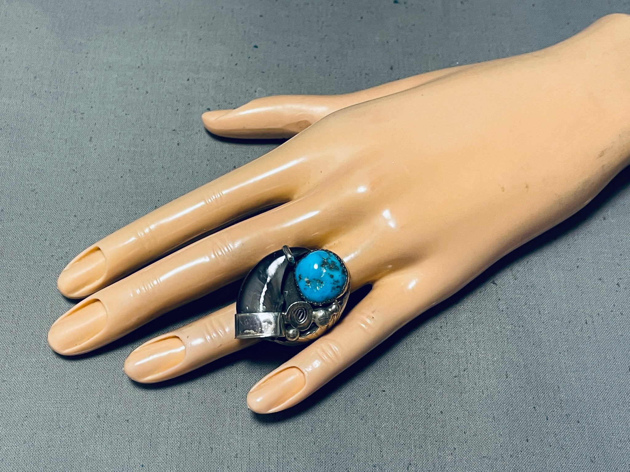 Huge Native American Navajo Turquoise Authentic Bear Sterling Silver Ring