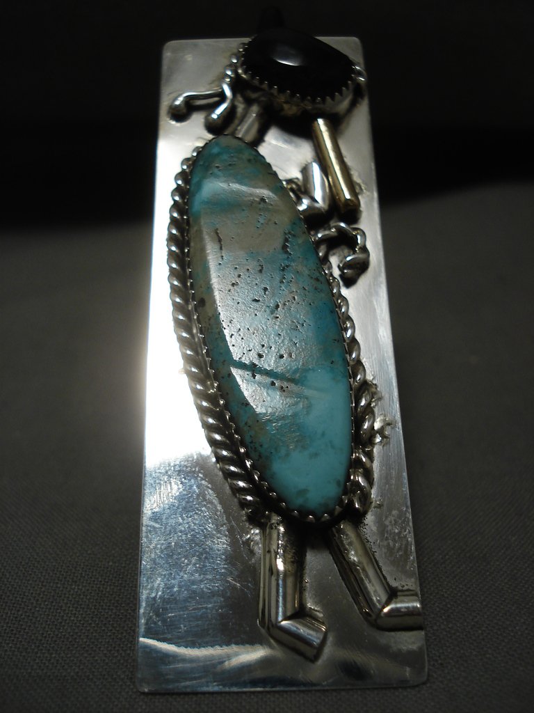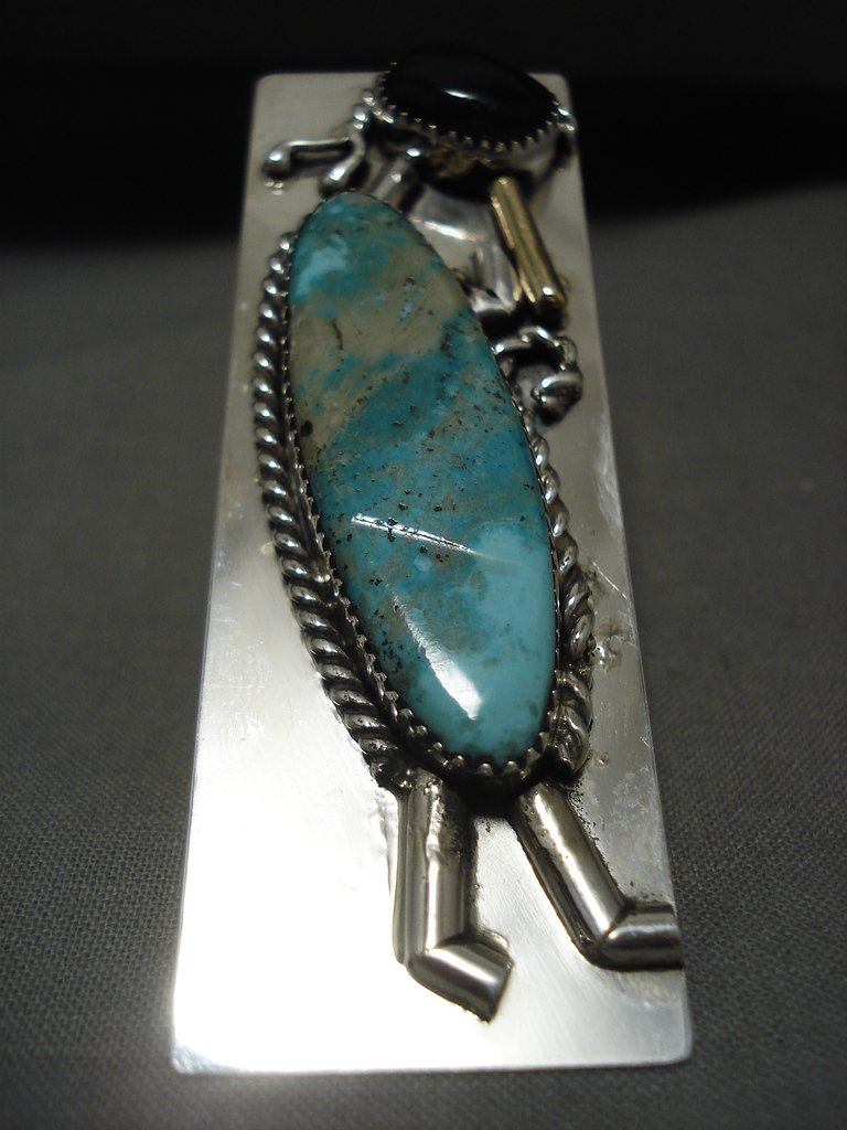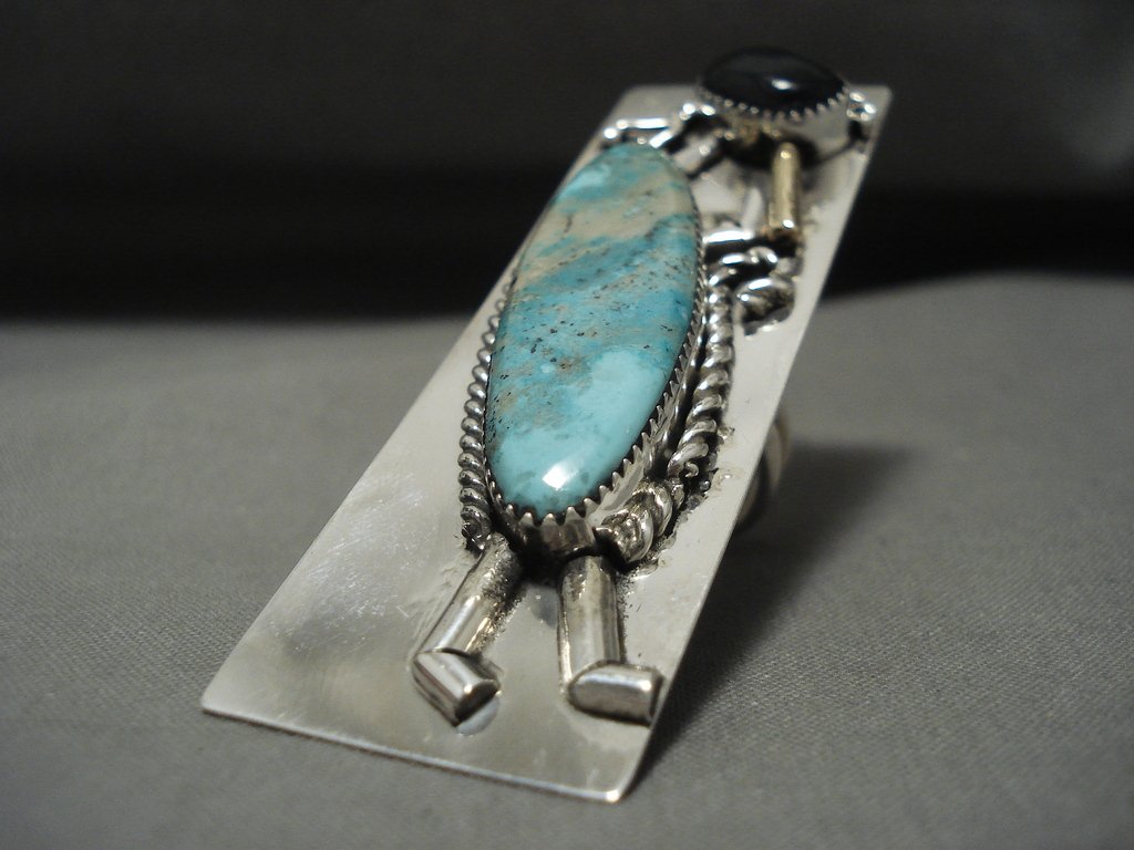 Huge Navajo Kokopelli 'Gold Flute' Turquoise Native American Jewelry Silver Ring