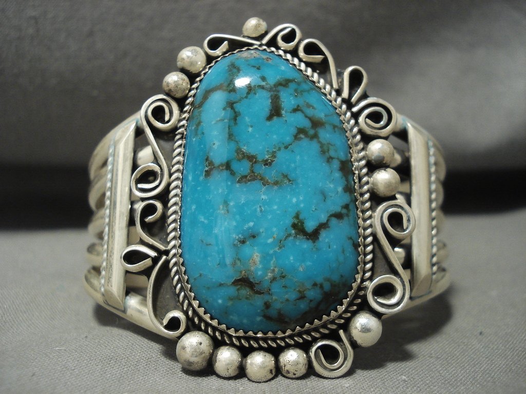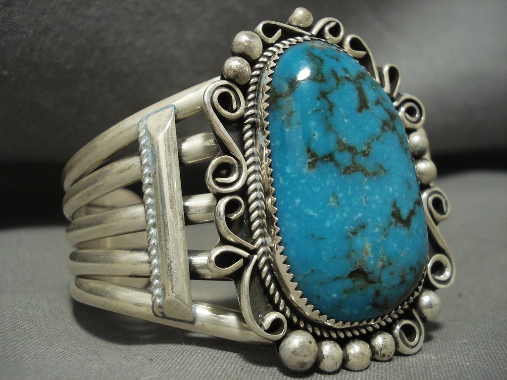 Huge Navajo Lee Nacitacio Blue Royston Turquoise Native American Jewelry Silver Bracelet
