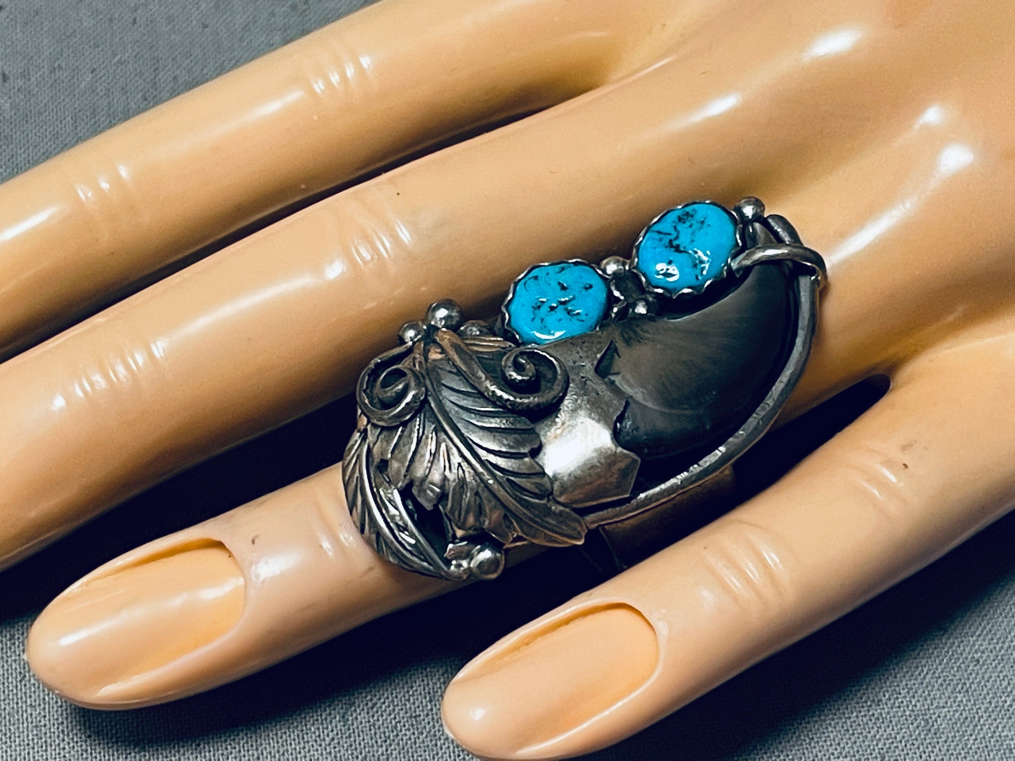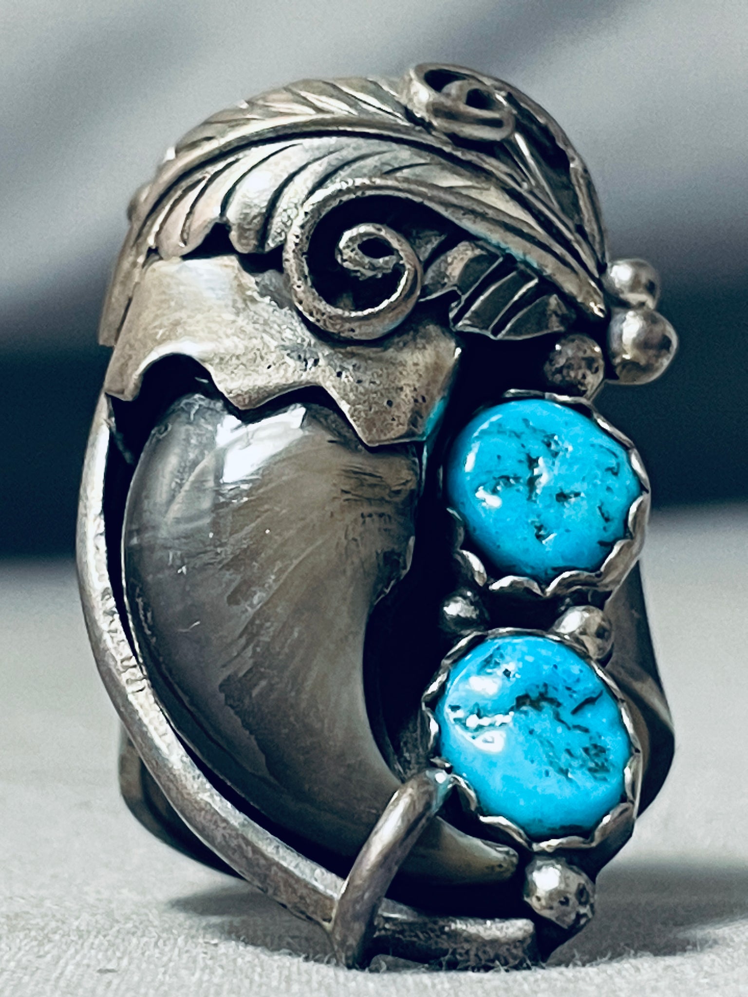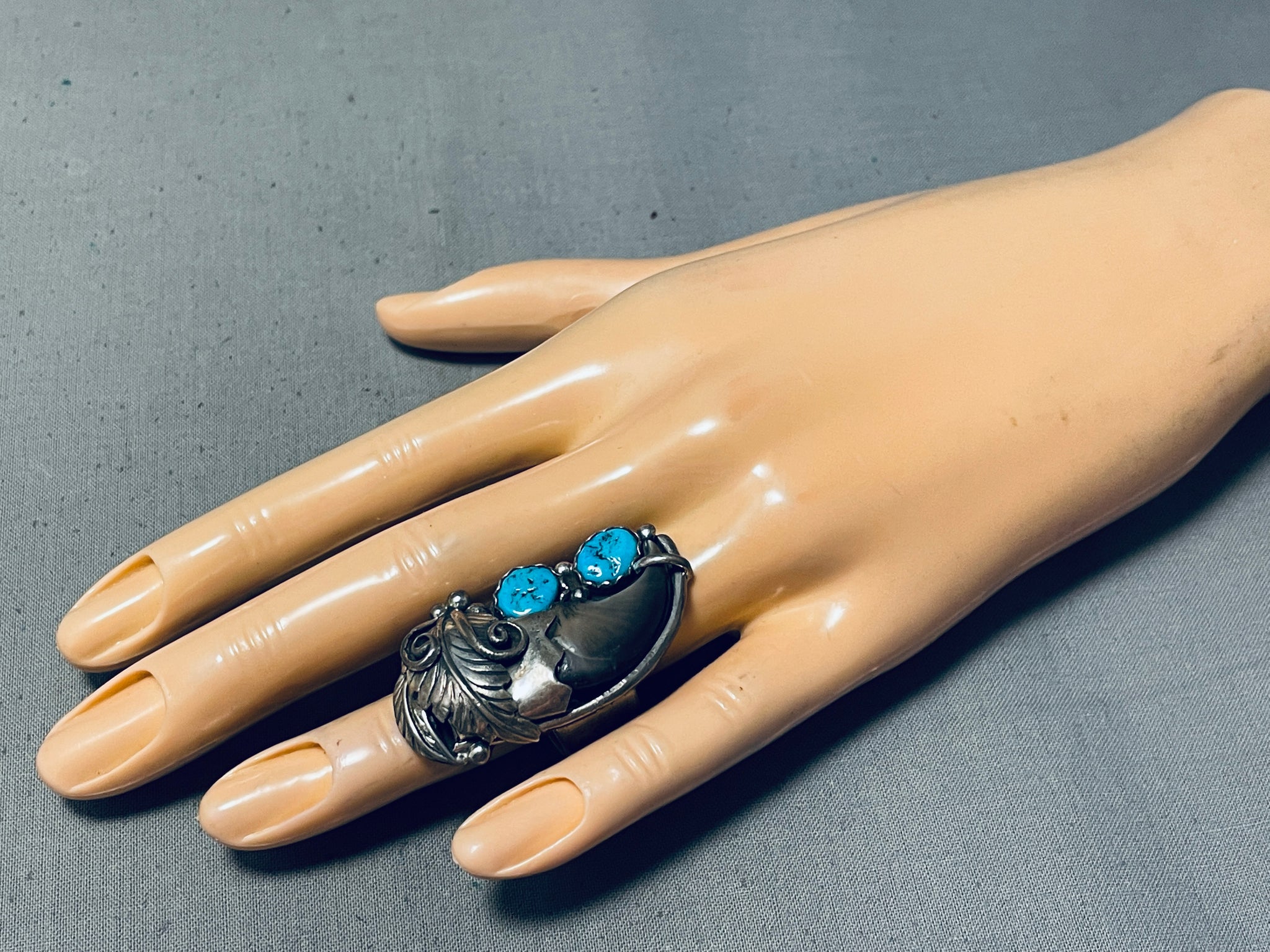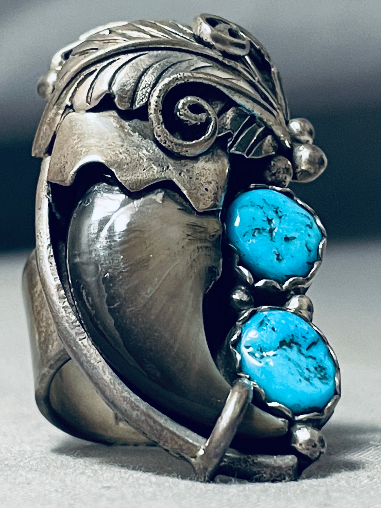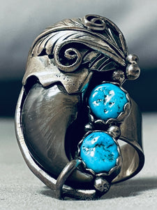 Huge Navajo Turquoise Sterling Silver Authentic Bear Native American Ring