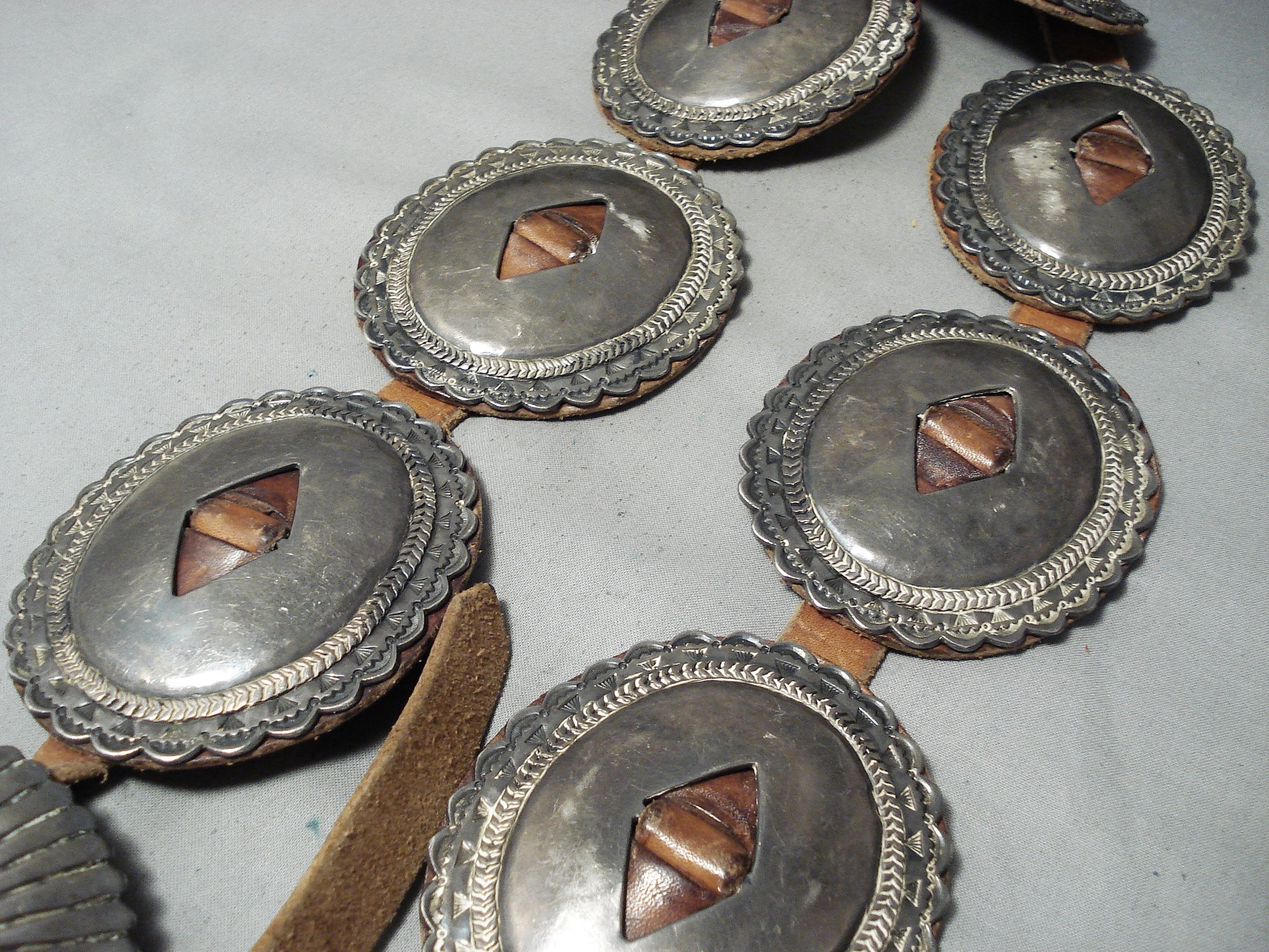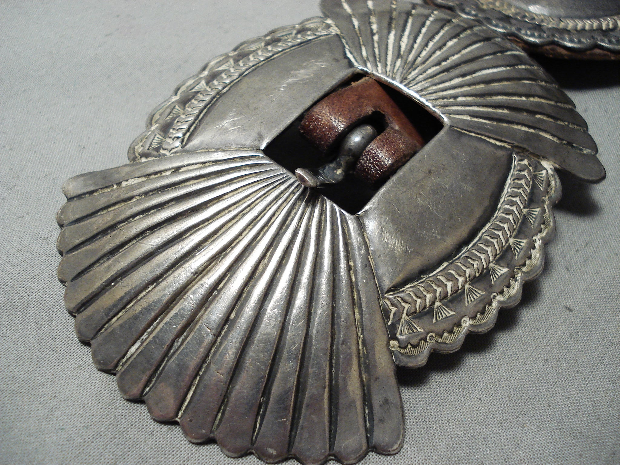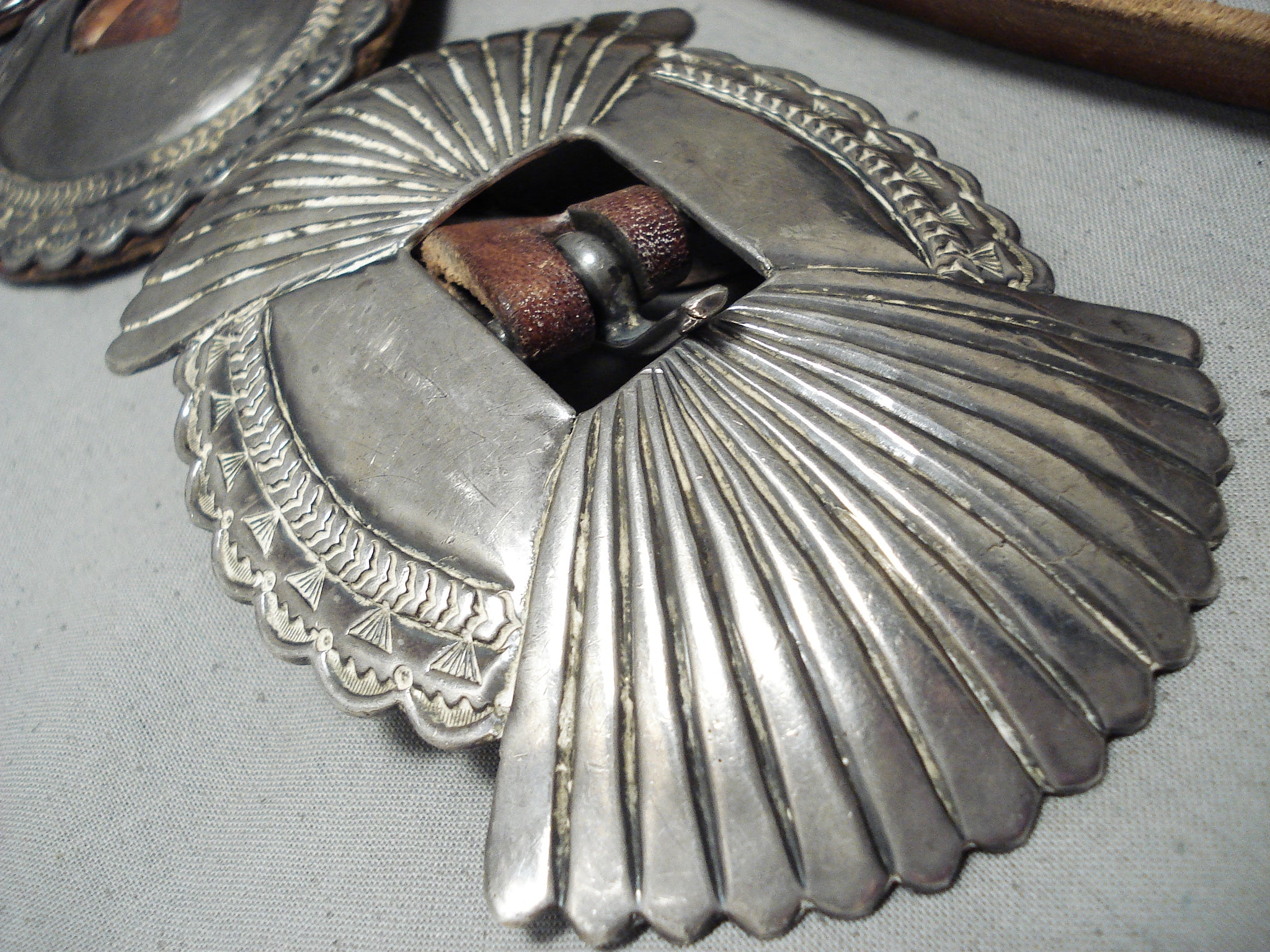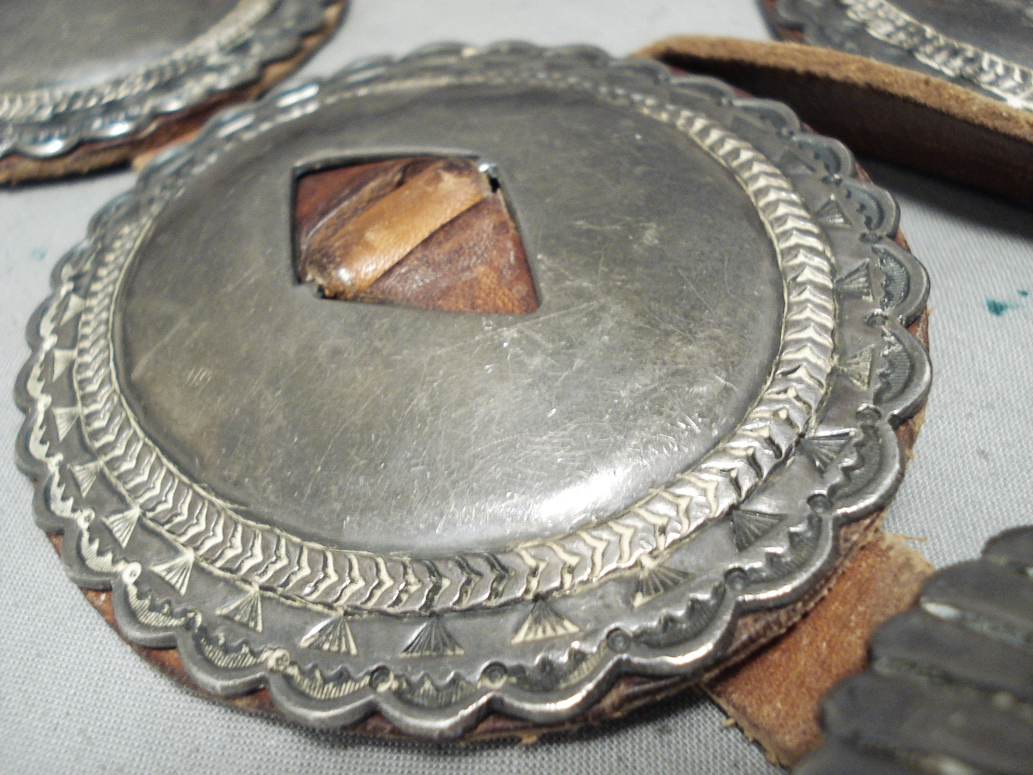 Huge Old Heavy Vintage Native American Navajo Hand Wrought Sterling Silver Concho Belt