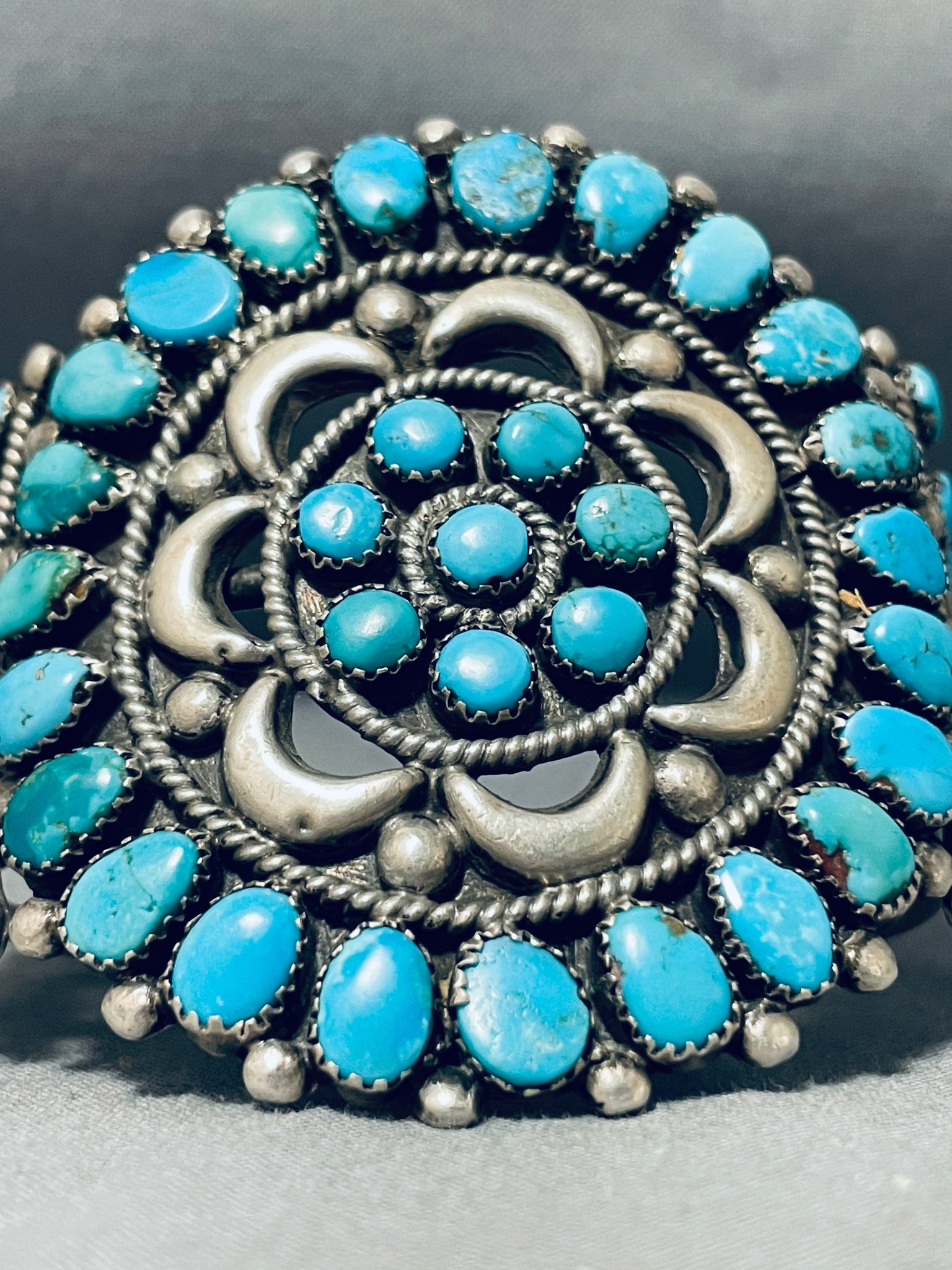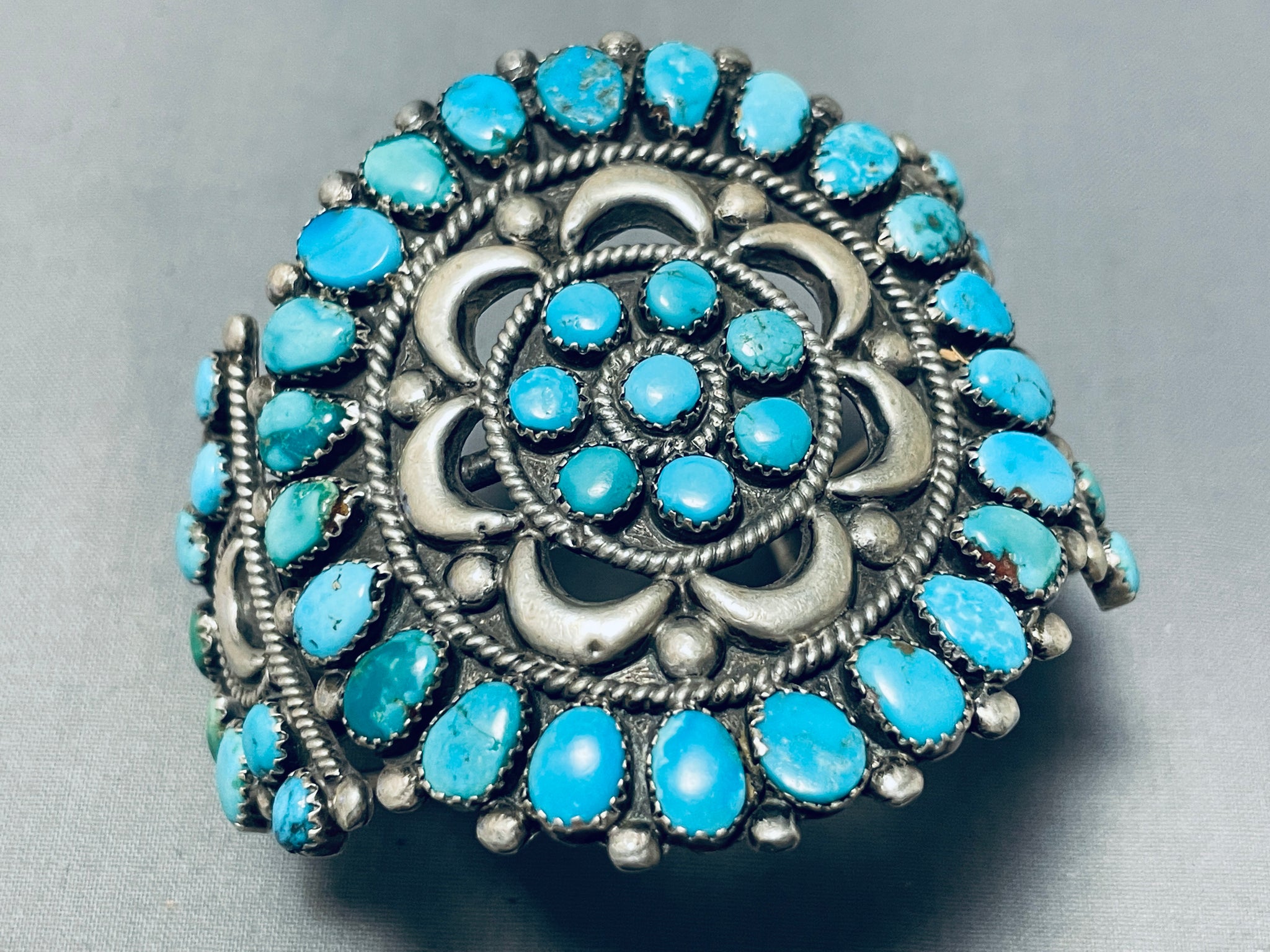 Huge Older Vintage Native American Navajo Turquoise Sterling Silver Bracelet Cuff Old