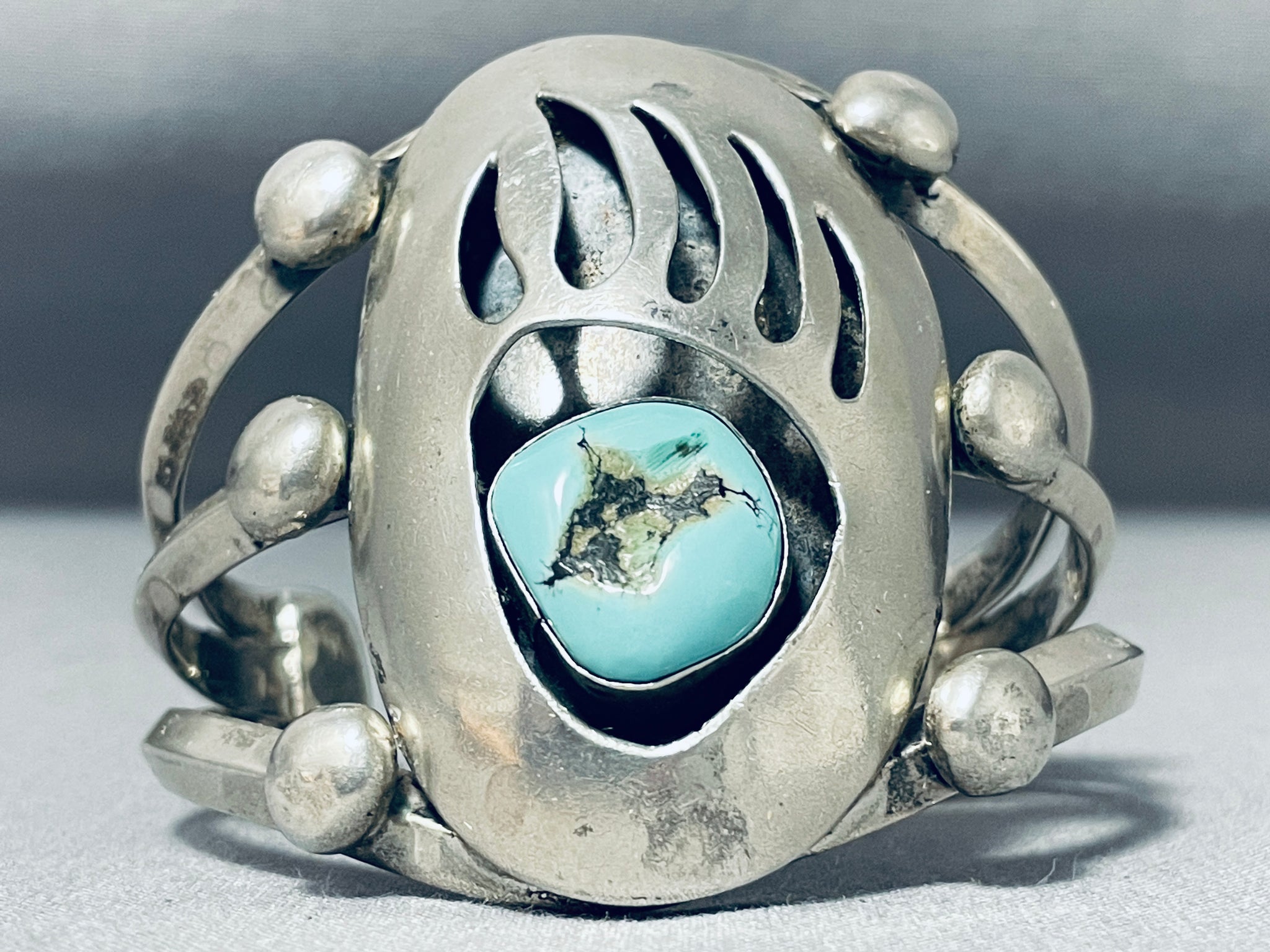 Huge Paw Vintage Native American Navajo Turquoise Sterling Silver Bracelet