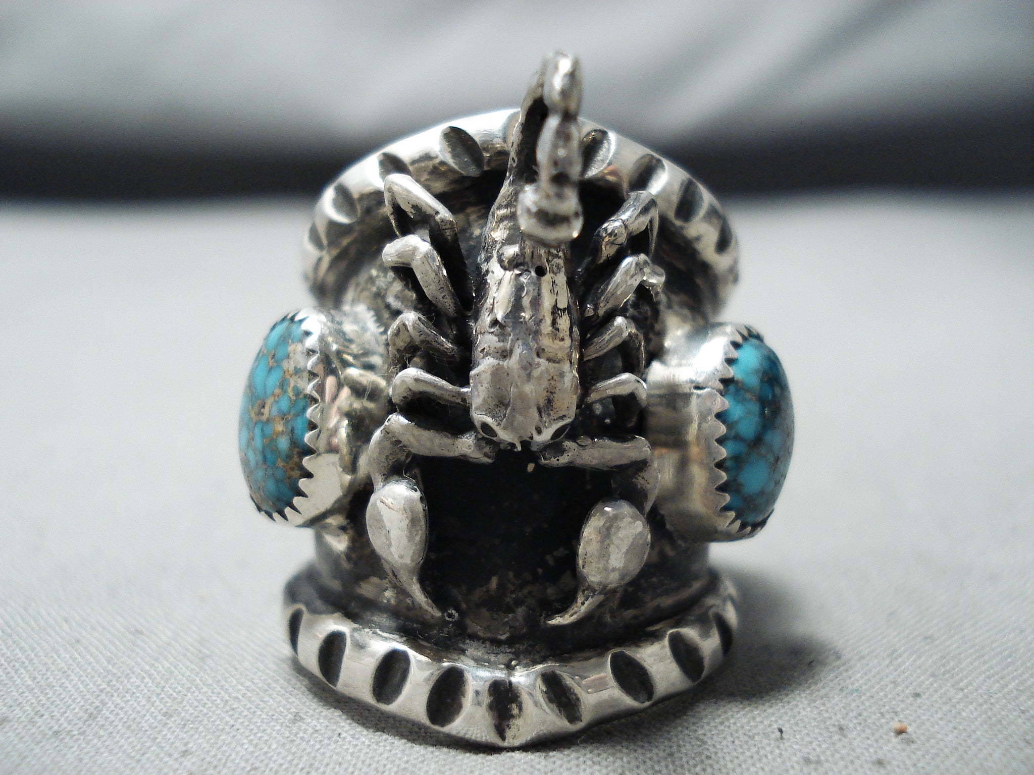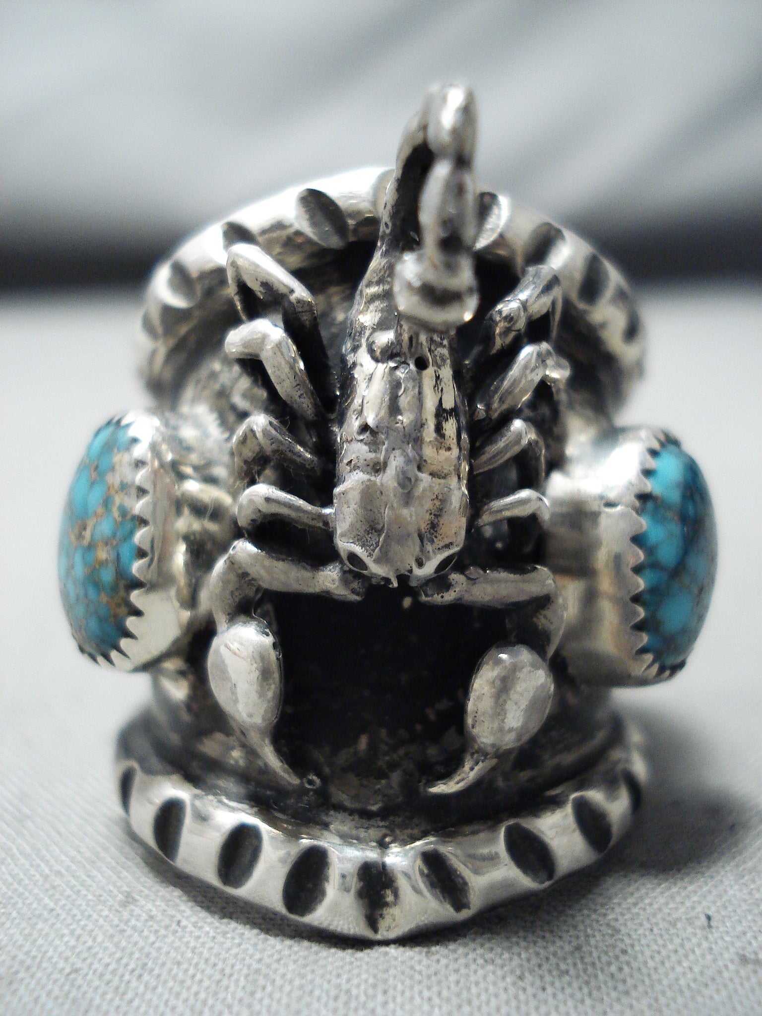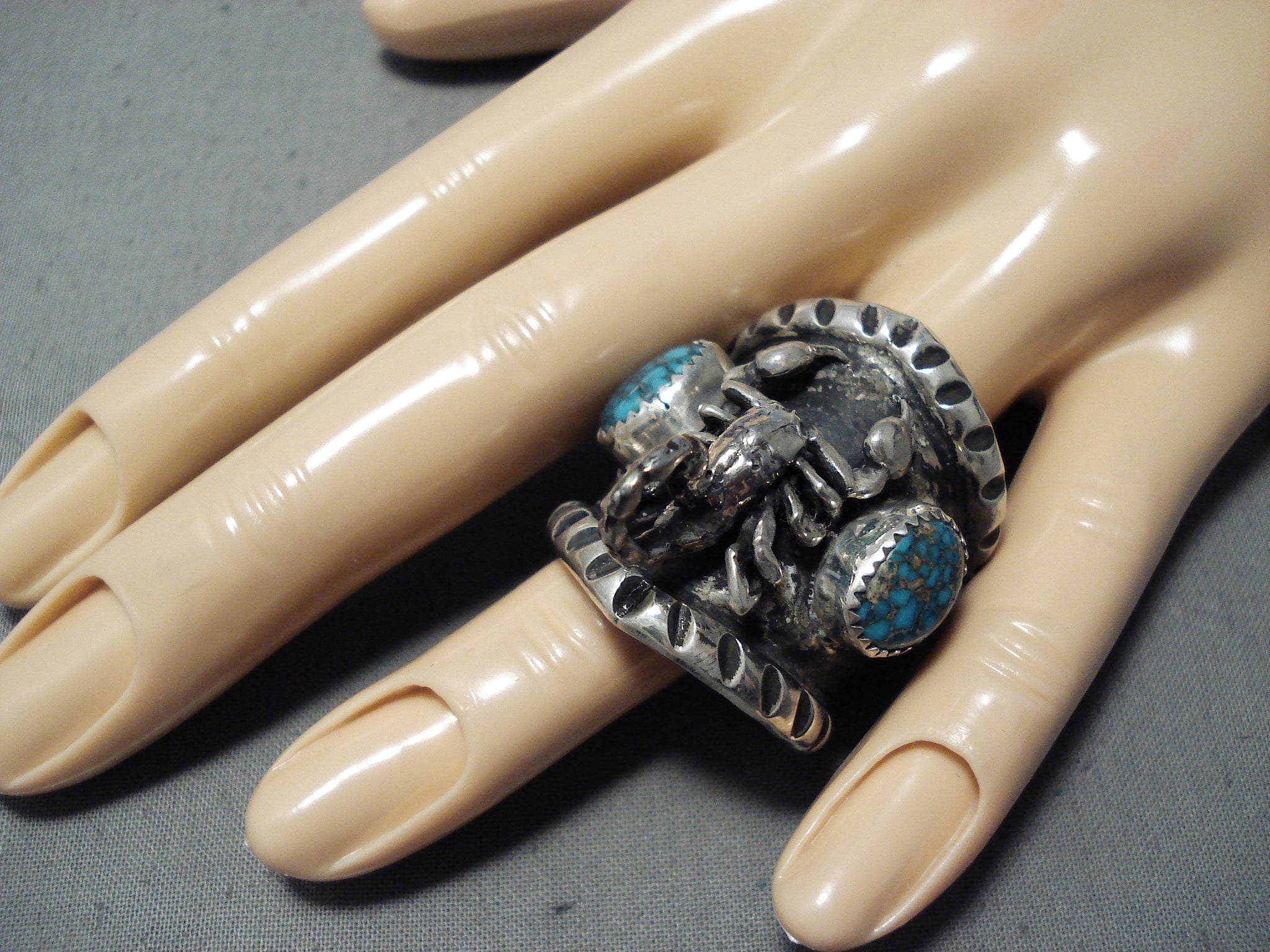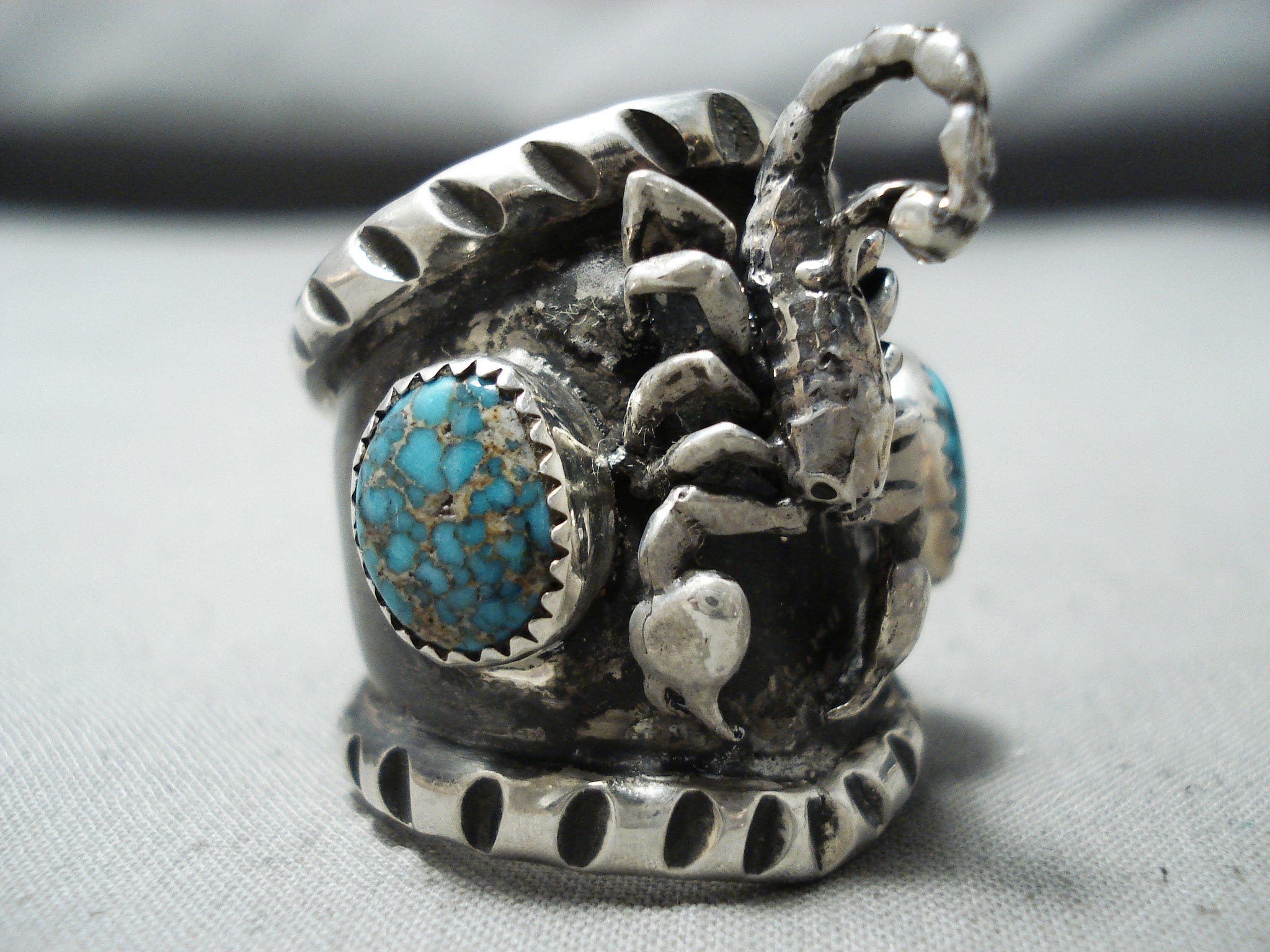 Huge Scoprion Native American Navajo Turquoise Sterling Silver Ring