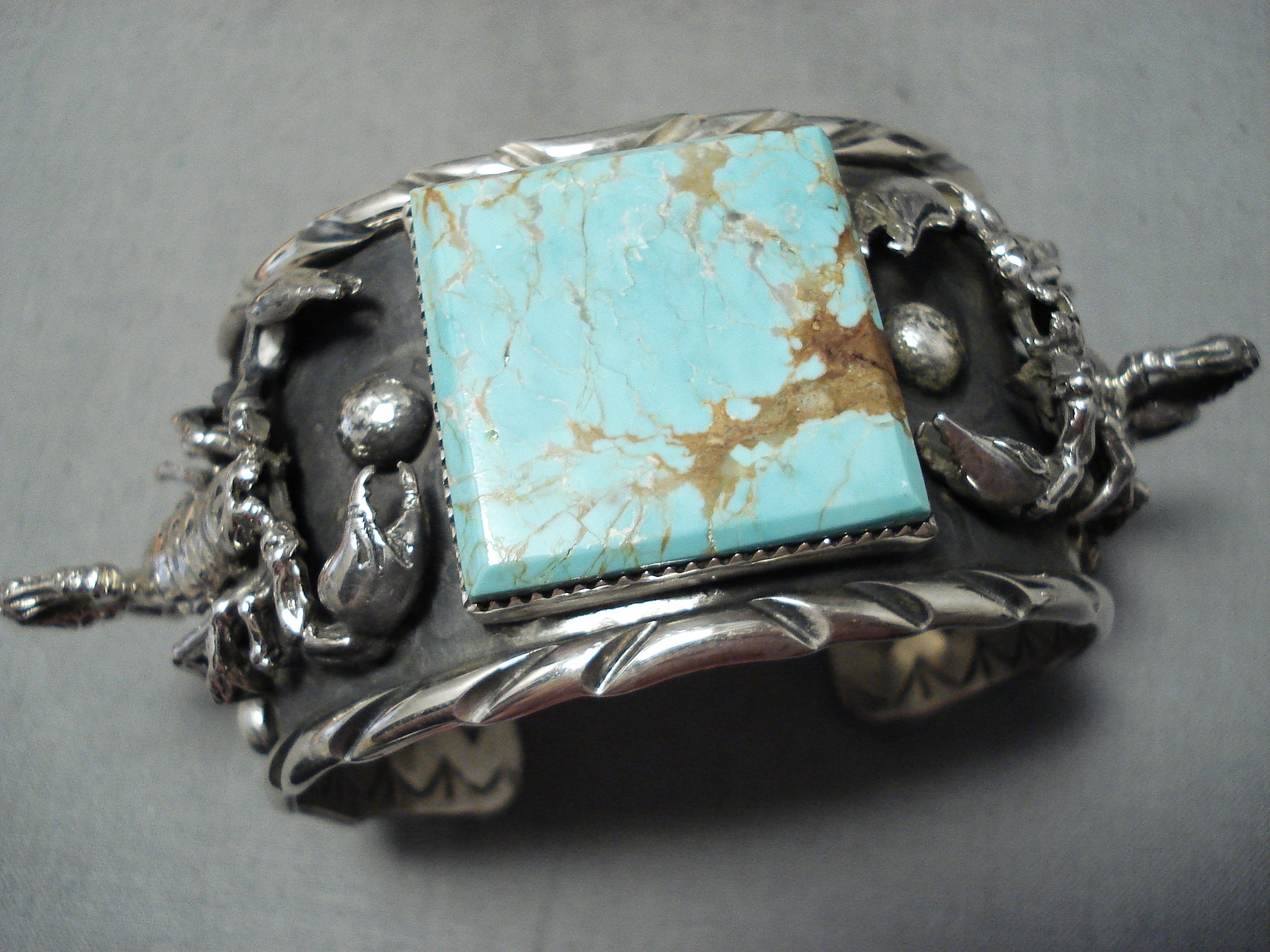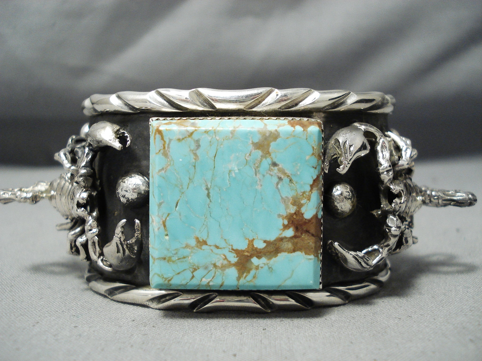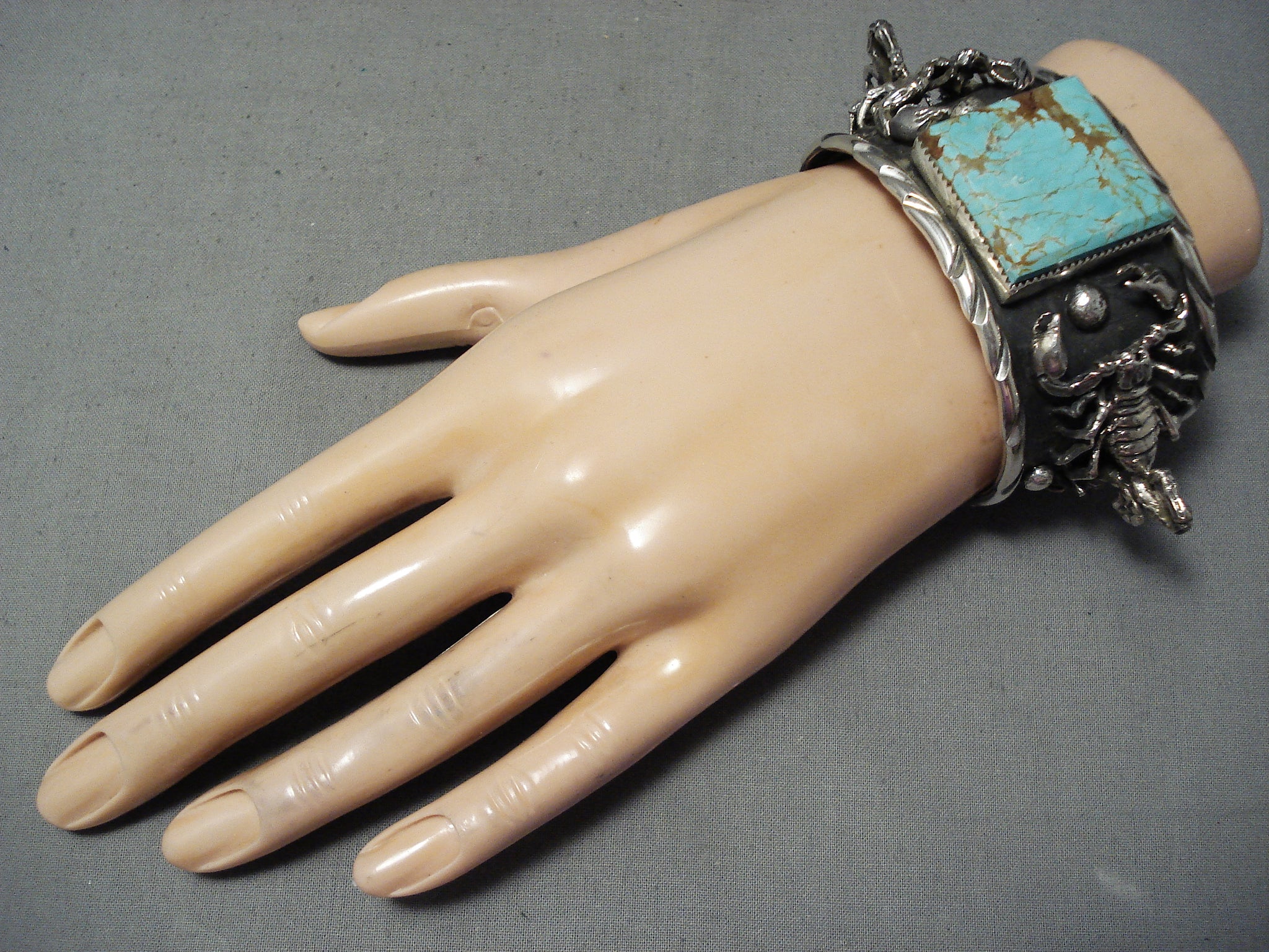Huge Scorpion #8 Turquoise Sterling Silver Native American Bracelet