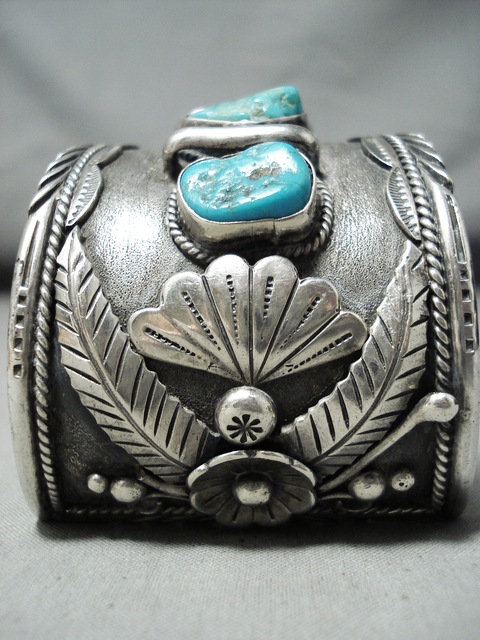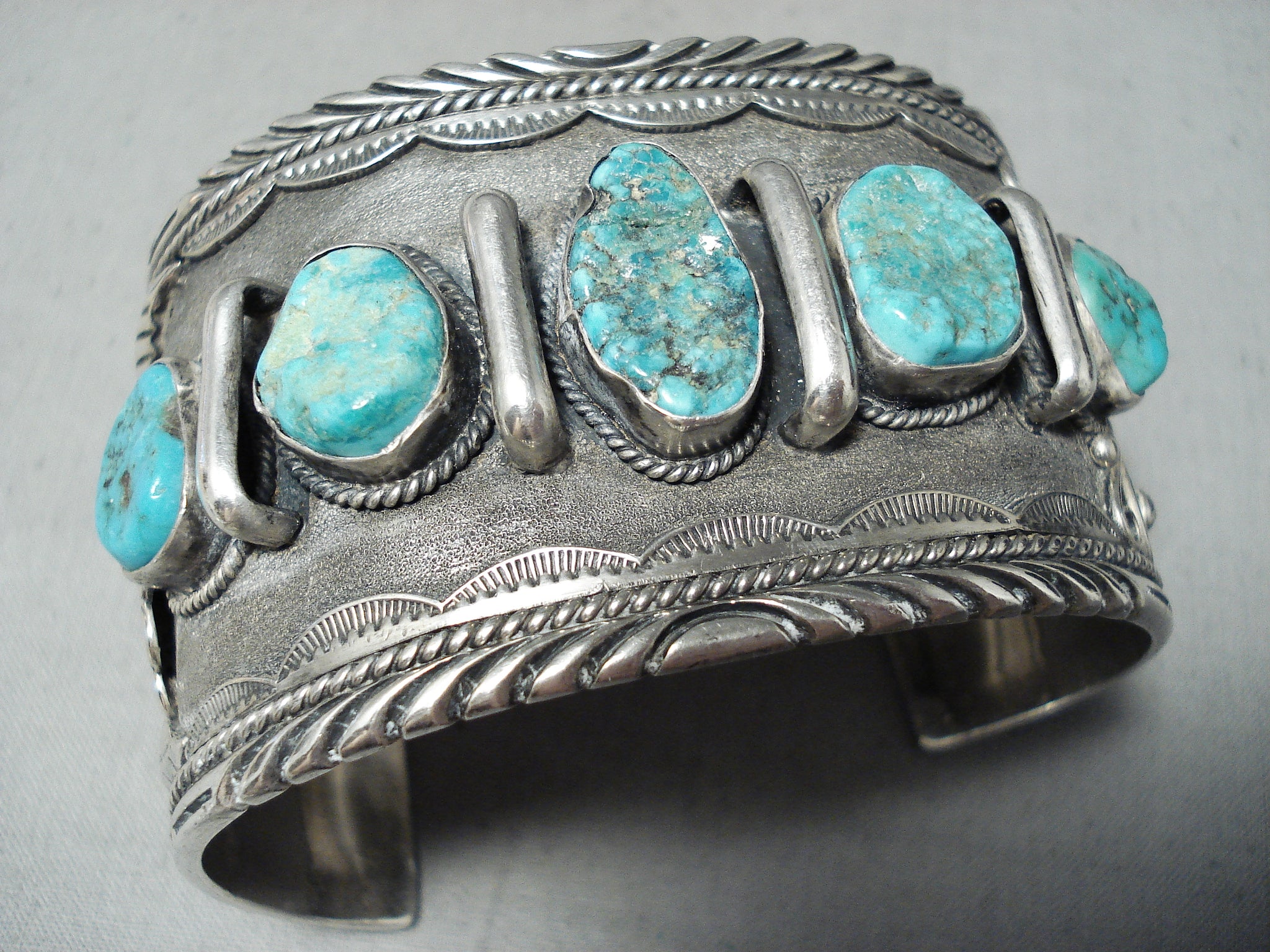 Huge Signed 1977 Vintage Native American Navajo Turquoise Sterling Silver Bracelet Old
