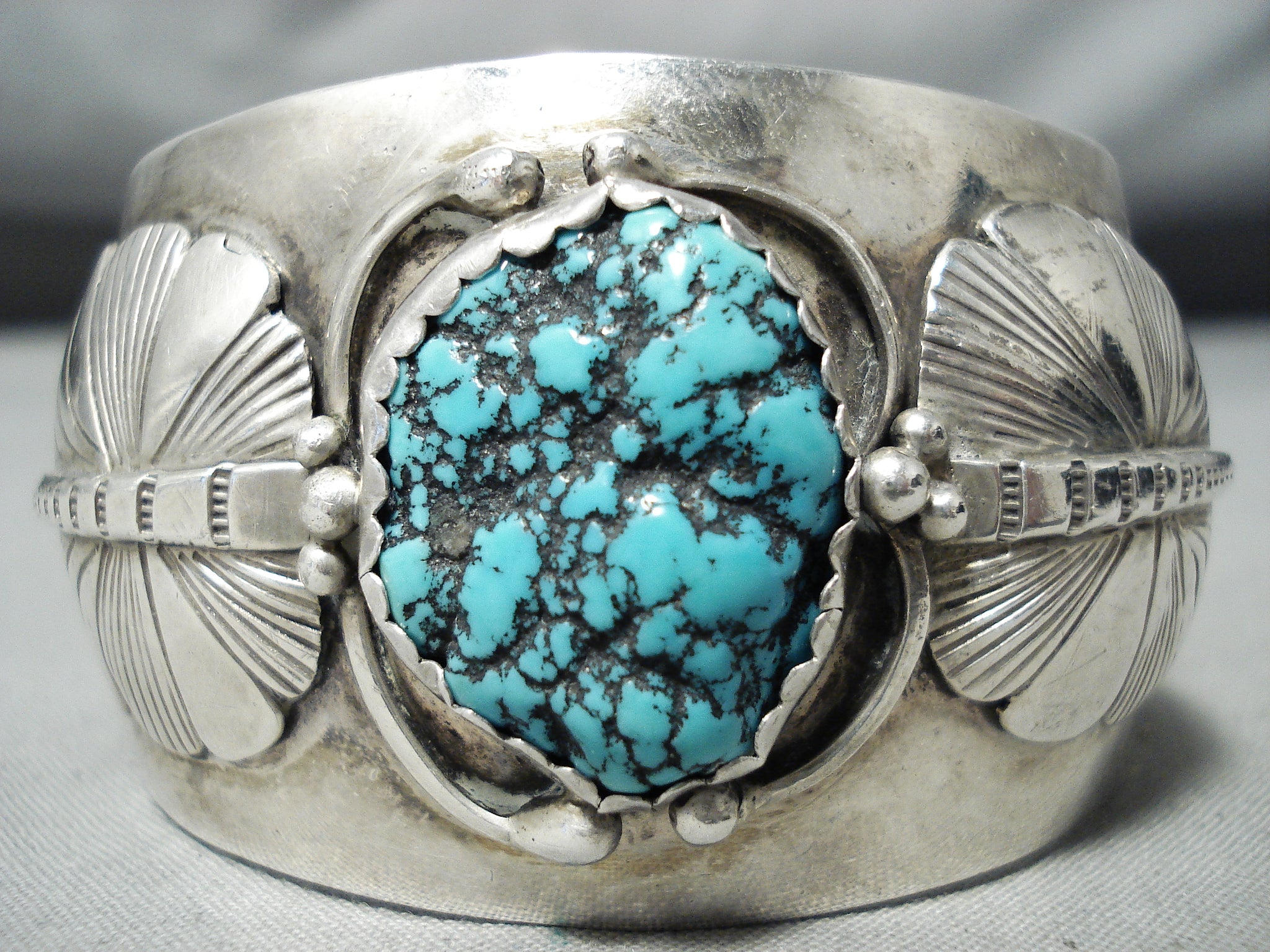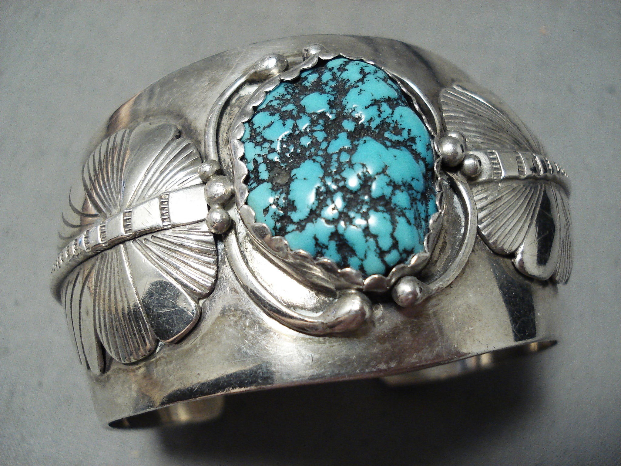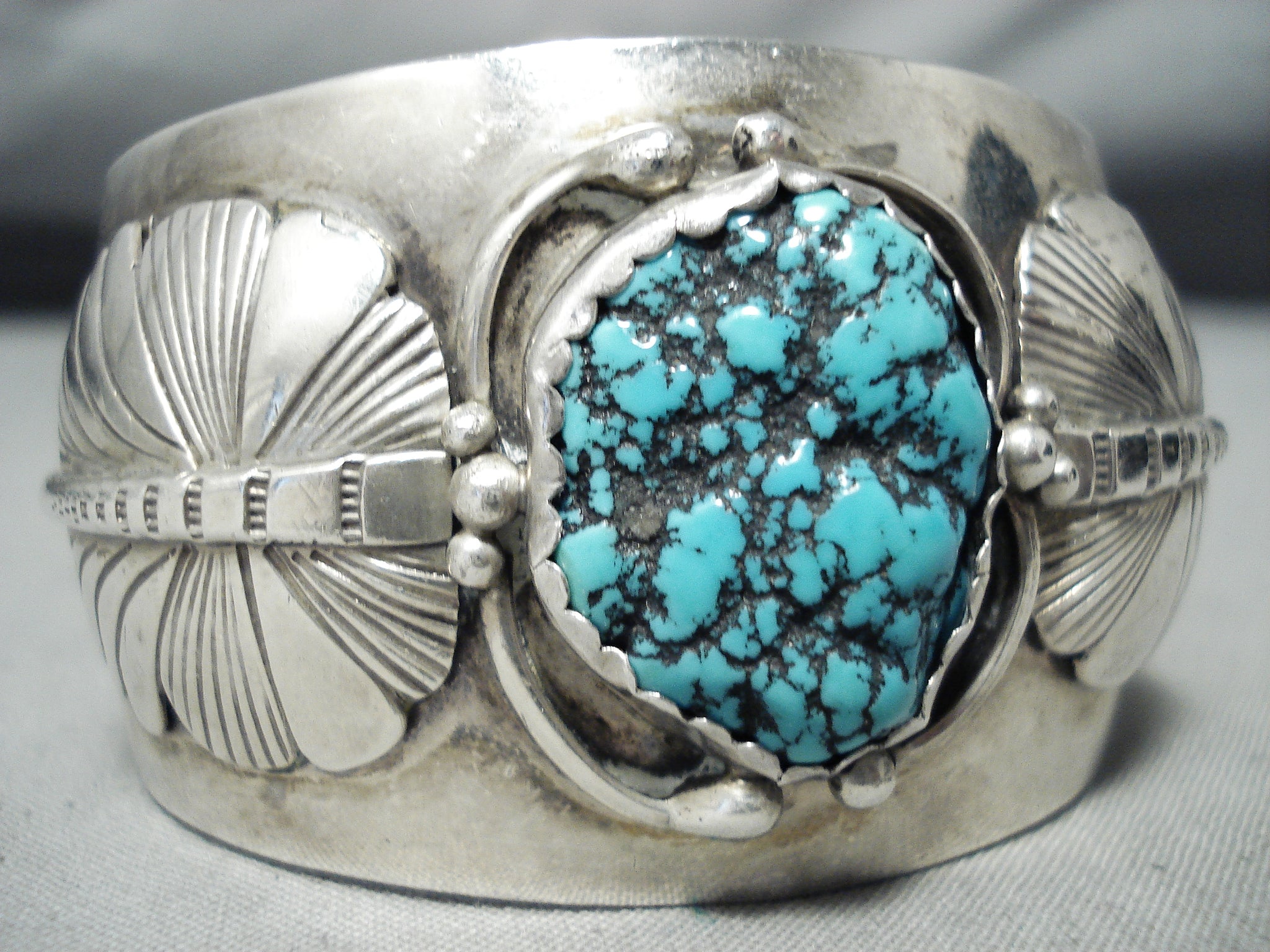 Huge Signed Vintage Native American Navajo Mike Turquoise Sterling Silver Bracelet