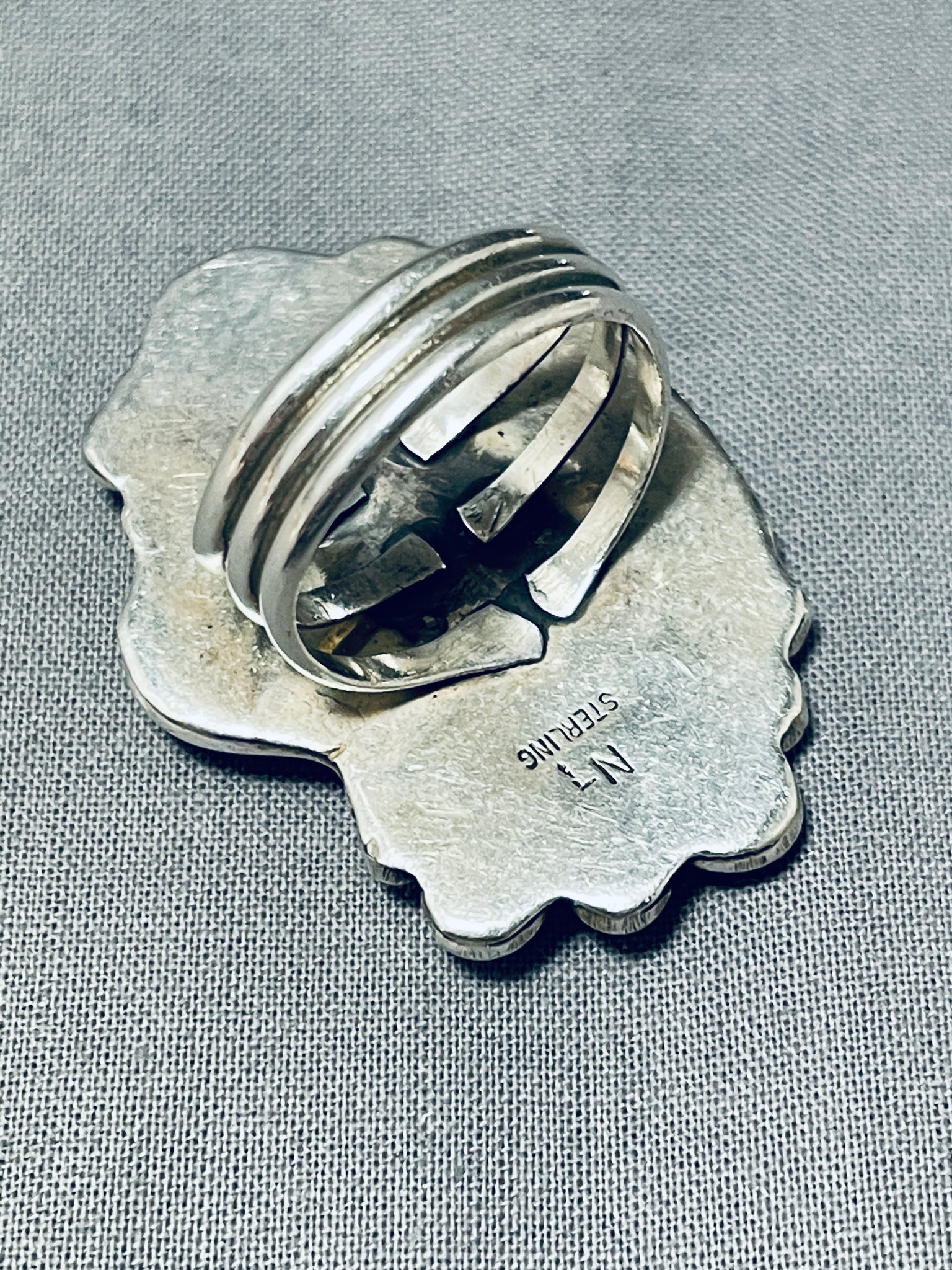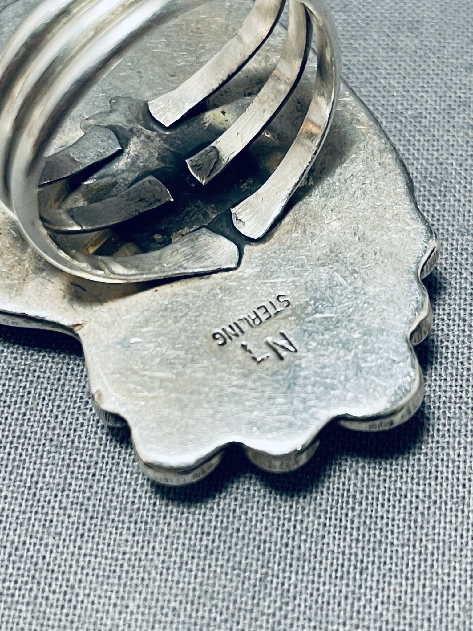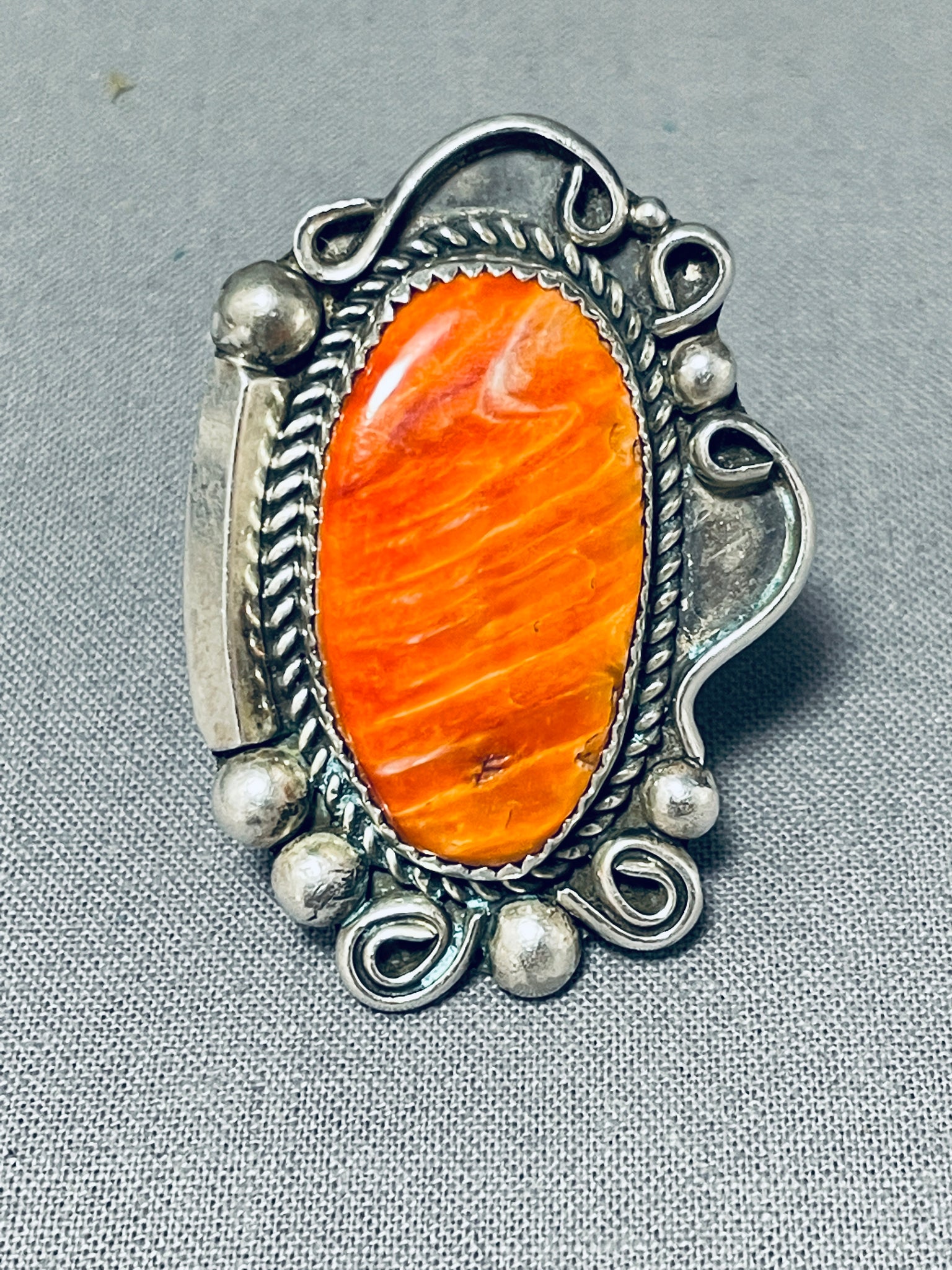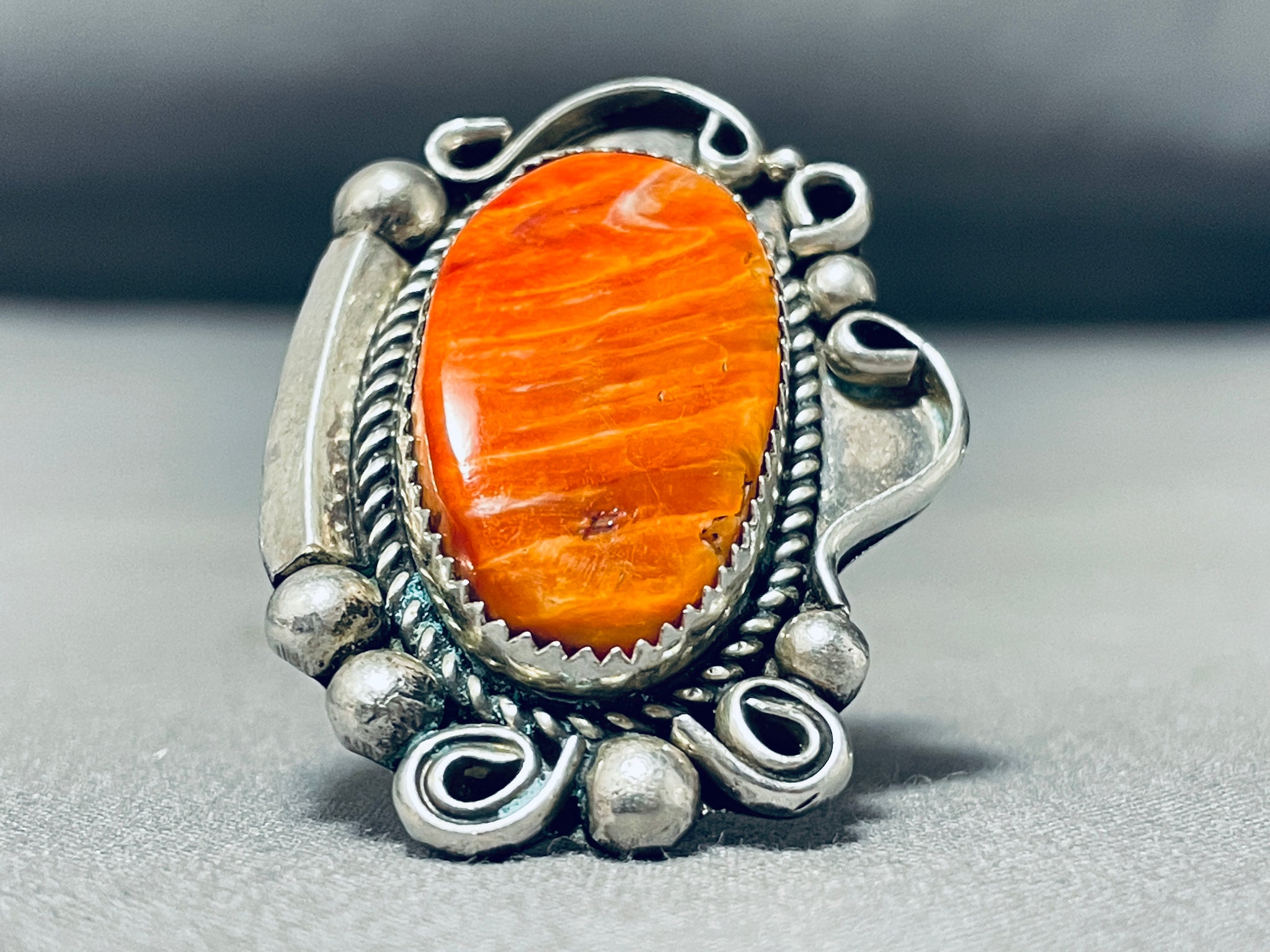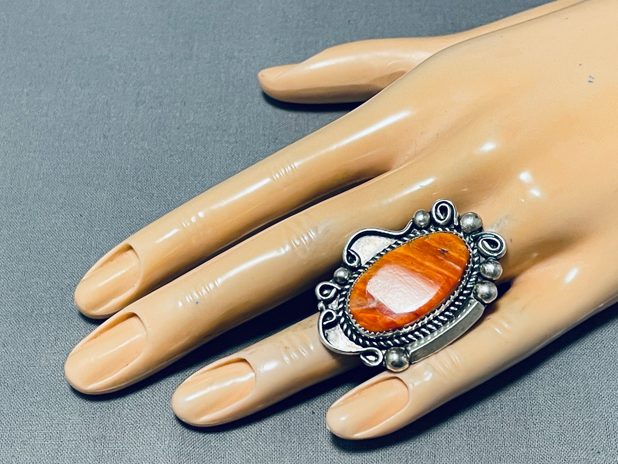 Huge Signed Vintage Native American Navajo Spiny Oster Sterling Silver Ring